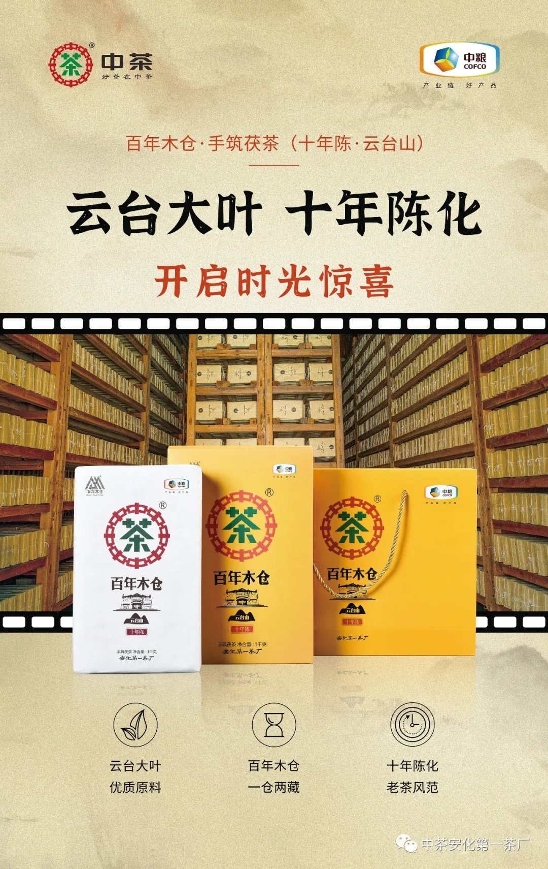 中粮-中茶安化黑茶中茶黑茶百年木仓云台山10年金花茯砖茶限量5000套/原产地直发