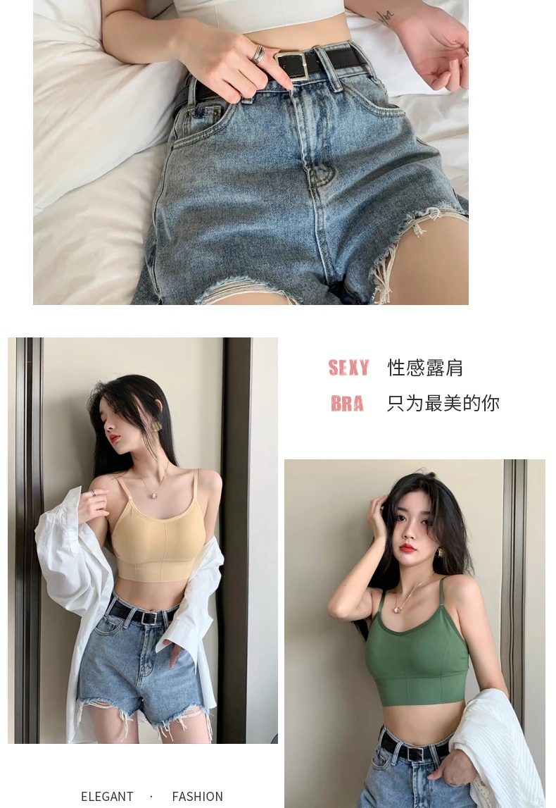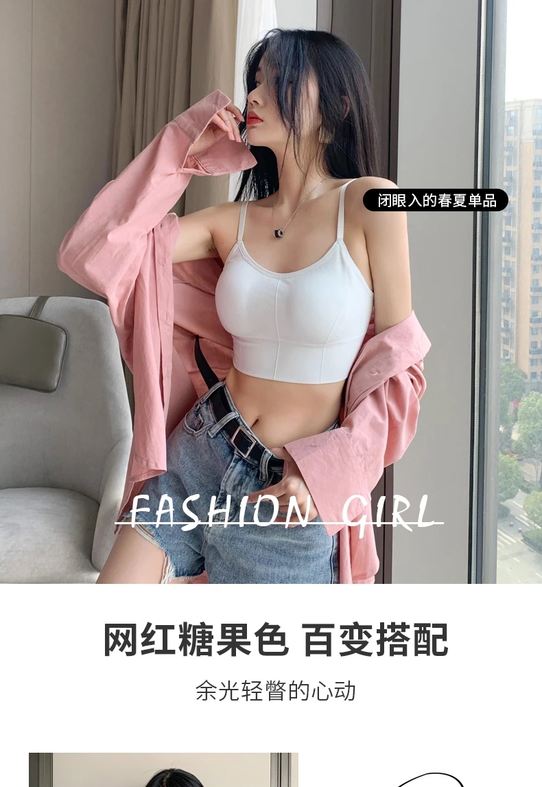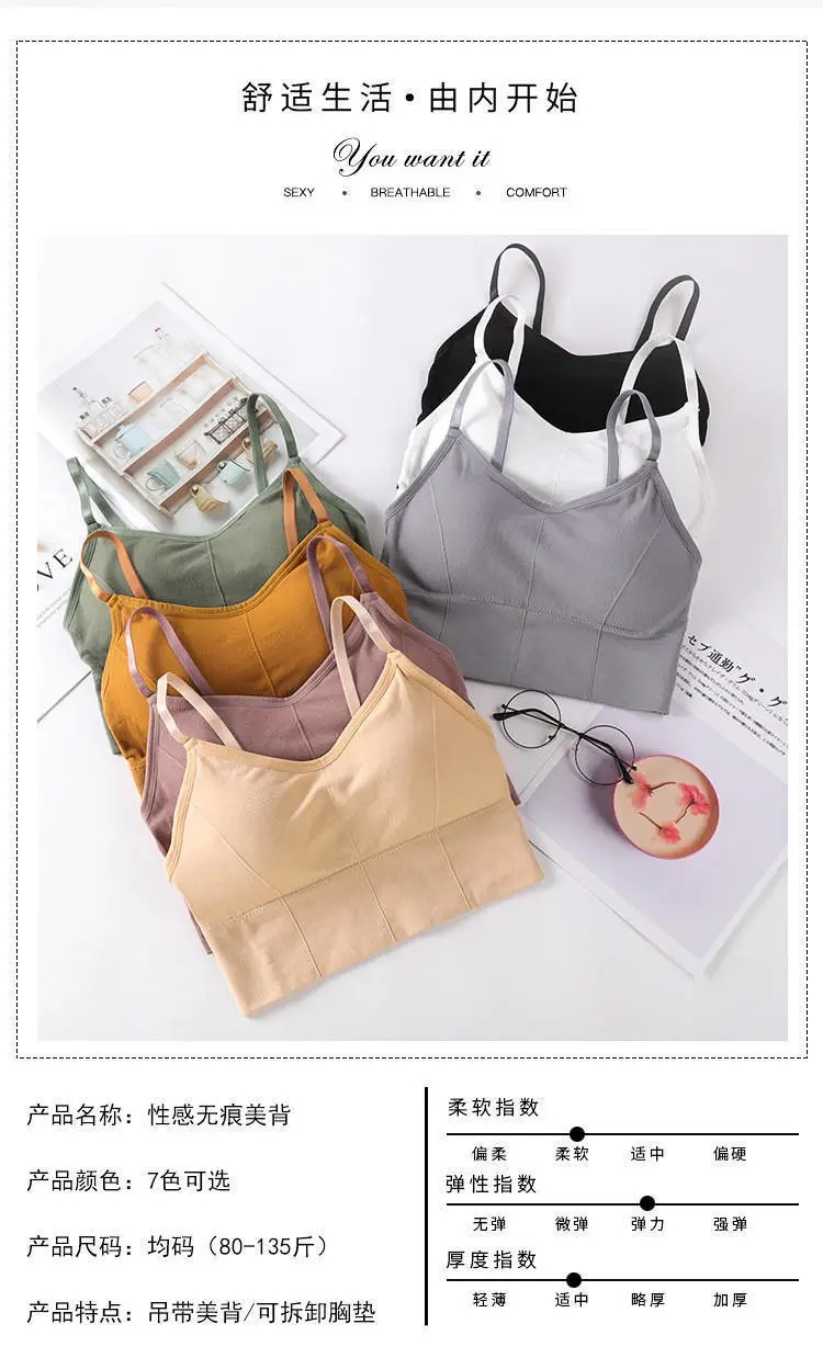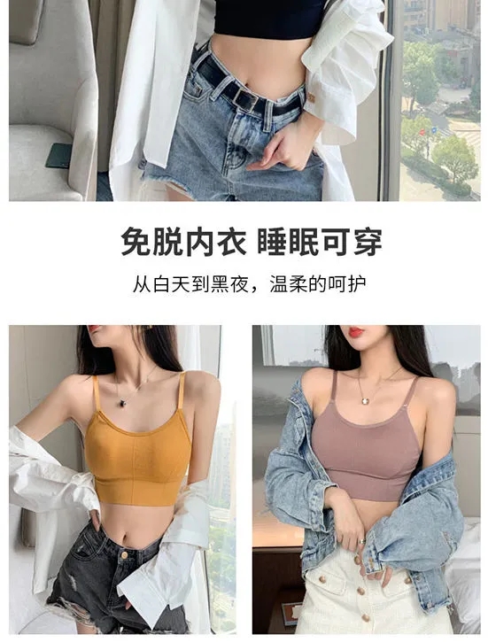 【买一送一】卡卡同款网红美背爆款卡卡无缝罗纹裹胸美背吊带少女内衣抹胸睡眠运动背心