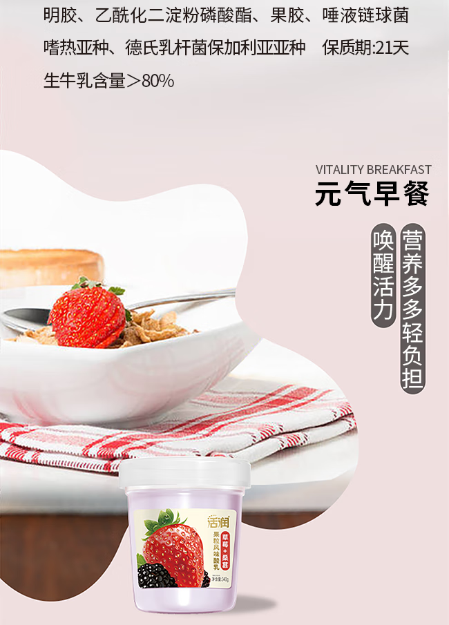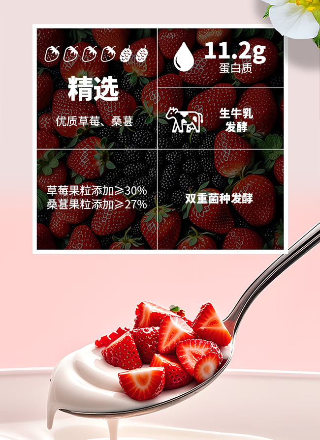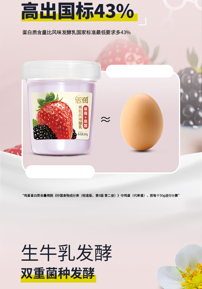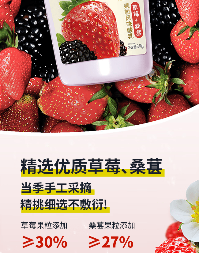 新希望活润草莓+桑葚果粒风味发酵乳340g/杯
