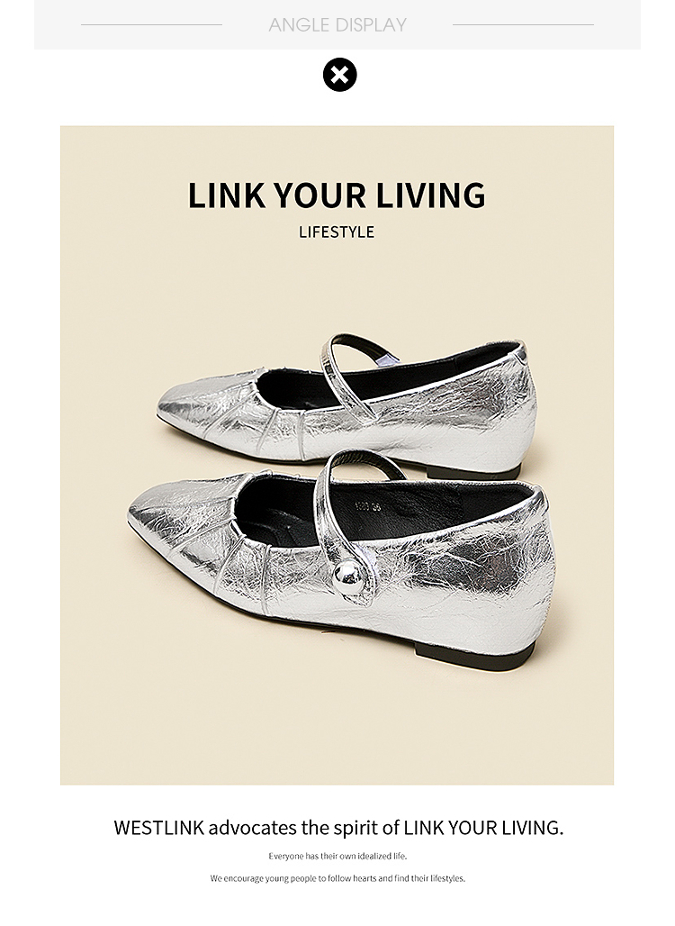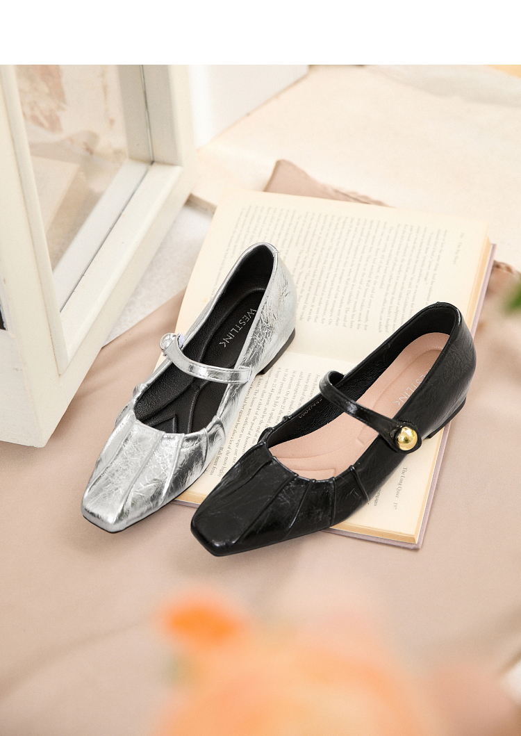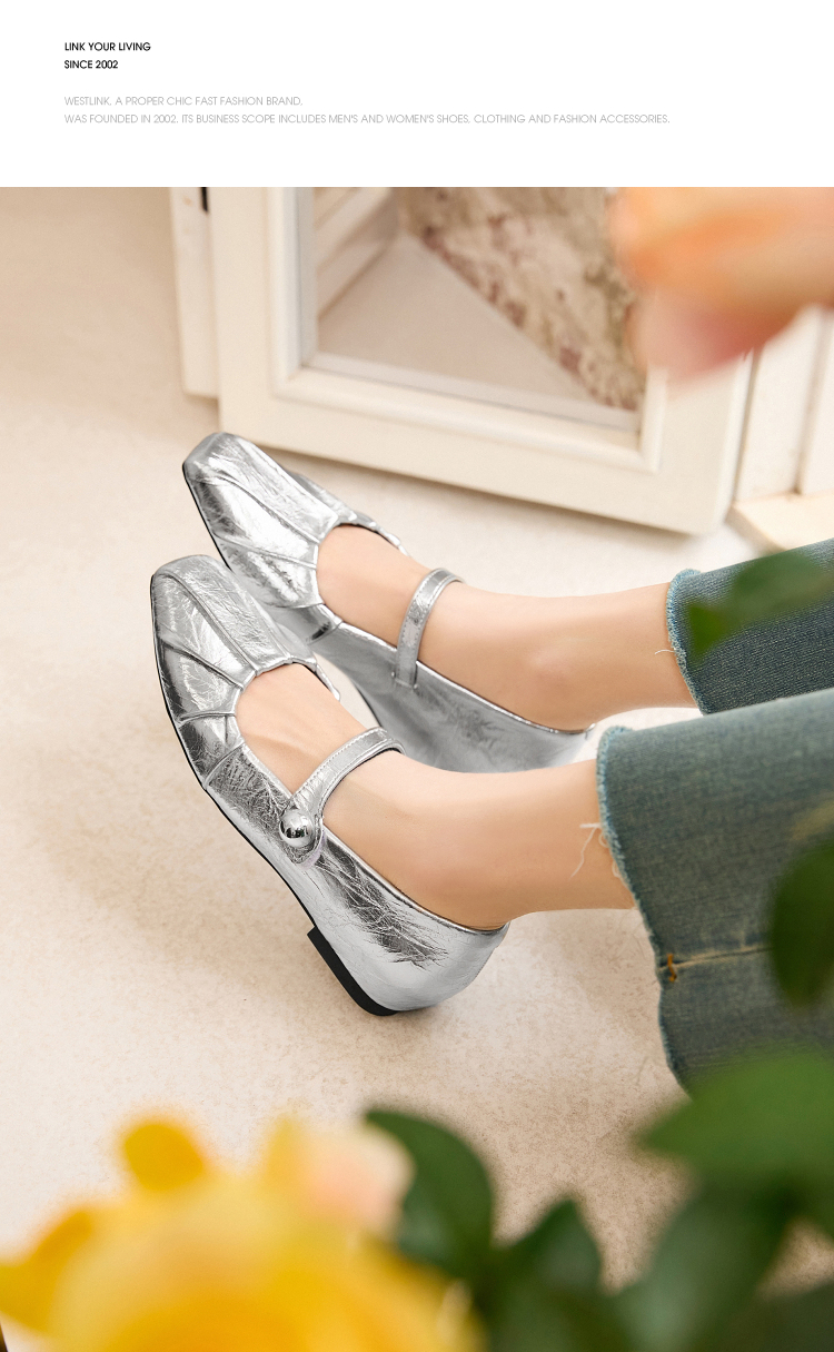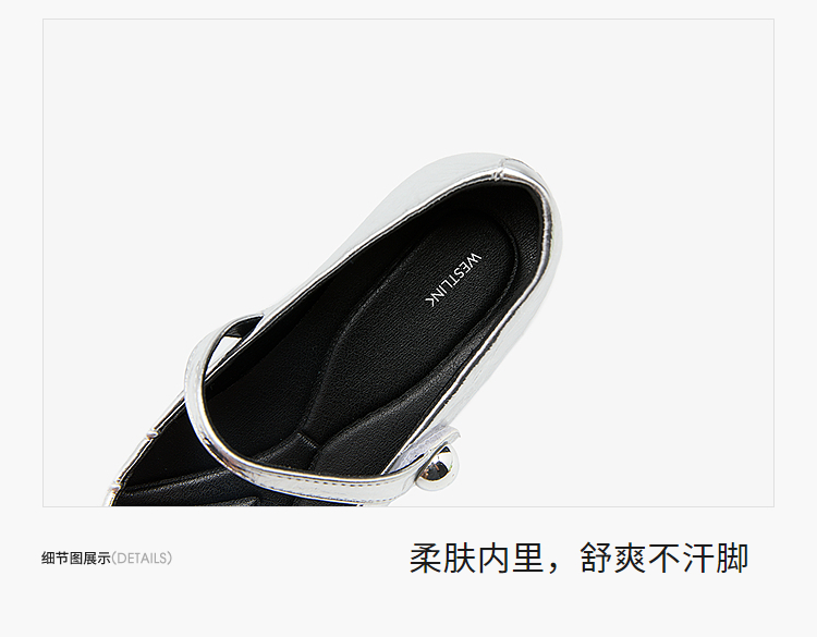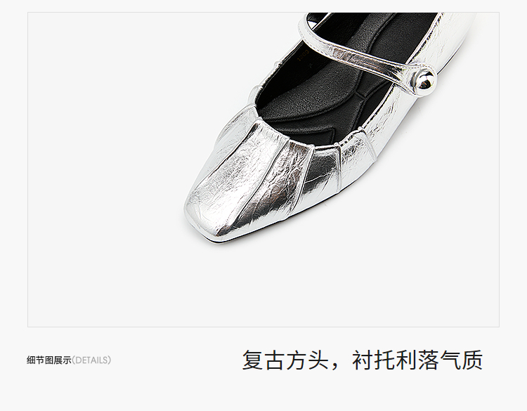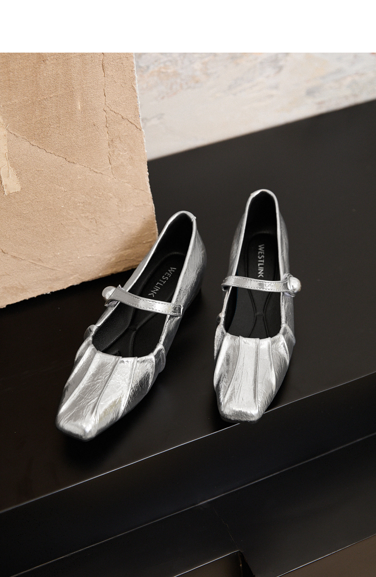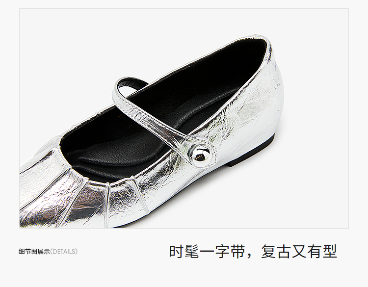 西遇法式绝美单鞋女新款早春内增高褶皱超软配裙银色玛丽珍鞋V0047443