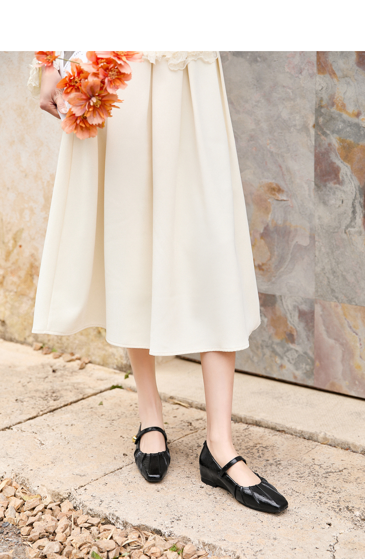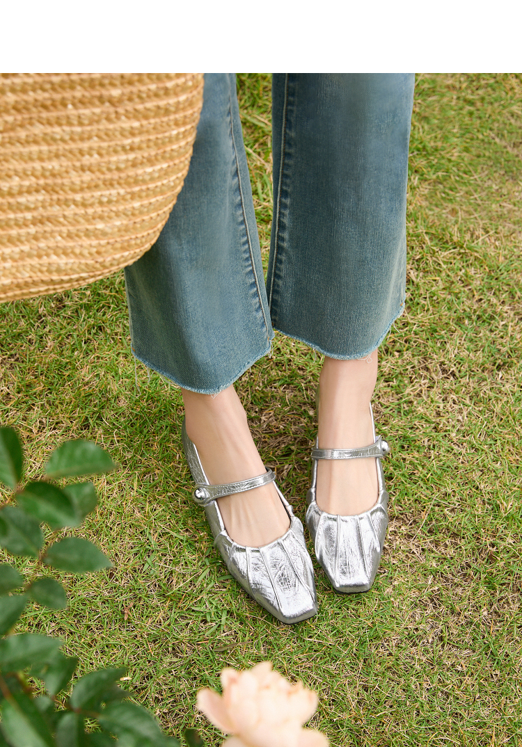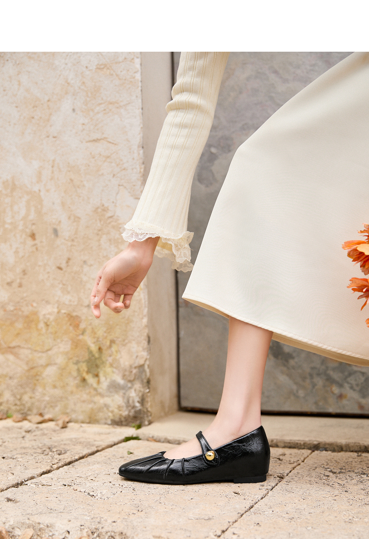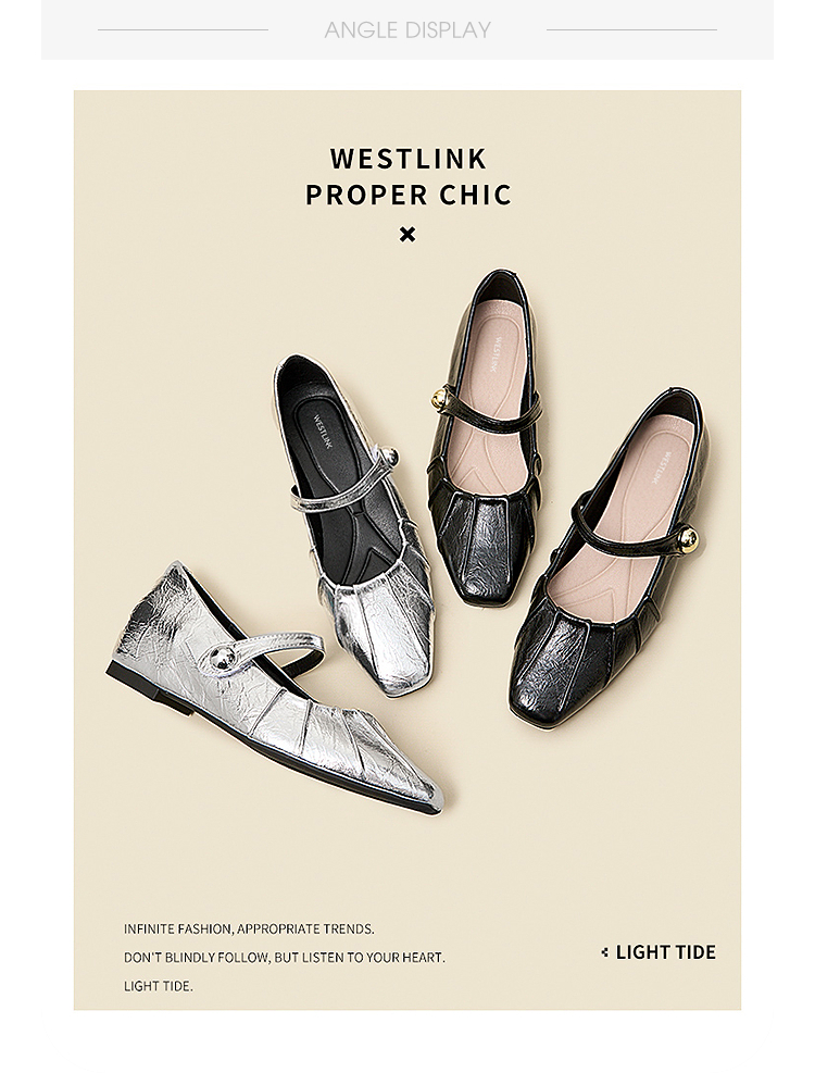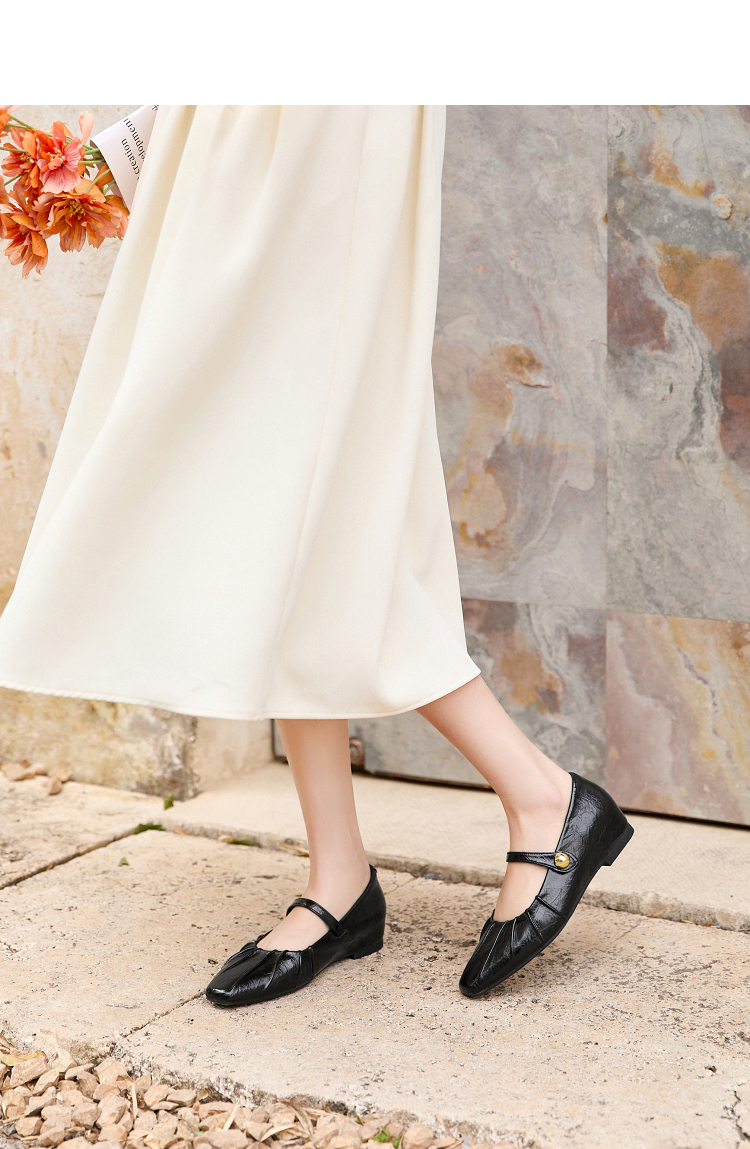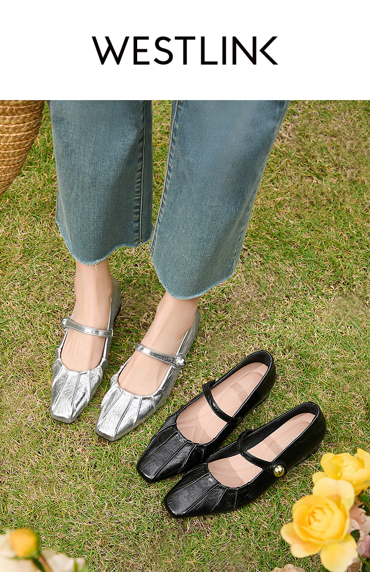 西遇法式绝美单鞋女新款早春内增高褶皱超软配裙银色玛丽珍鞋V0047443