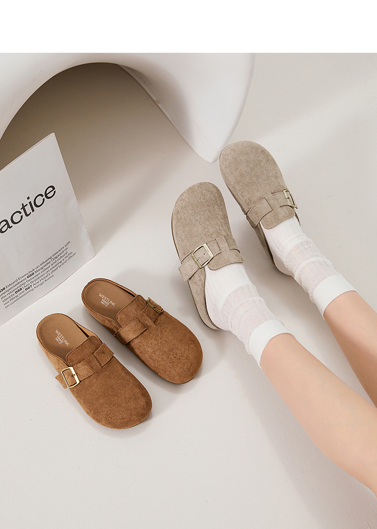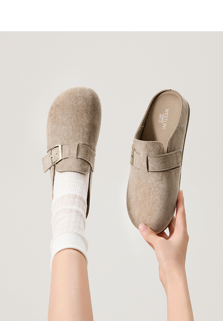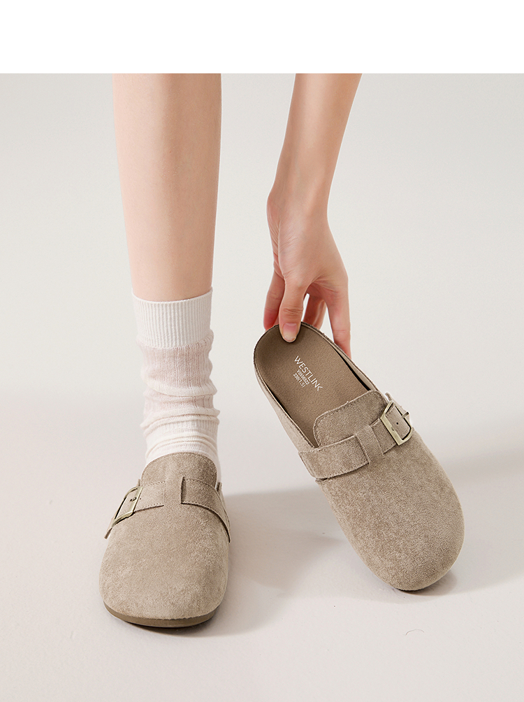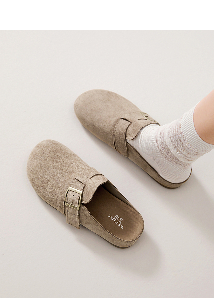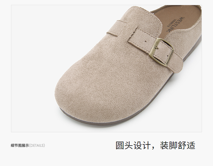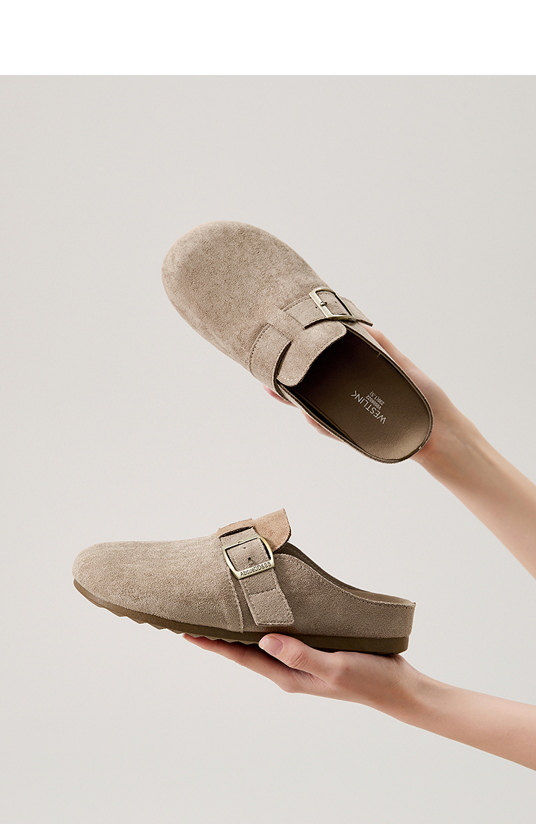 西遇勃肯鞋半拖女2026新款春夏休闲舒适一脚蹬懒人鞋平底包头拖鞋V0066379/V0556522