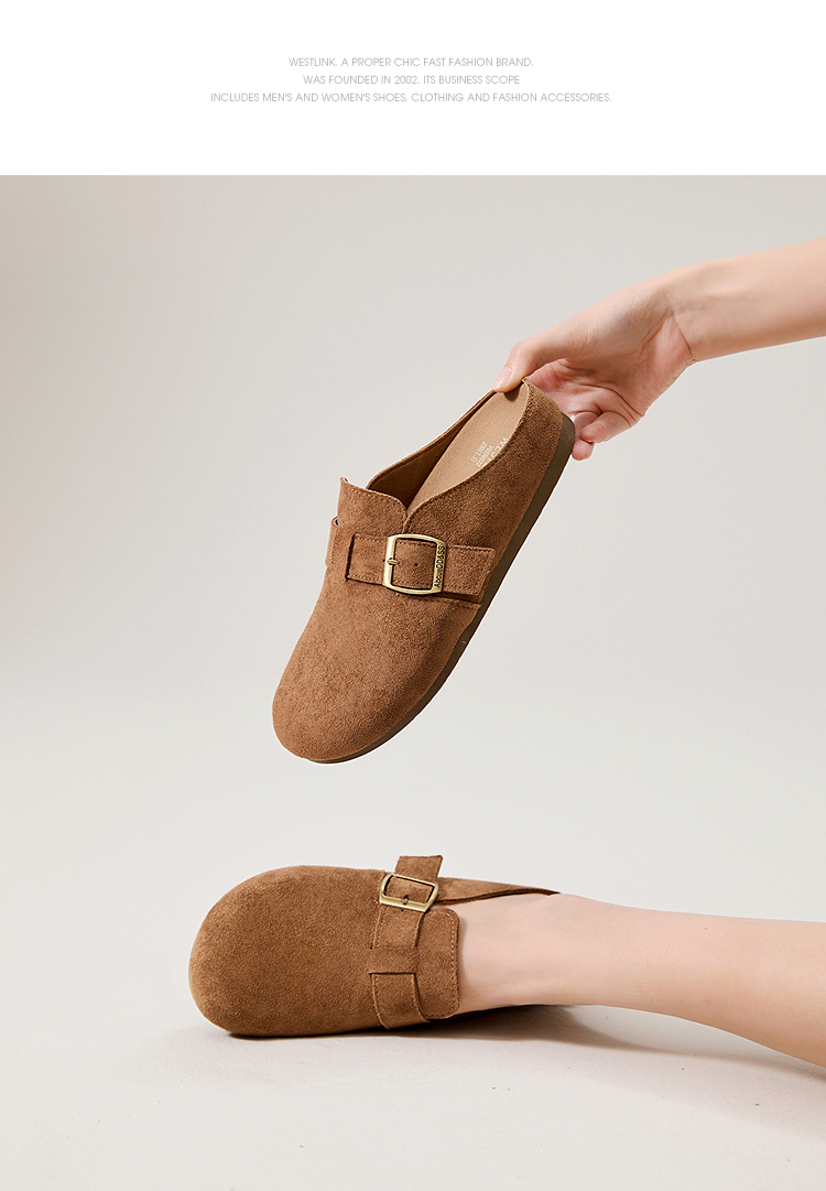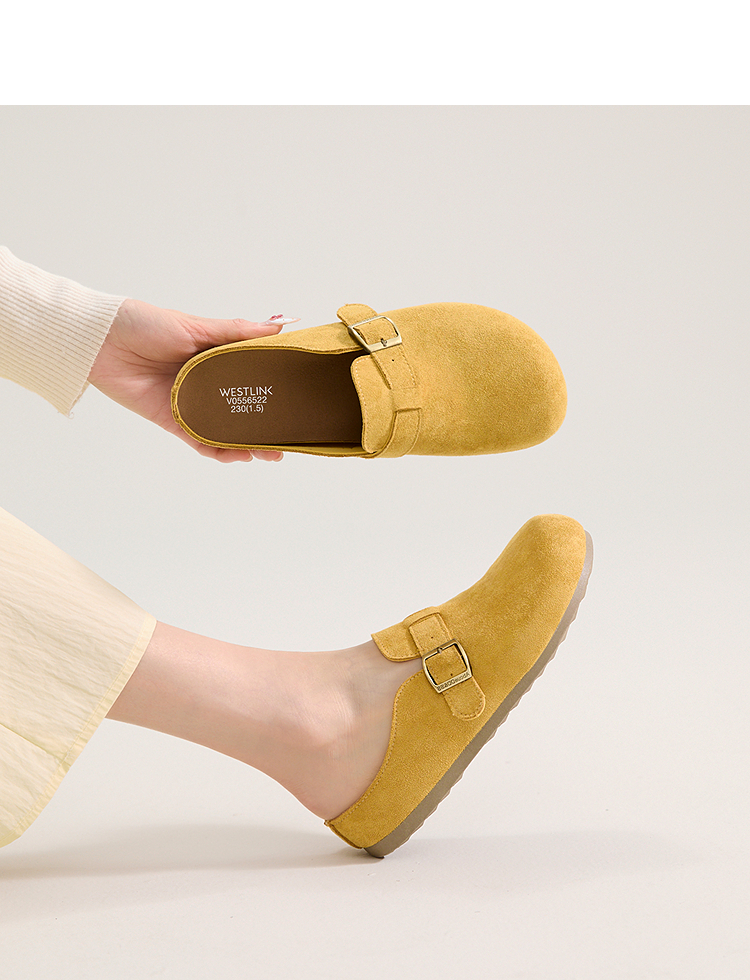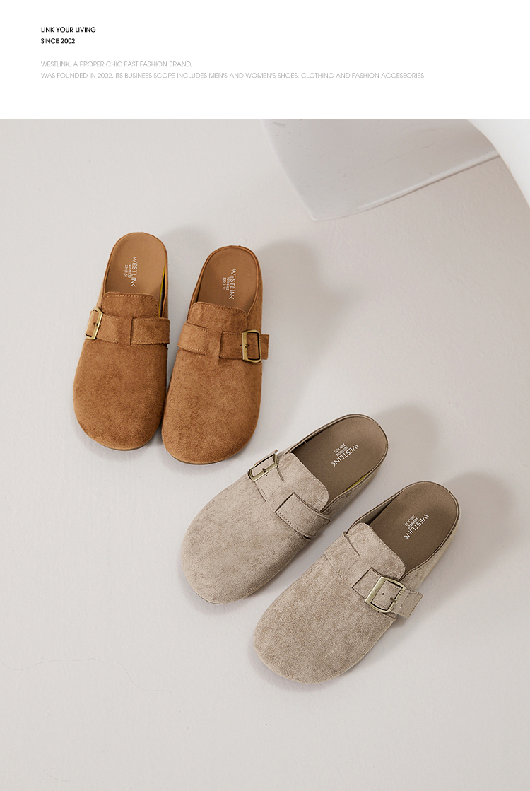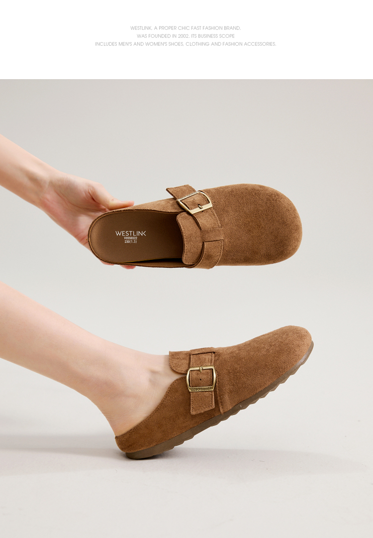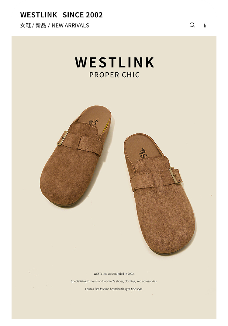 西遇勃肯鞋半拖女2026新款春夏休闲舒适一脚蹬懒人鞋平底包头拖鞋V0066379/V0556522