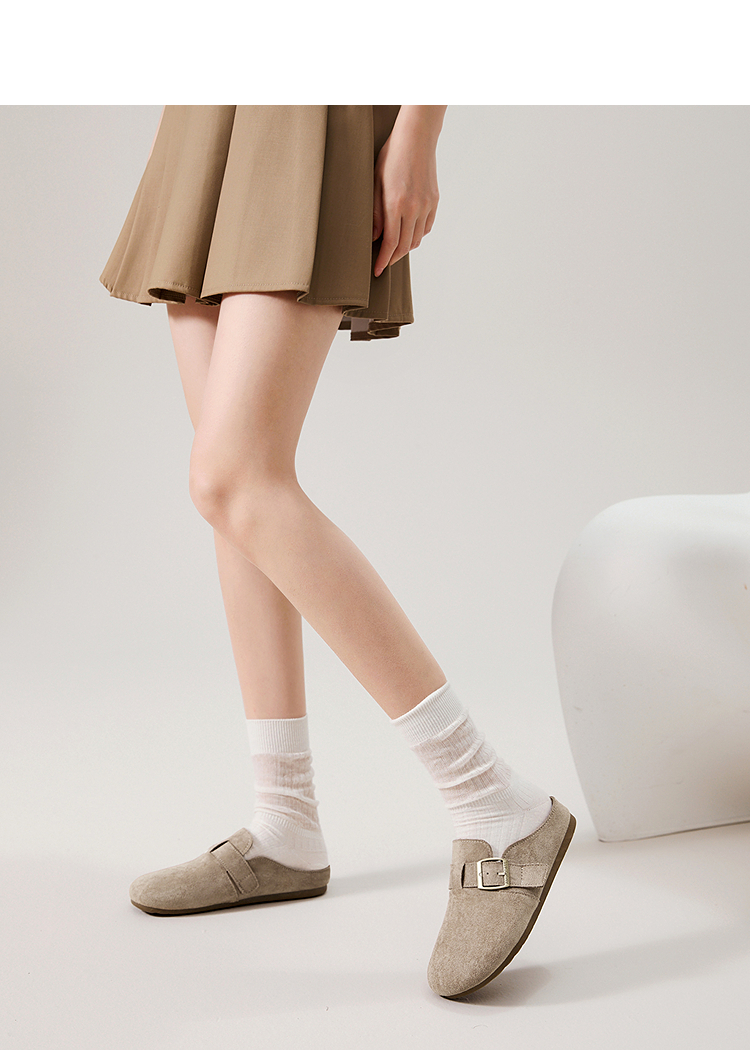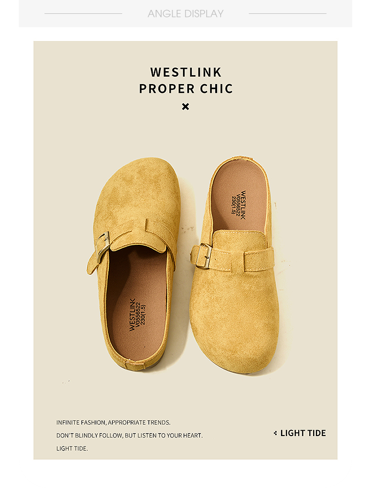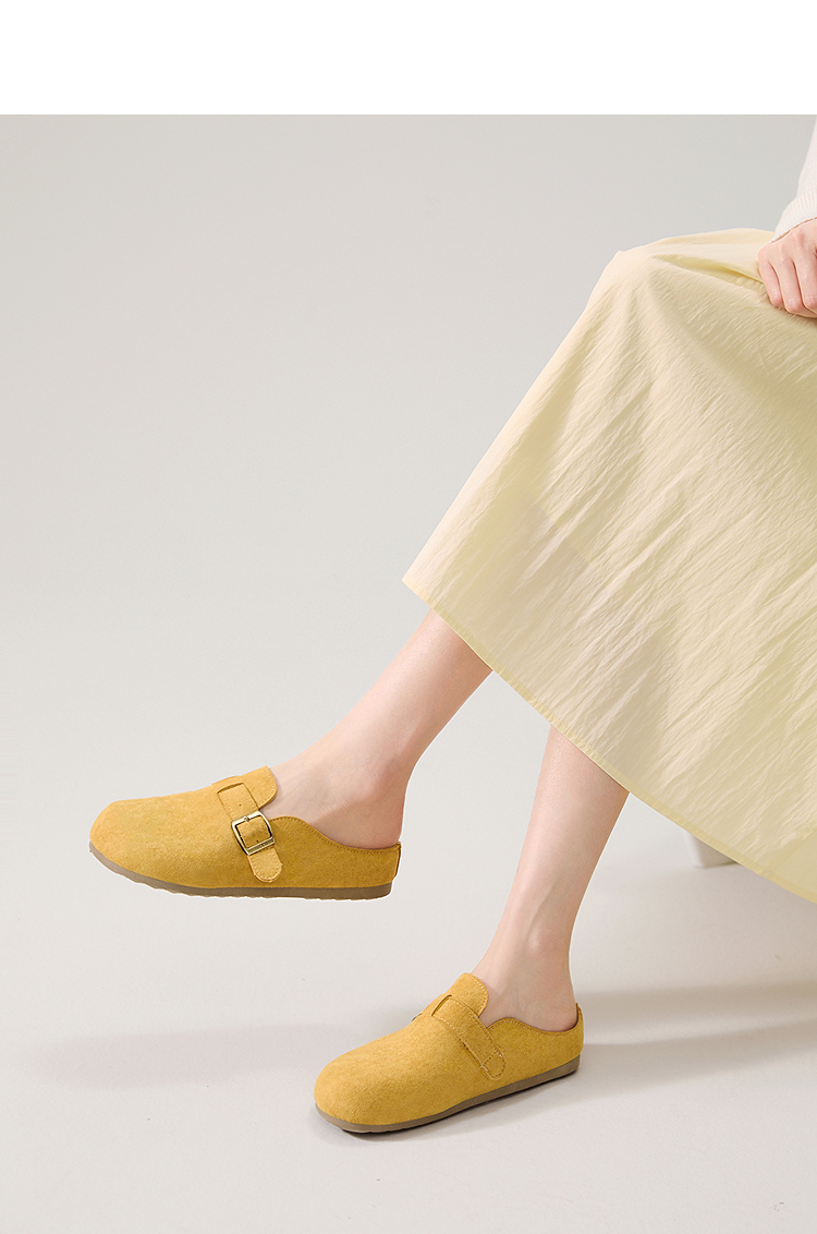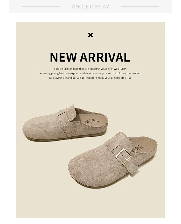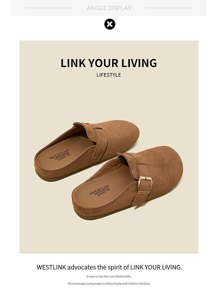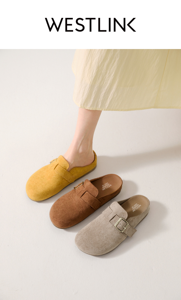 西遇勃肯鞋半拖女2026新款春夏休闲舒适一脚蹬懒人鞋平底包头拖鞋V0066379/V0556522