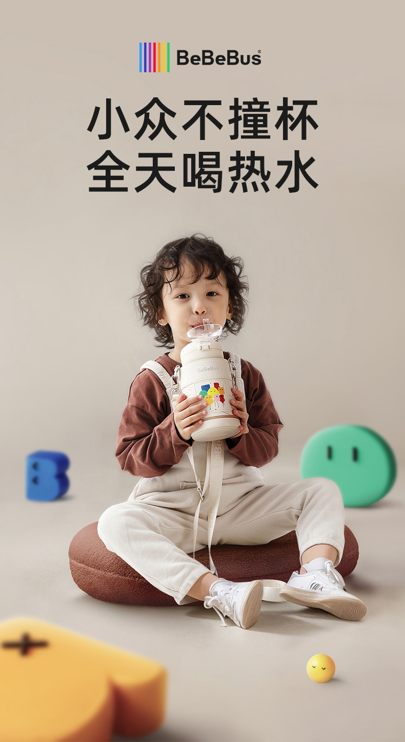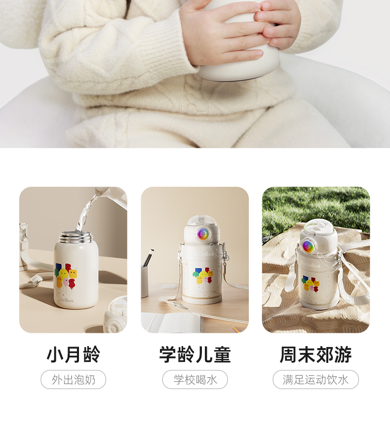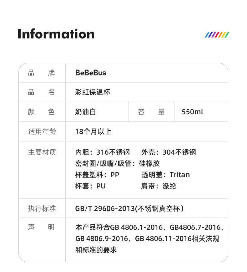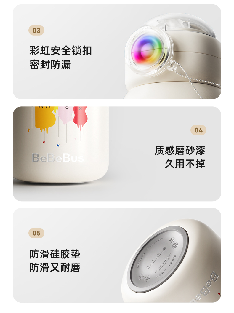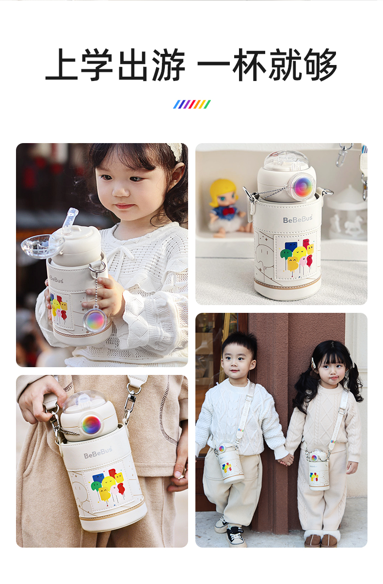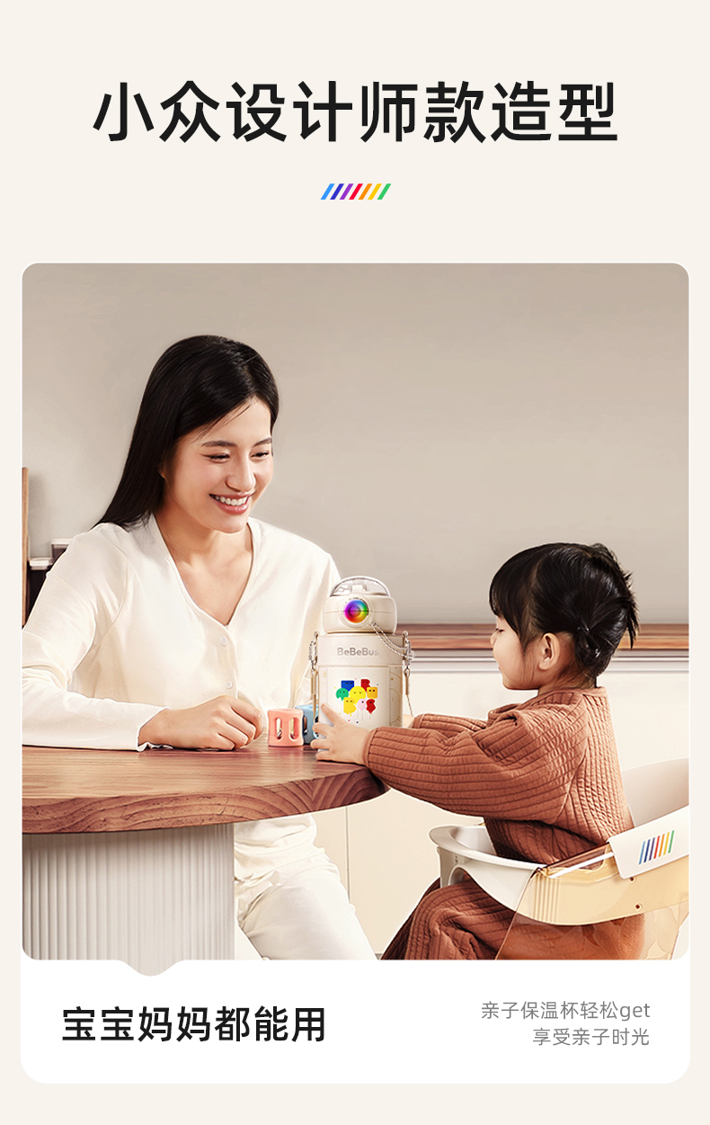 BeBeBus彩虹保温杯 儿童水杯1-3岁以上宝宝吸管直饮杯