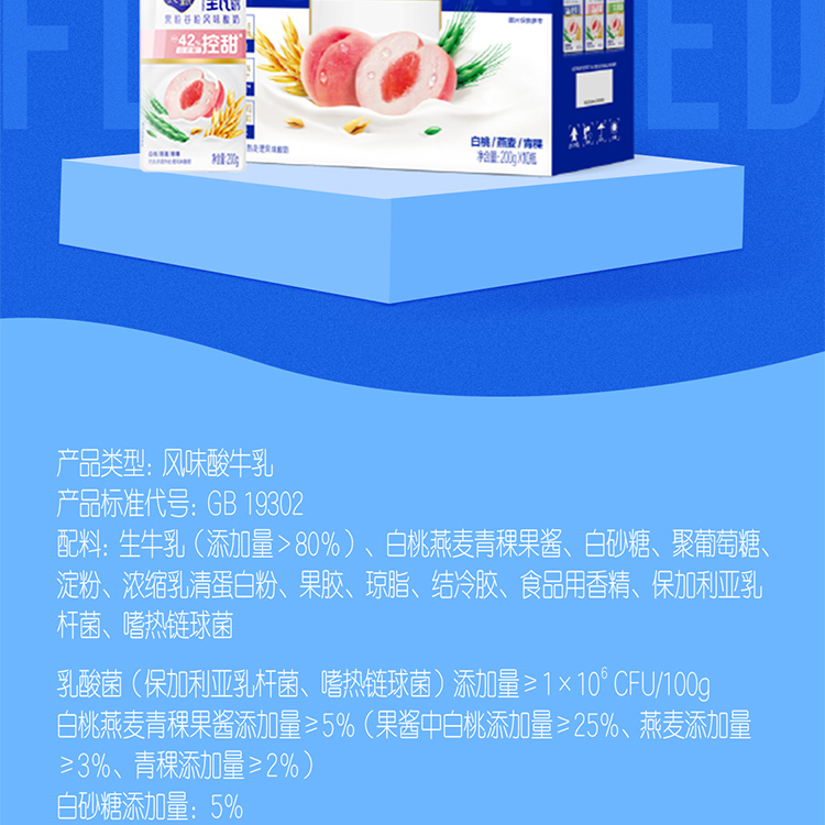 【自营】蒙牛 纯甄 酸奶白桃燕麦青稞口味 200g×10瓶