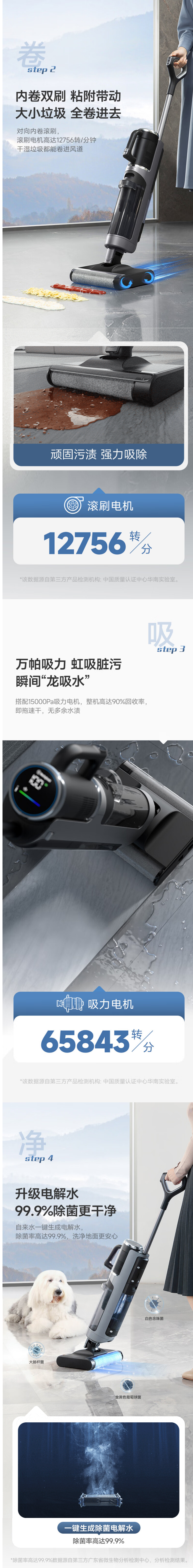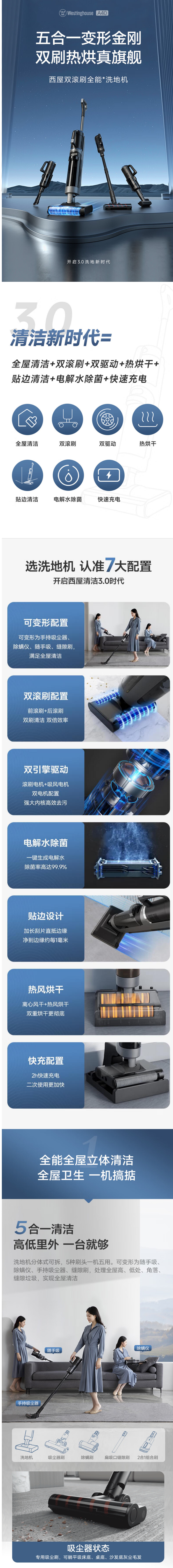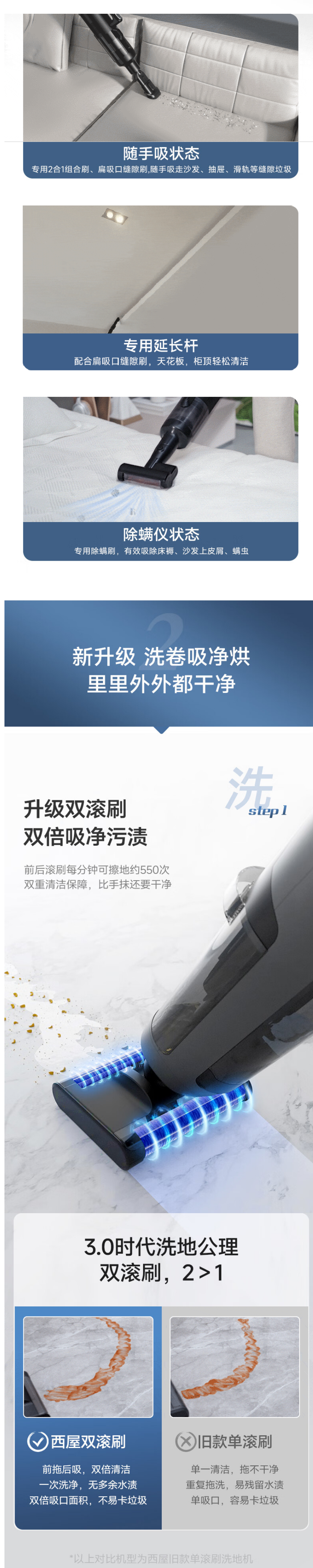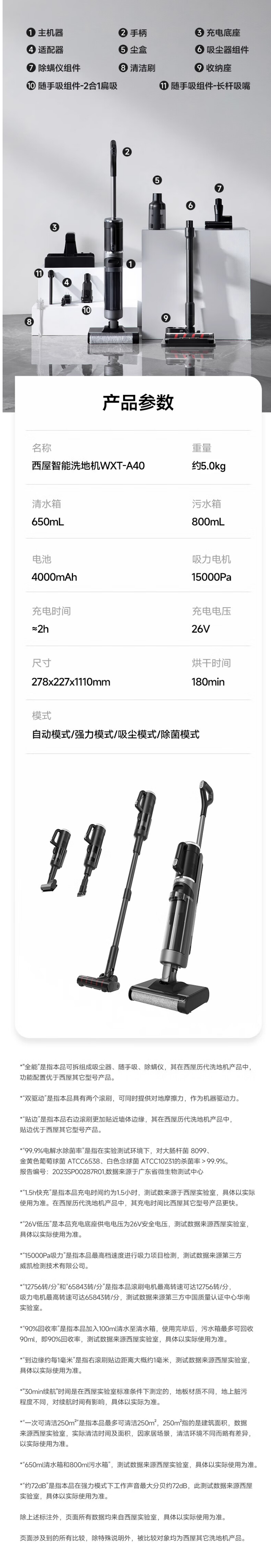 西屋(Westinghouse)洗地机3.0吸拖一体全自动拖地机家用双滚刷电解水热烘干吸尘器 WXT-A40(组合版)