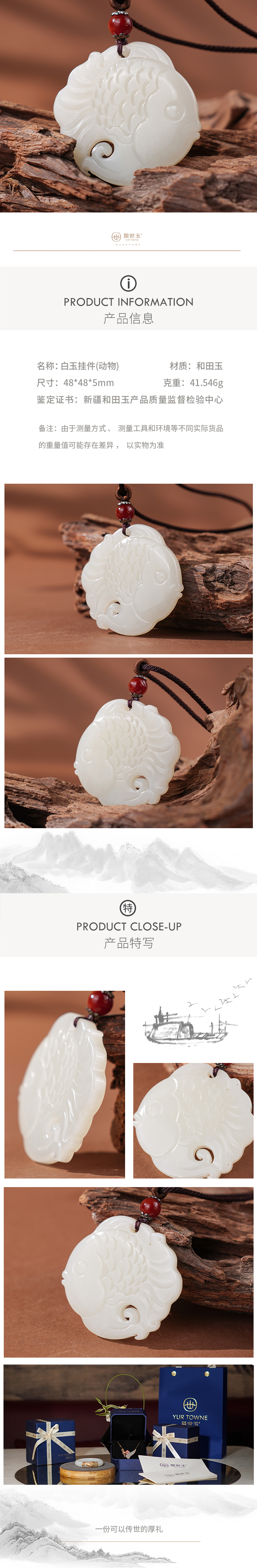 「年礼优选」【鲤跃福来】羊脂白玉吉祥挂
