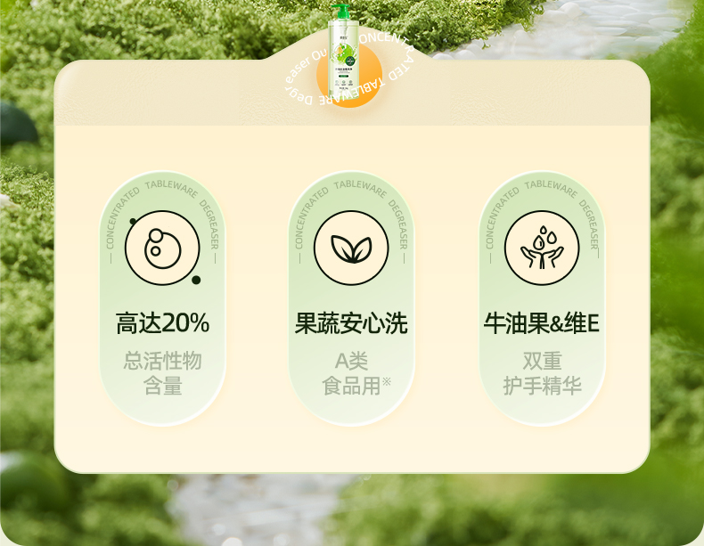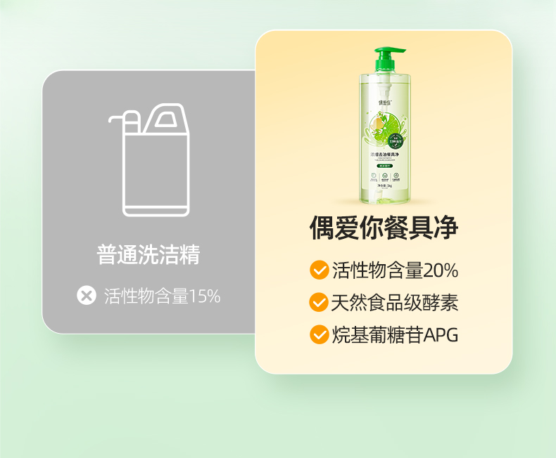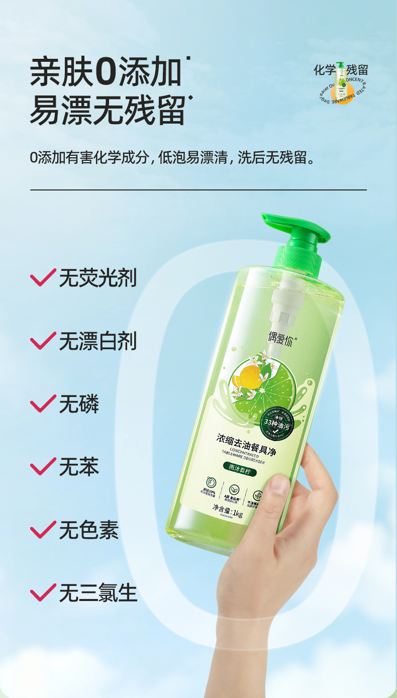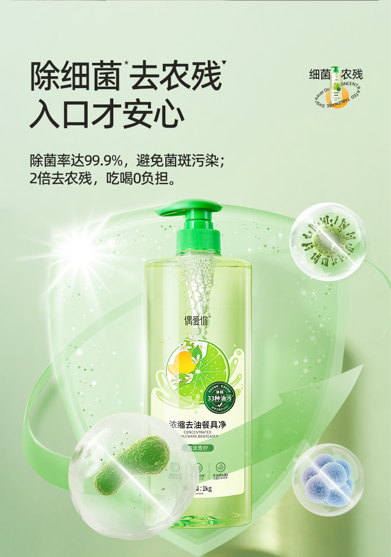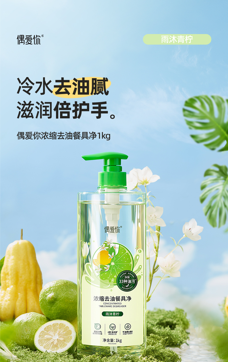 【新品】偶爱你浓缩去油餐具净(雨沐青柠)1kg*2瓶装