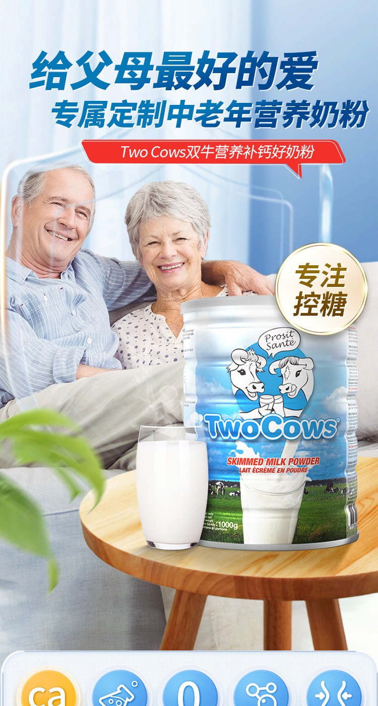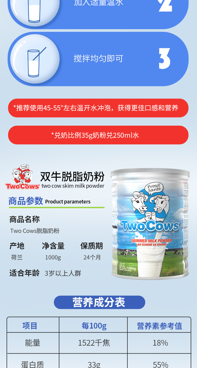 【保税直发】荷兰TwoCows双牛脱脂奶粉1000g 27年3月 包邮包税