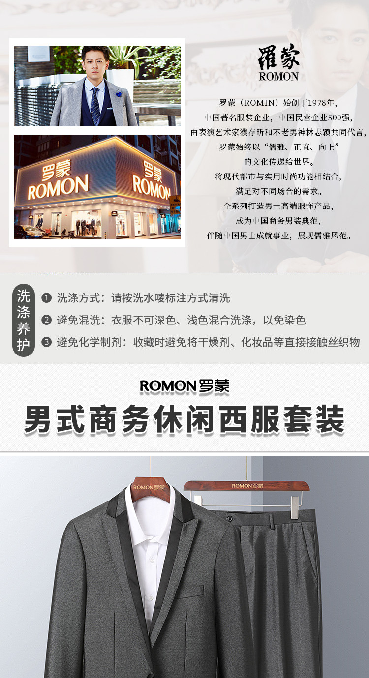 【断码清仓】罗蒙男士西服套装商务通勤新郎结婚礼服套装两件套
