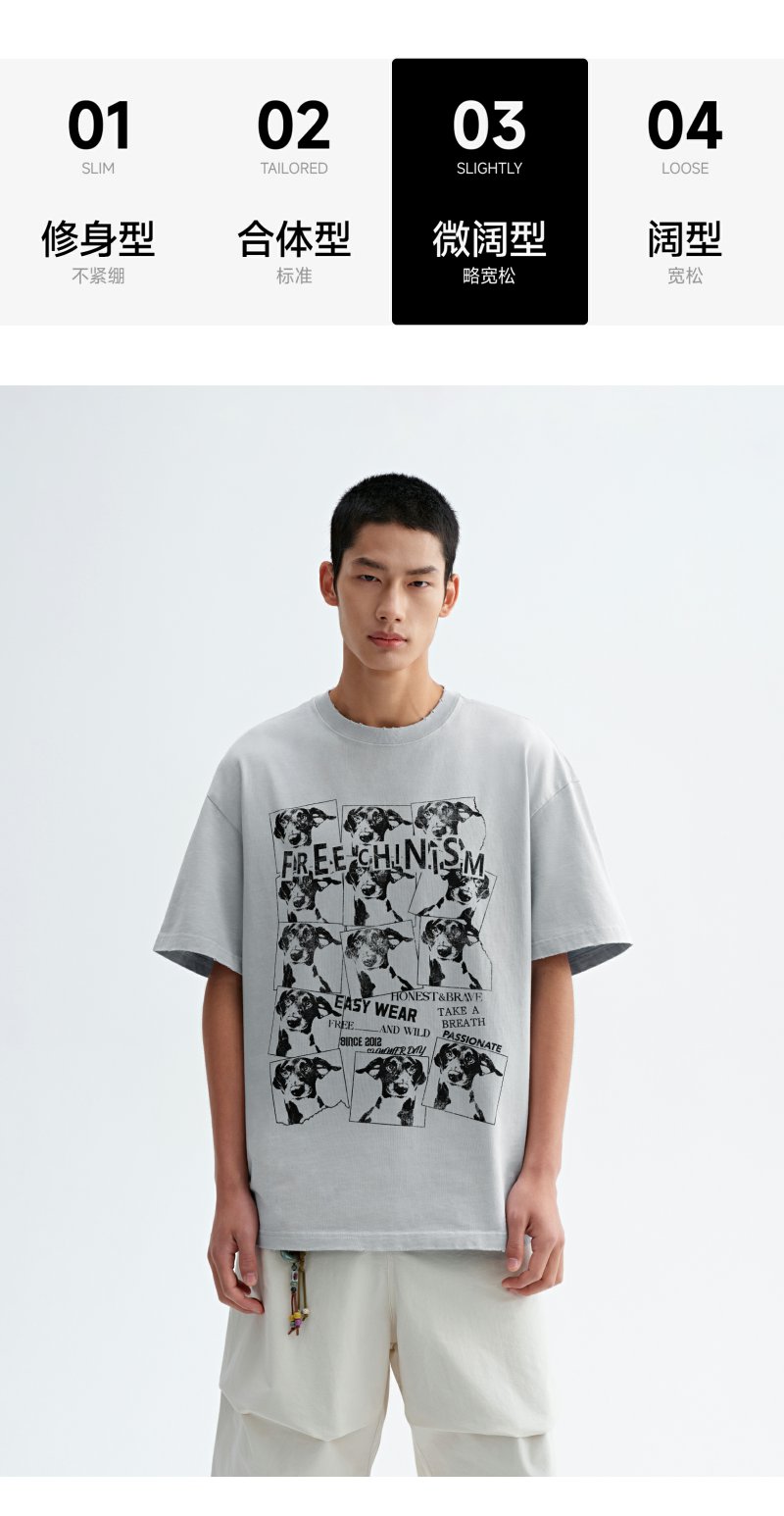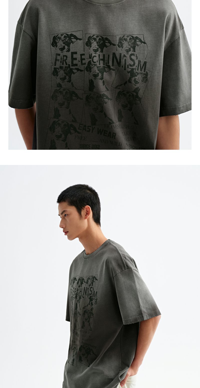 【商场同款】CHINISM赤尘 犬系水浆印花水洗短袖T恤男2025夏季