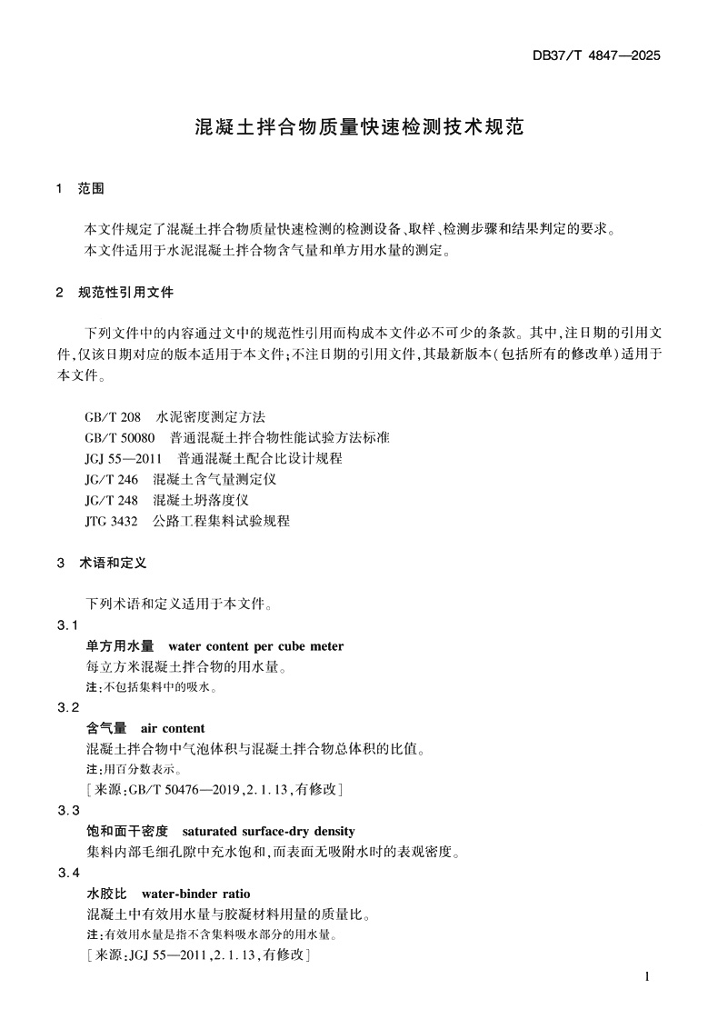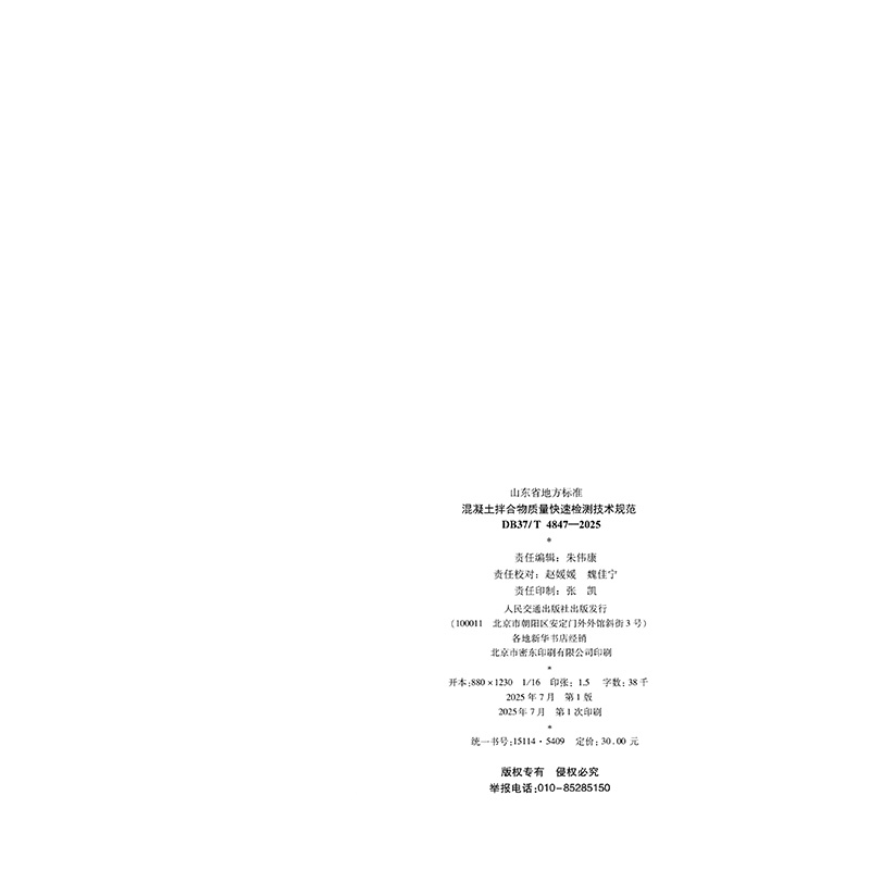 书名:混凝土拌合物质量快速检测技术规范(DB37/T 4847—2025)