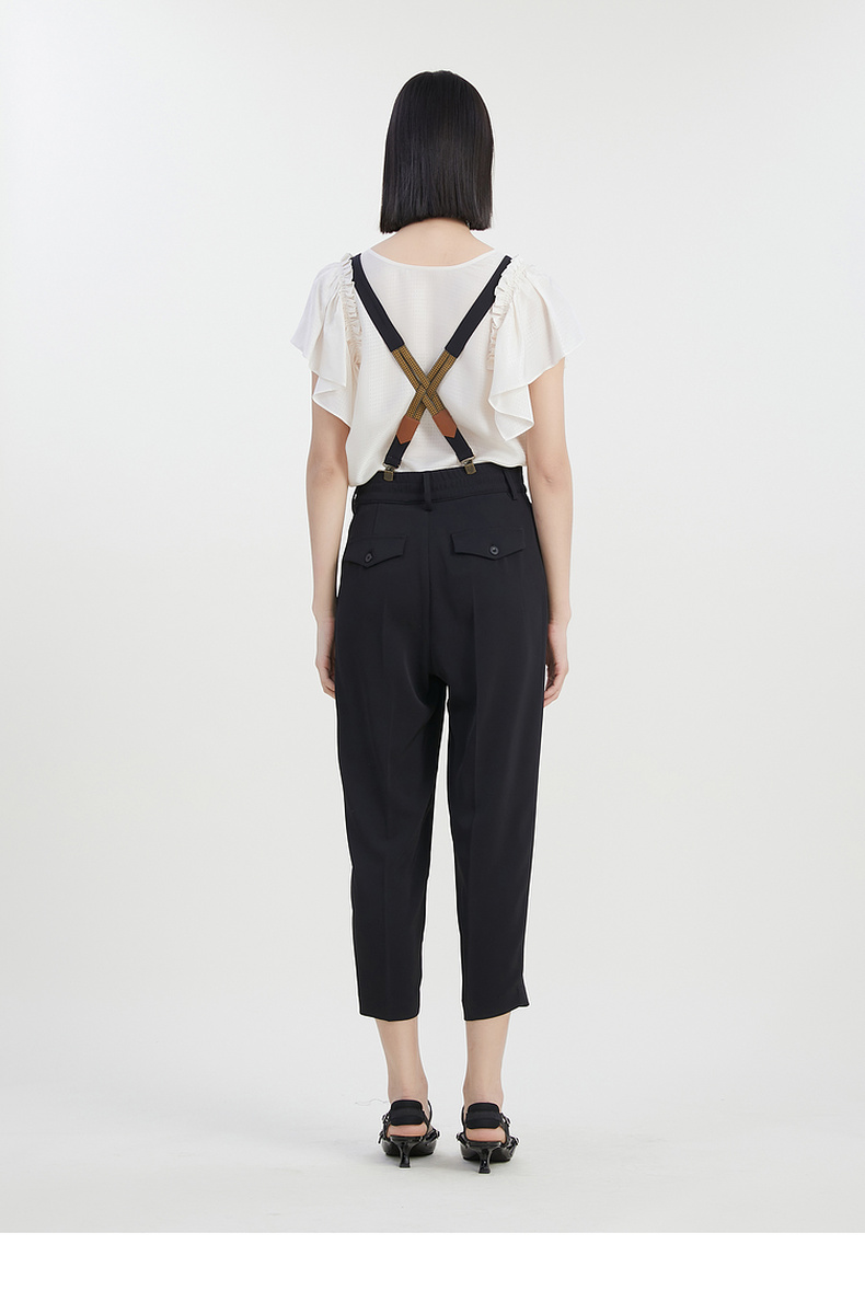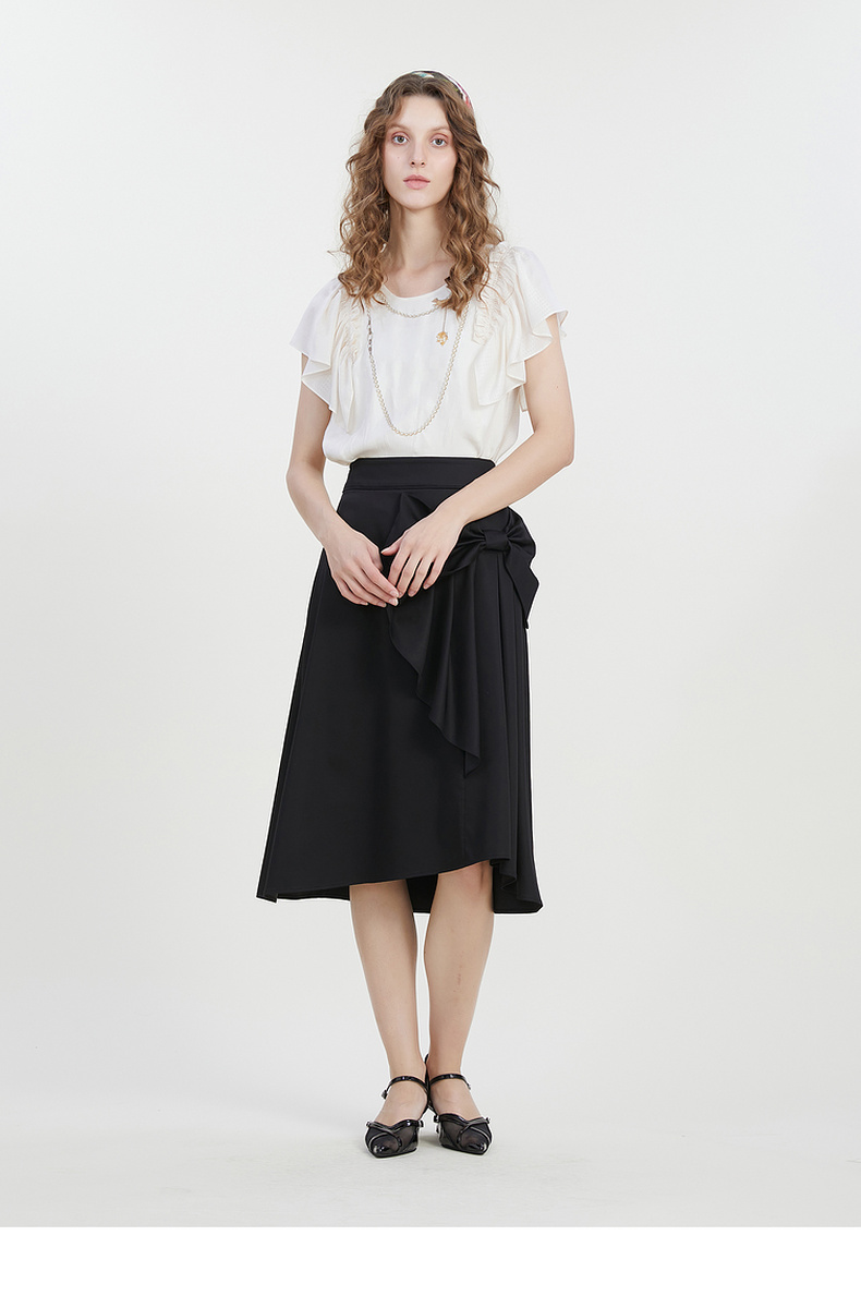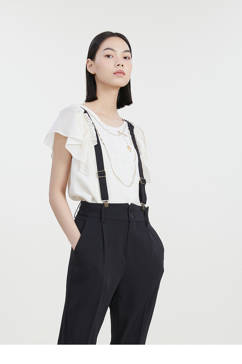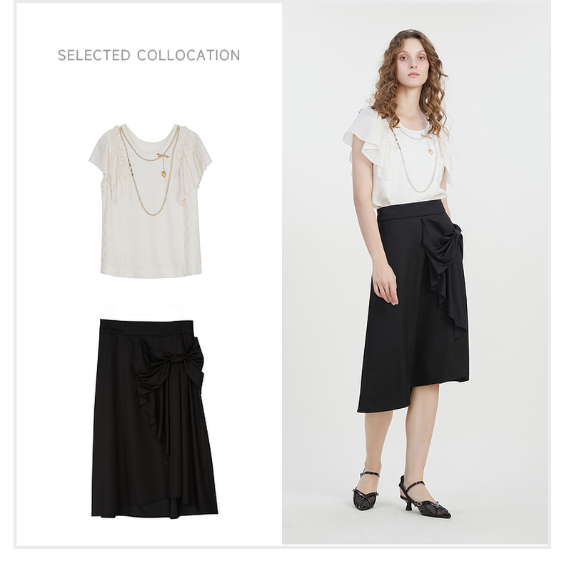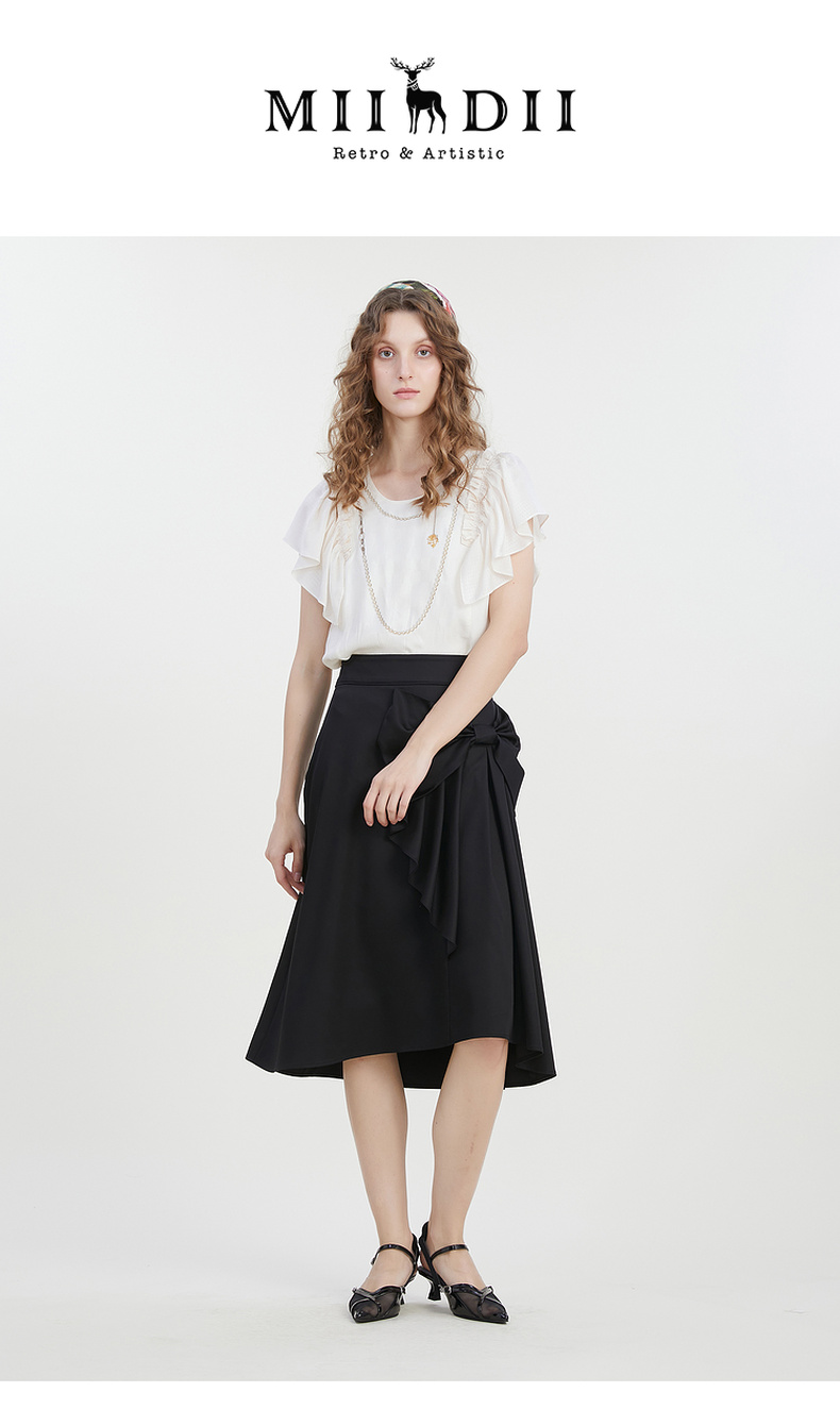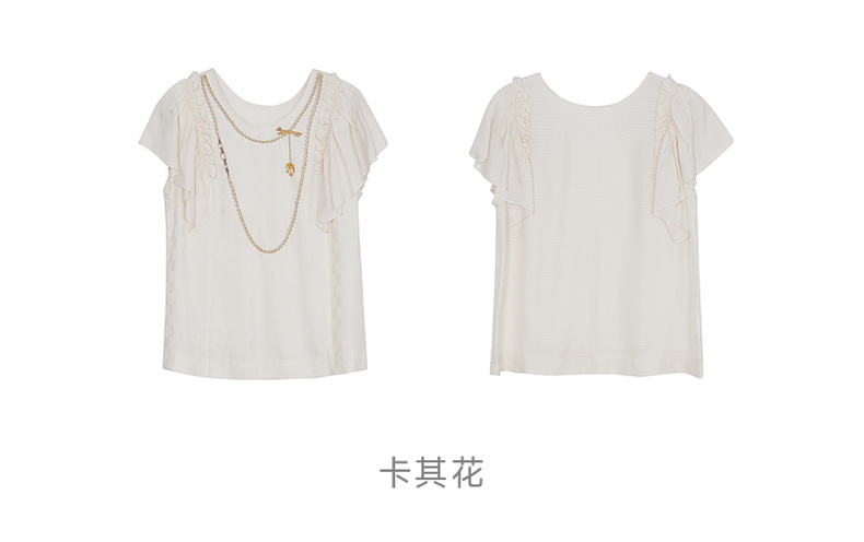 谜底飞飞袖短袖上衣女2023夏季新款复古印花圆领木耳边232MS0700