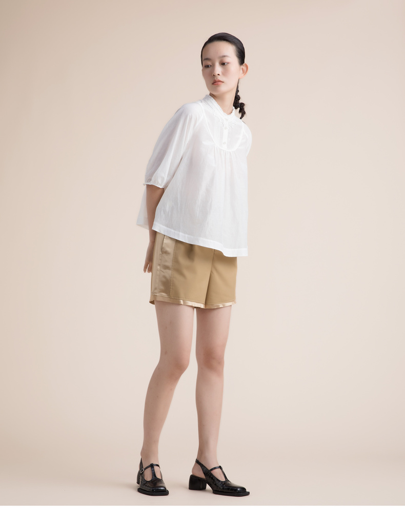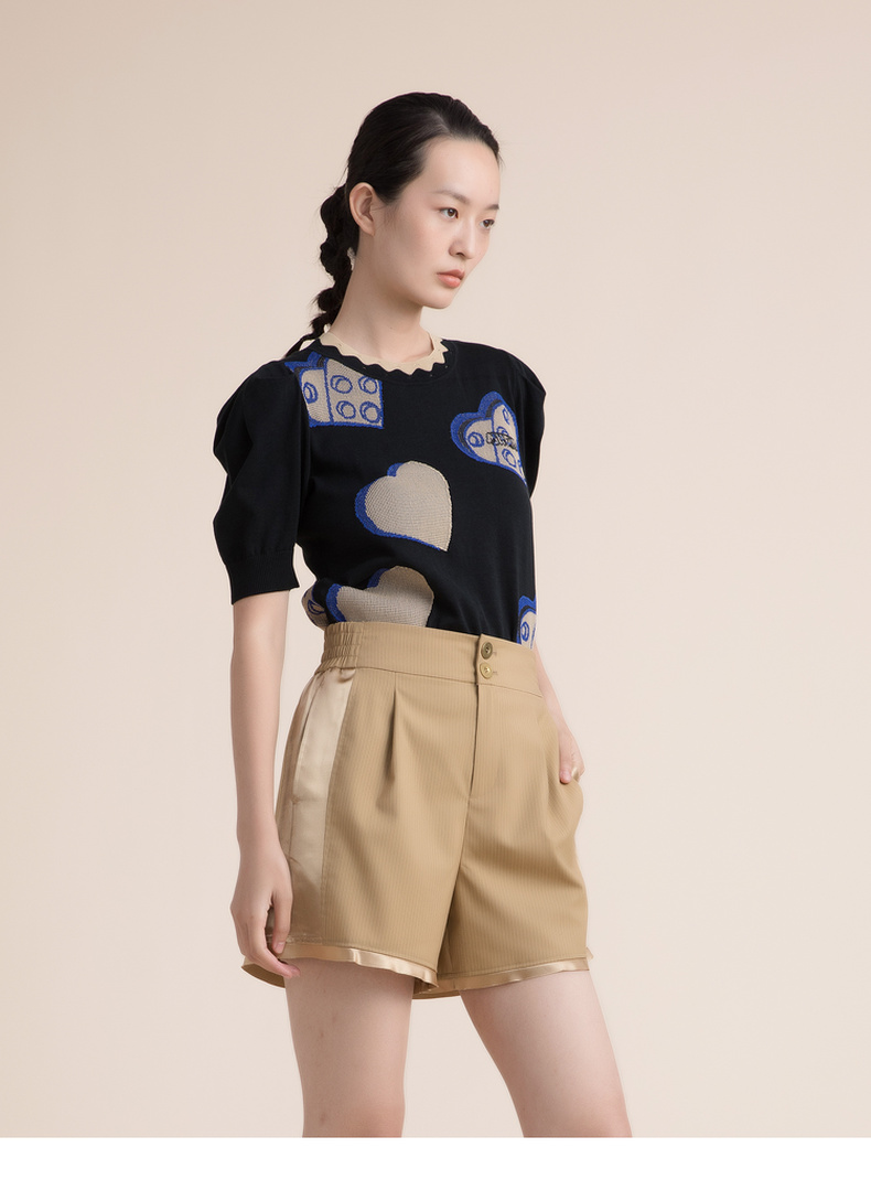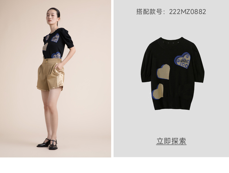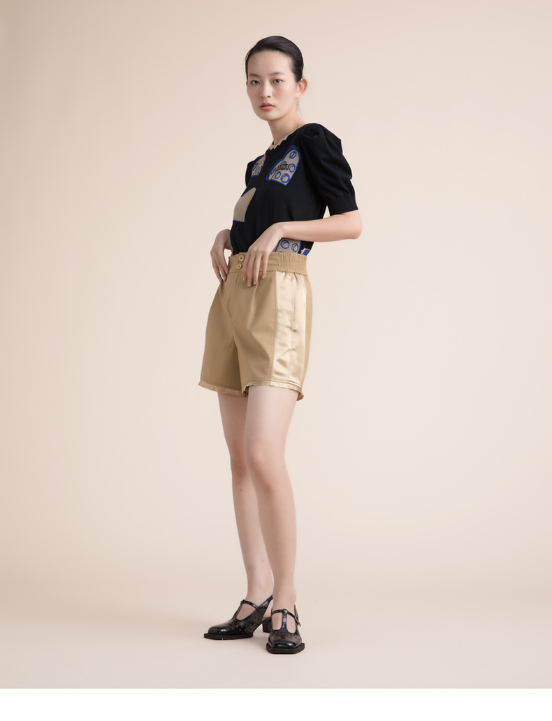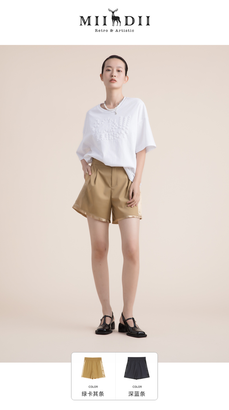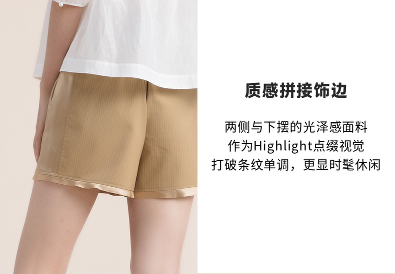 谜底小个子短裤2022夏季新款复古细条纹拼接休闲短裤女222MK0659