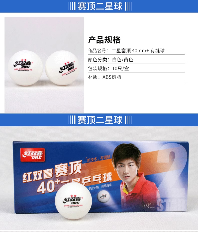 CD40B红双喜赛顶40+二星乒乓球比赛专用白色(十个装)