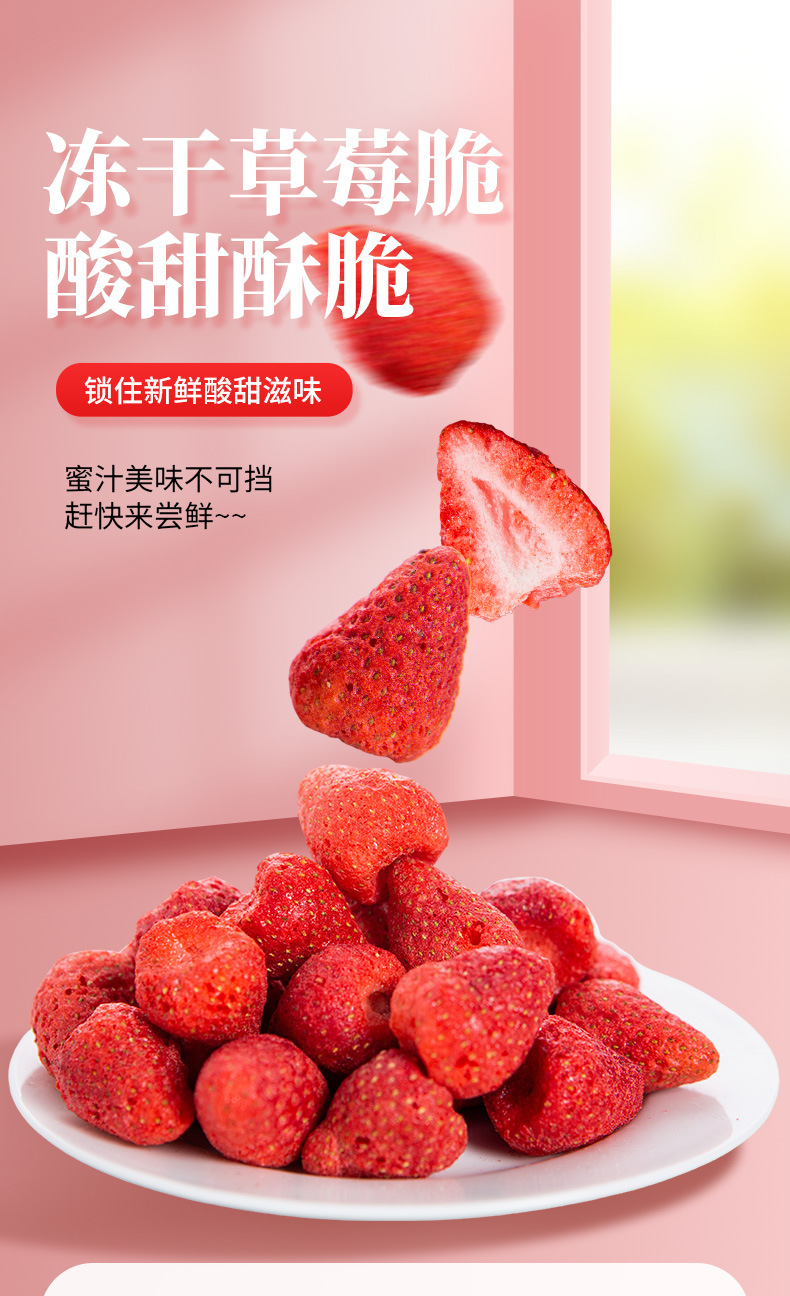 【超好吃!即食冻干草莓】口感酸甜,细腻柔滑,入口即化!整颗休闲零食水果干草莓脆草莓干整颗非丹东草莓