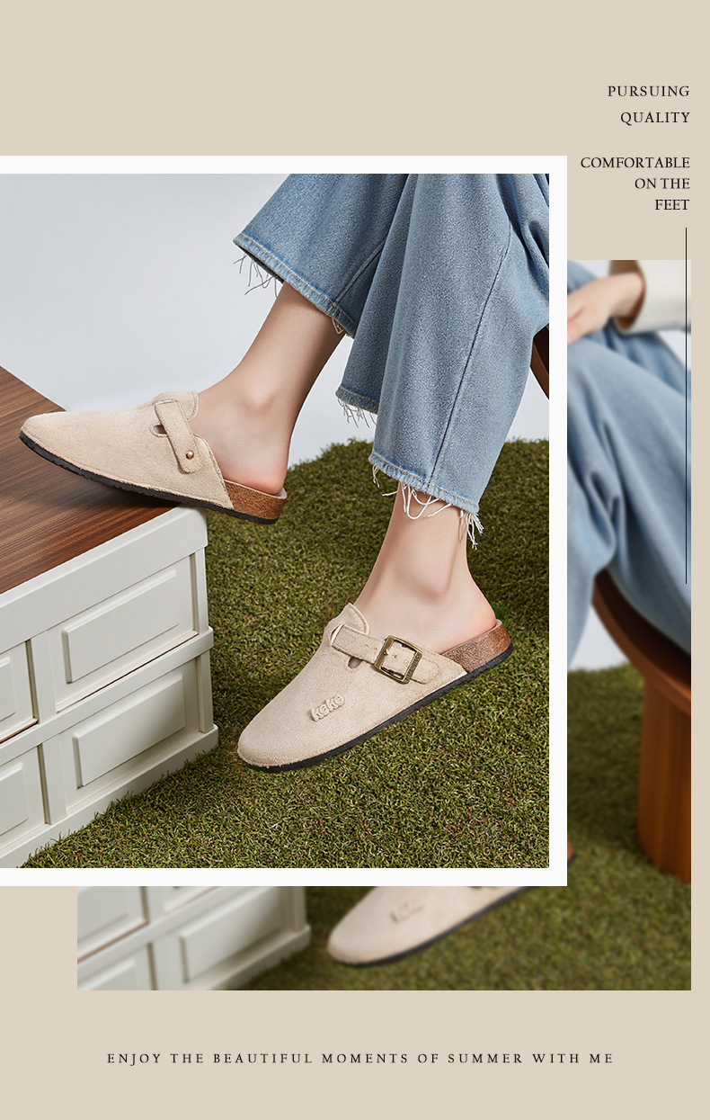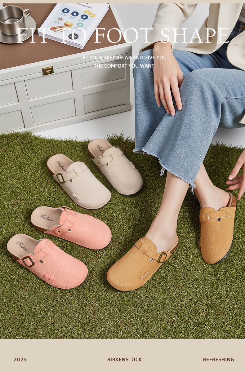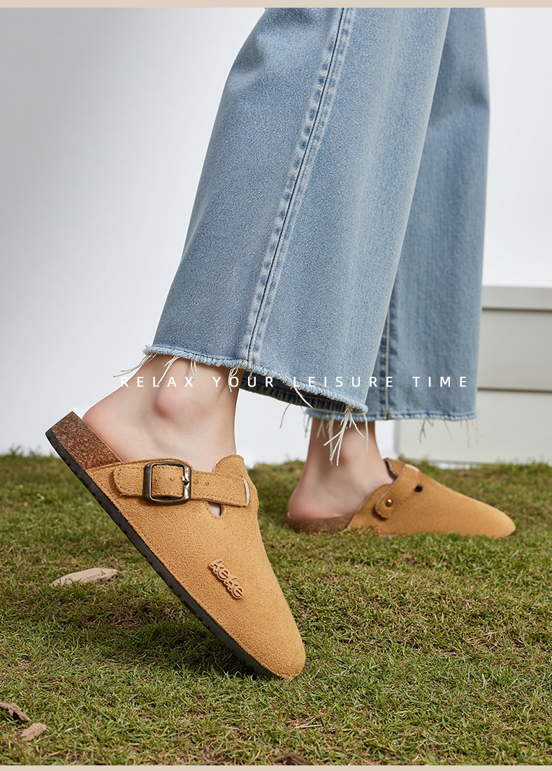 新款包头勃肯鞋厚底半拖情侣款复古小众懒人外穿女一脚蹬包头拖鞋 商品图1