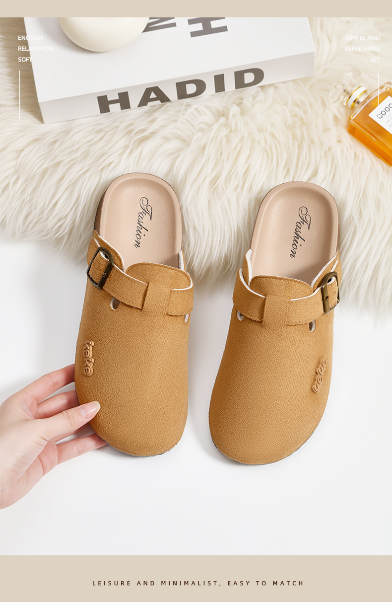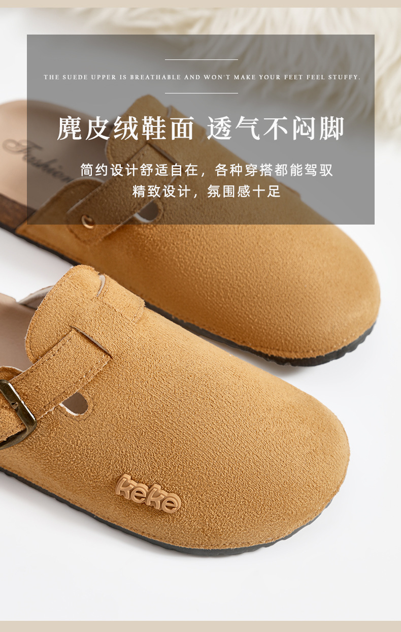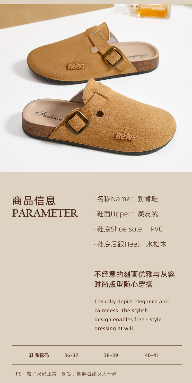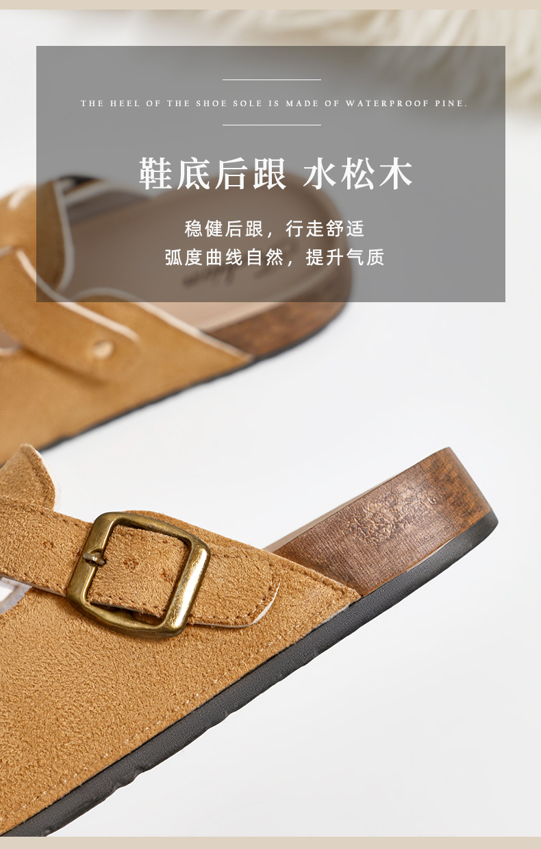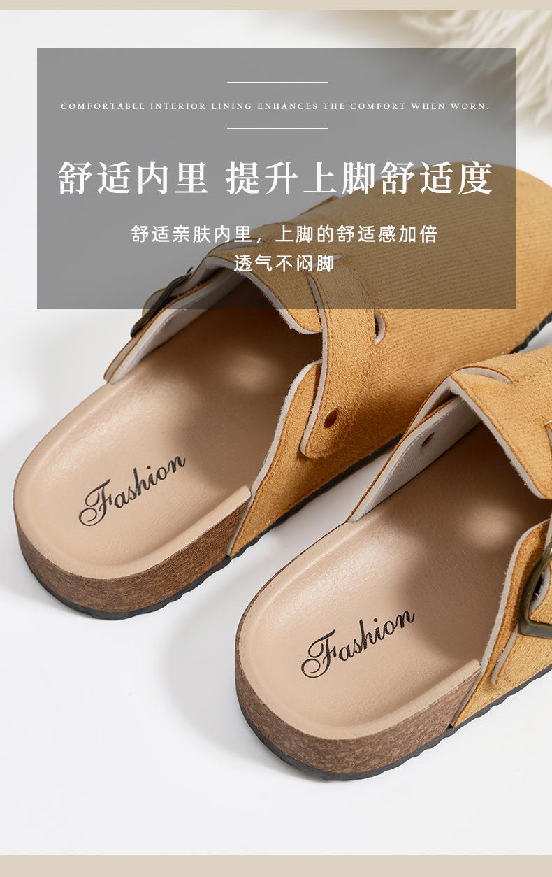 新款包头勃肯鞋厚底半拖情侣款复古小众懒人外穿女一脚蹬包头拖鞋 商品图4