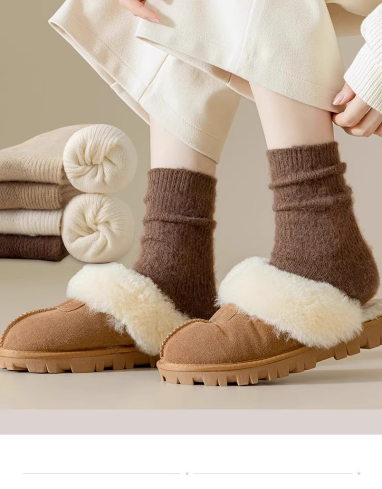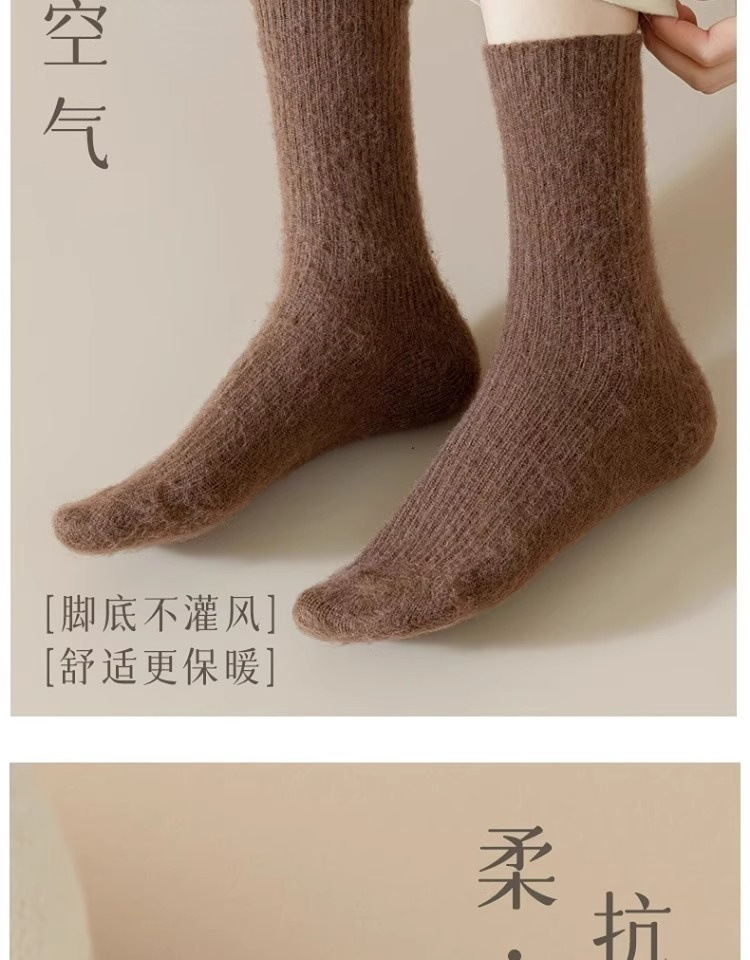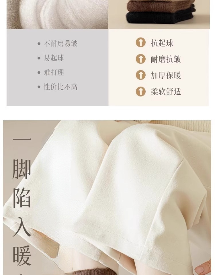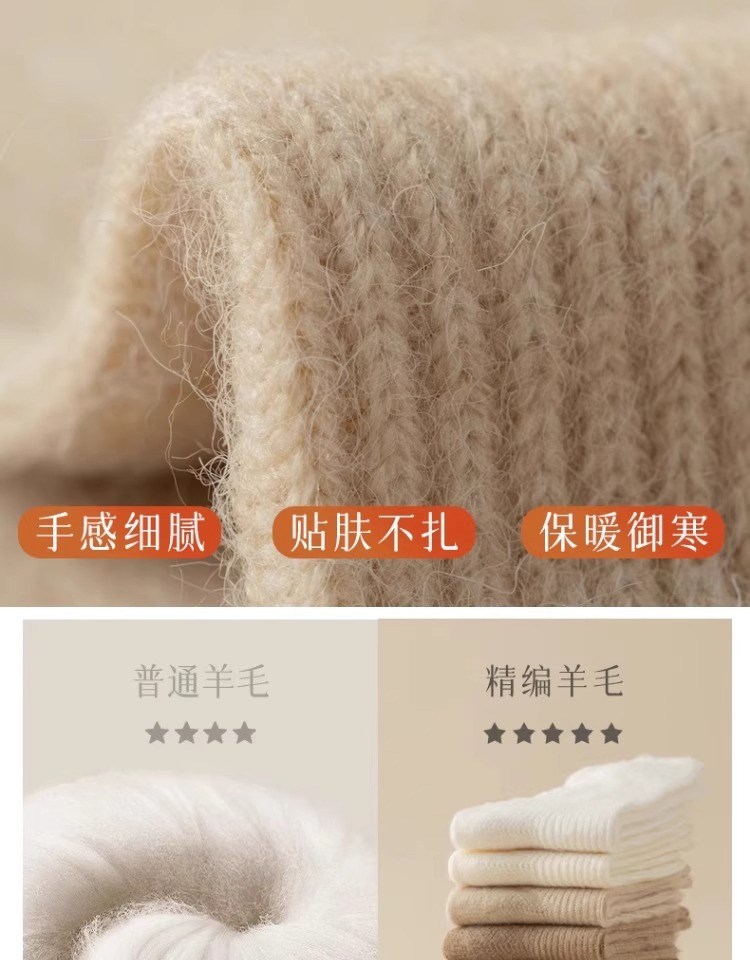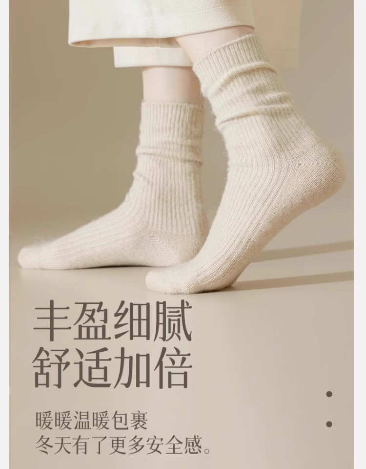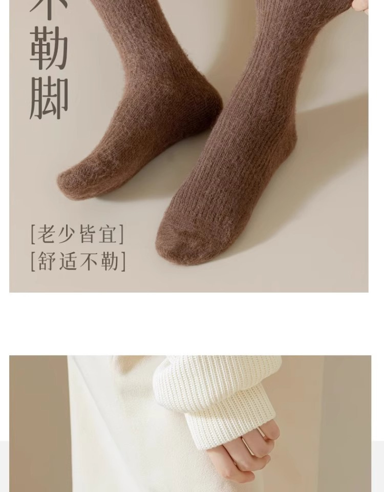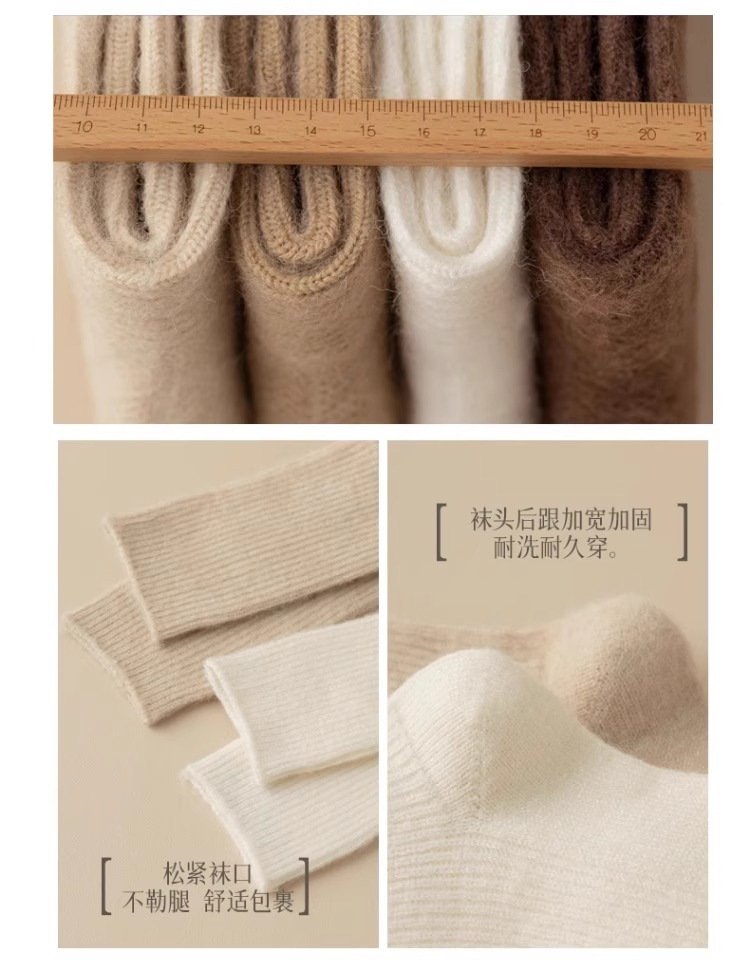 高弹力不勒脚踝羊绒袜子秋冬女羊毛袜堆堆袜月子袜保暖地板袜中筒袜子女新款新品