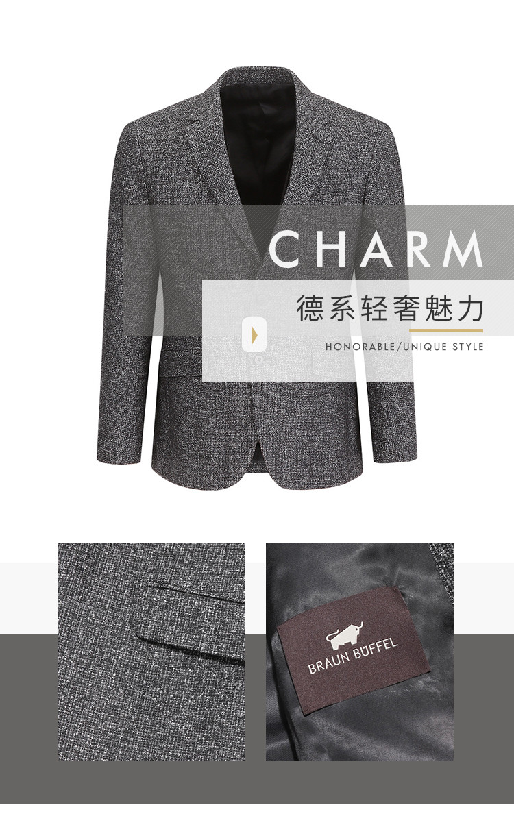 布兰施轻奢商务花灰色绅士经典羊毛西装