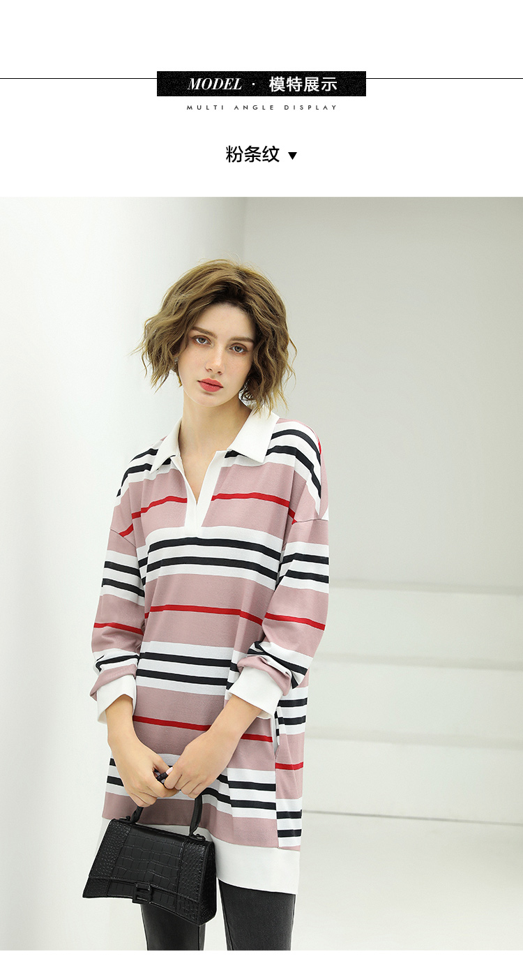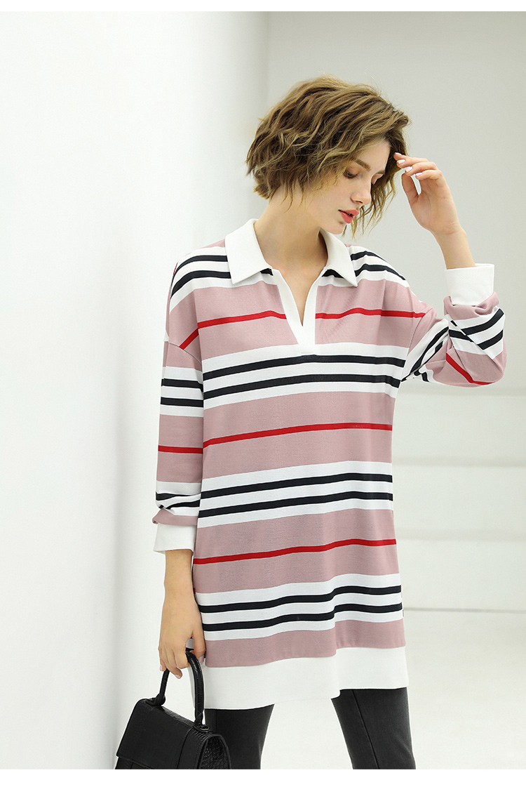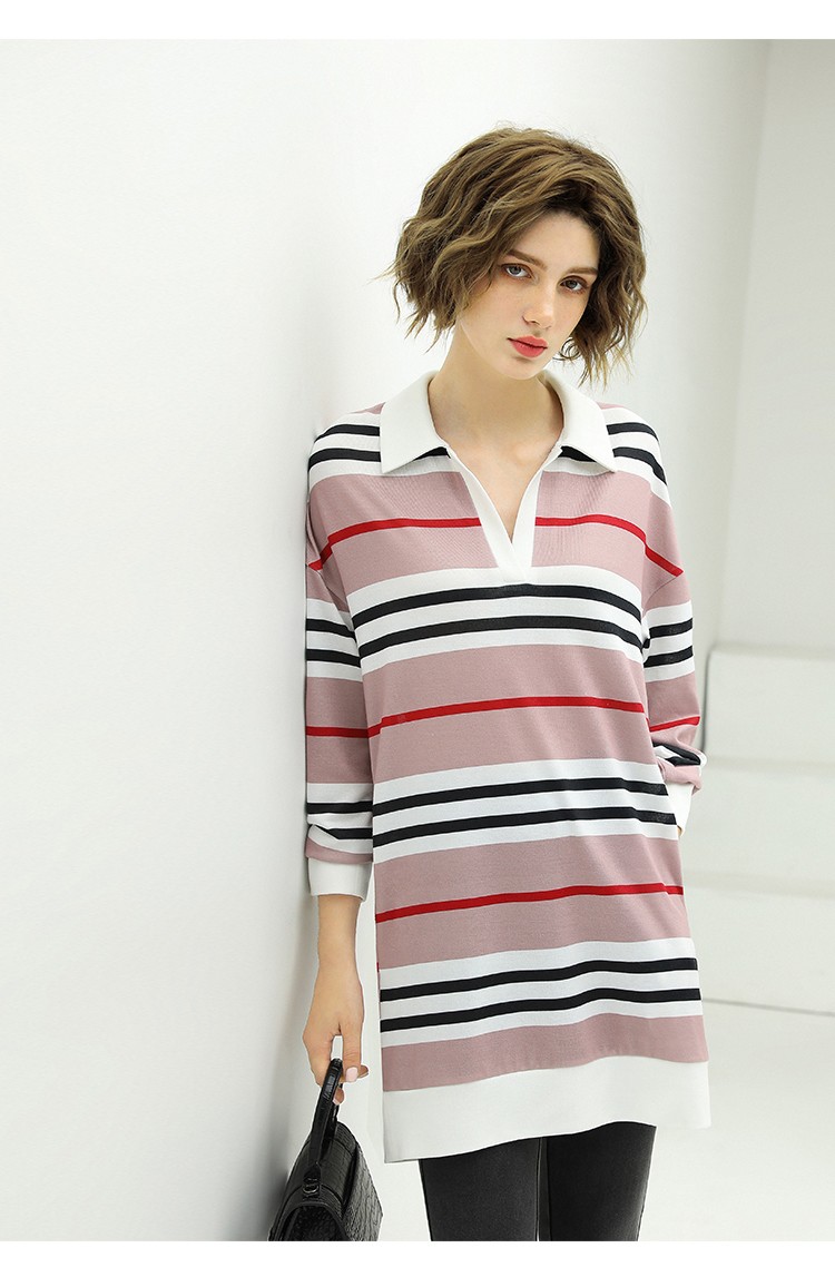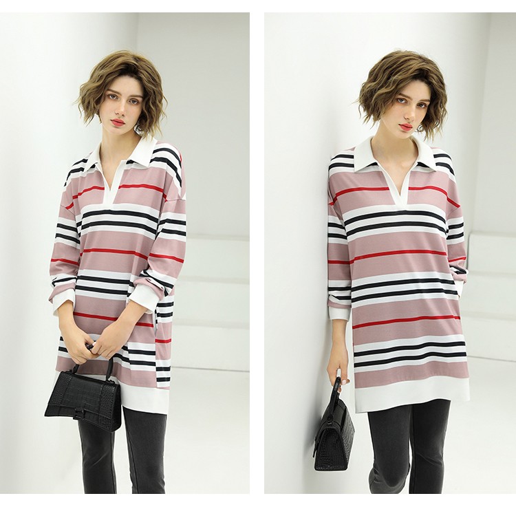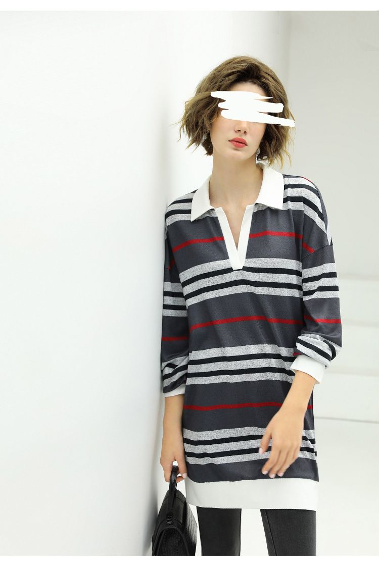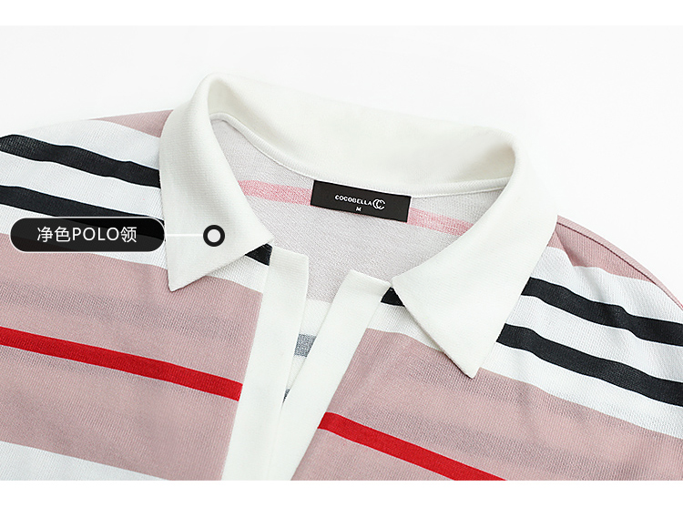 COCOBELLA撞色条纹POLO领针织连衣裙宽松长袖T恤裙FR11