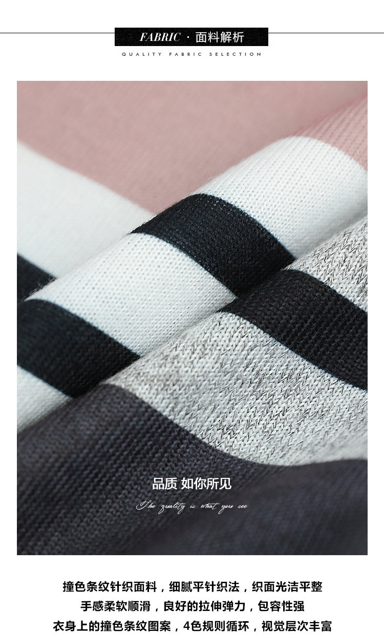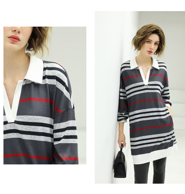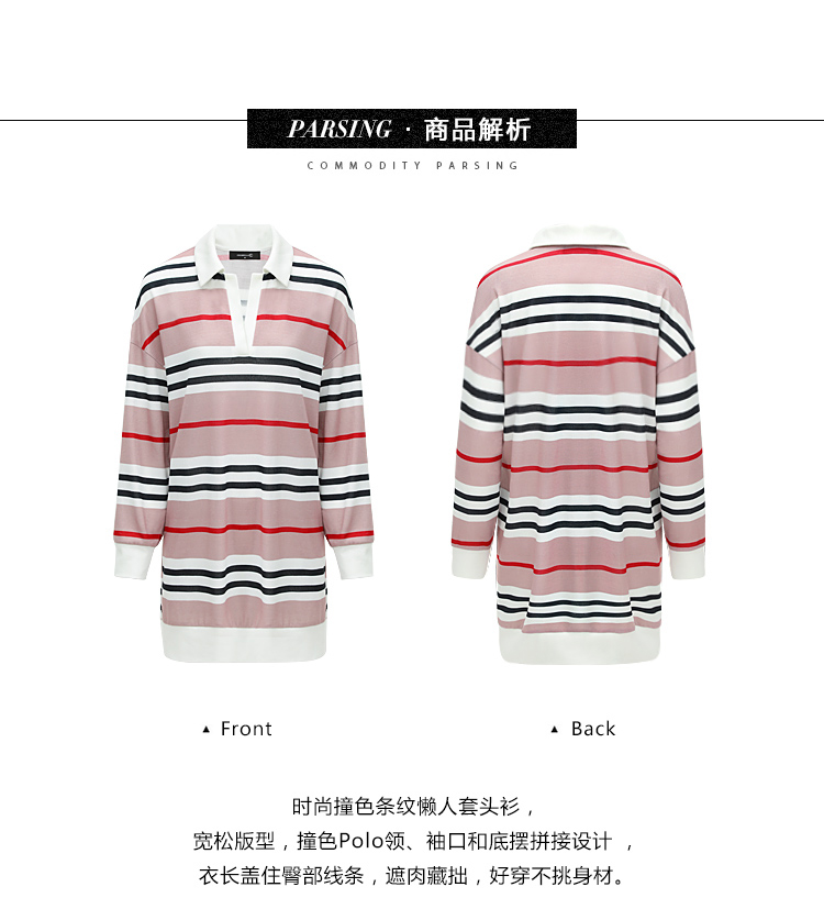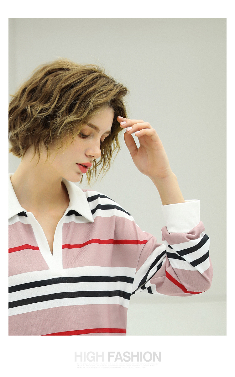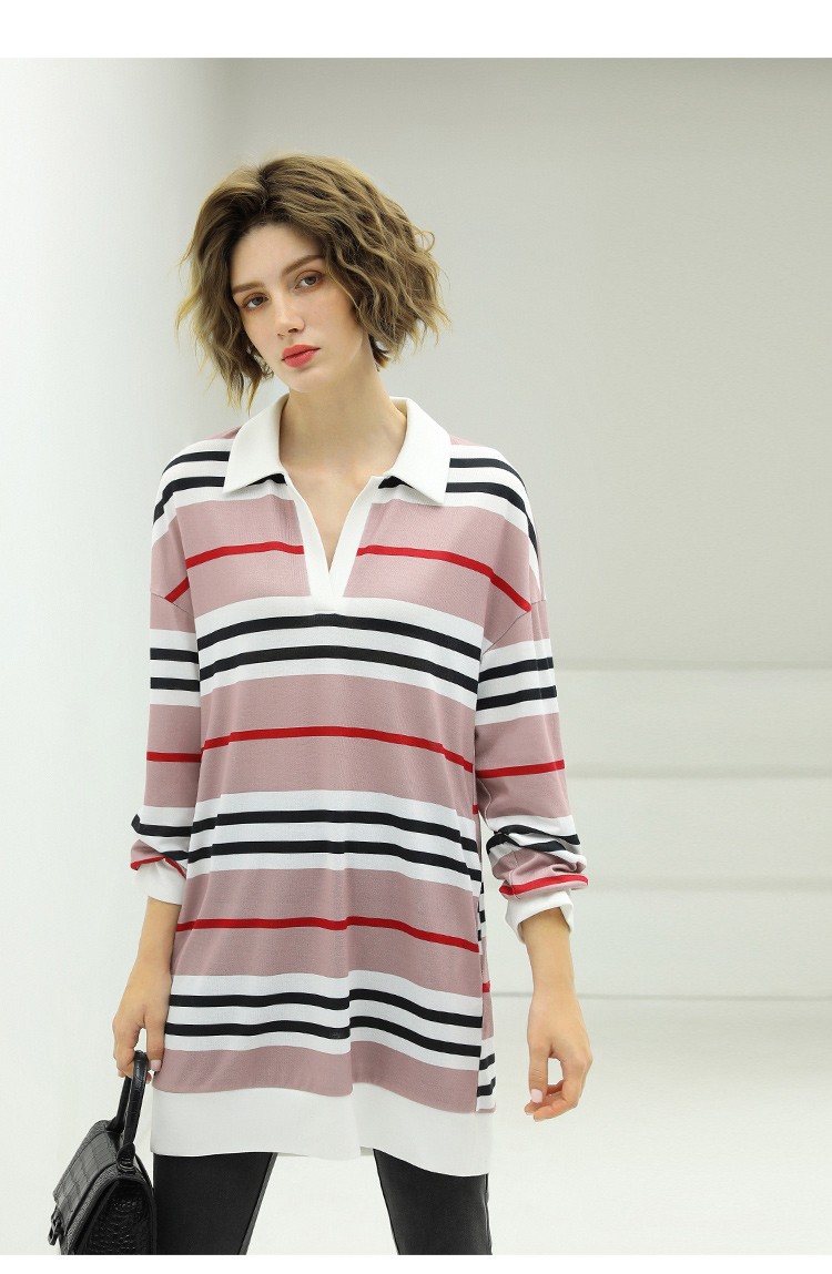 COCOBELLA撞色条纹POLO领针织连衣裙宽松长袖T恤裙FR11