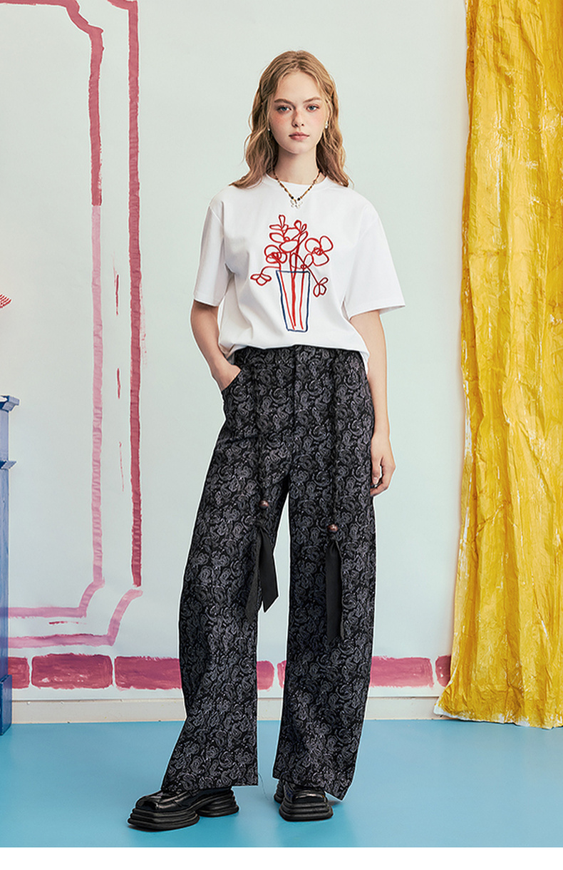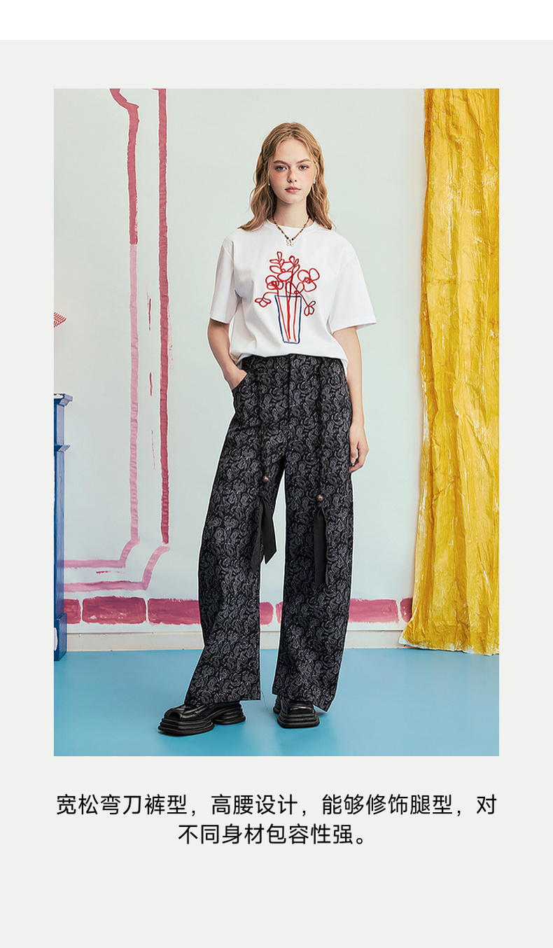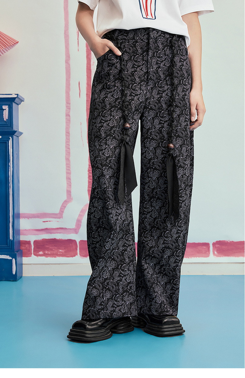 两三事情迷佩斯利2025夏季新款时尚腰果花图案系带弯刀裤女休闲裤