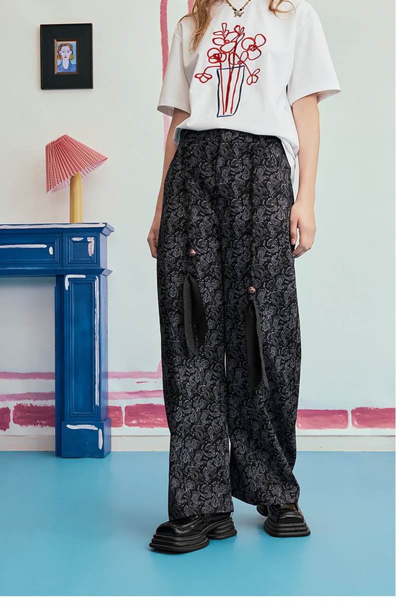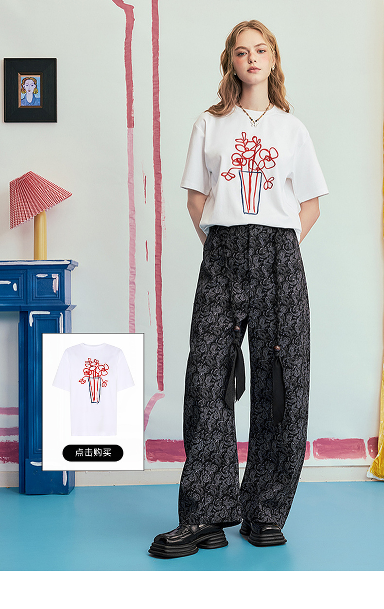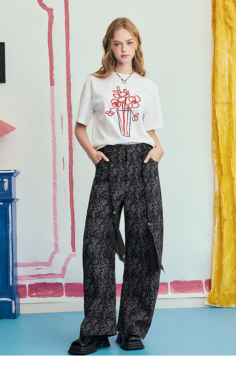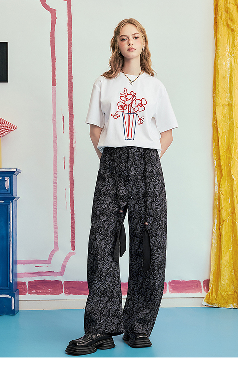 两三事情迷佩斯利2025夏季新款时尚腰果花图案系带弯刀裤女休闲裤