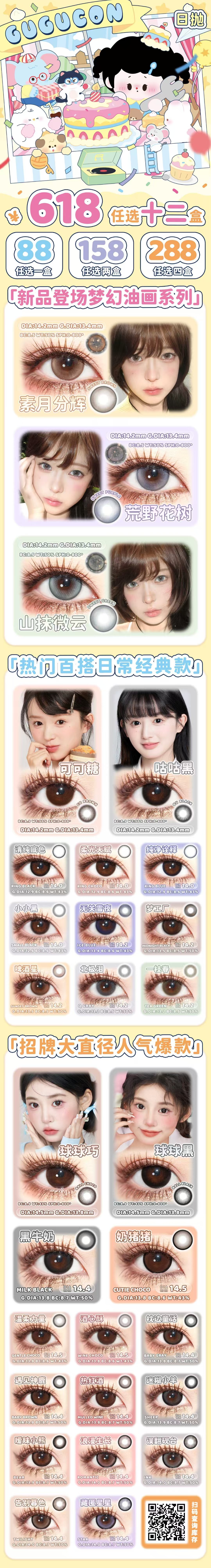 【日抛活动色板】gugucon 日抛全系列 | 【完整的选款色板在详情页内,记得下滑,同品牌多盒日抛购买更划算】咕咕黑/可可糖有半年抛,半年抛品牌也是gugucon,可以咨询客服加购 可可糖、咕咕黑、