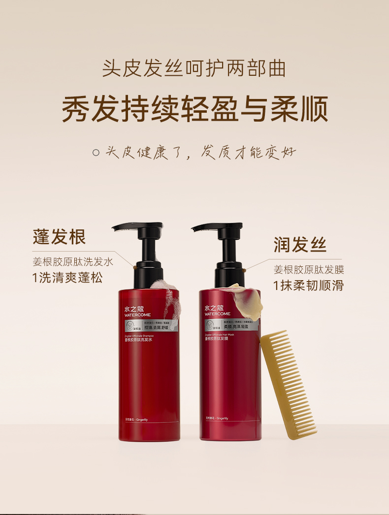 【88🉐2瓶】⭐️25年新款水之蔻姜根胶原肽洗发水控油去屑蓬松发根男女专用