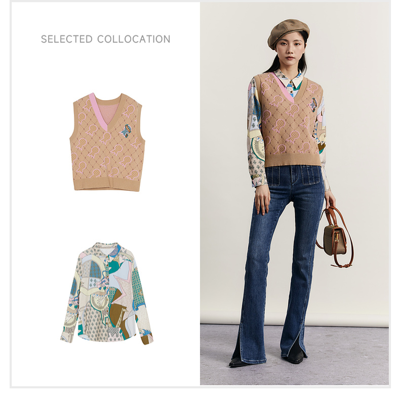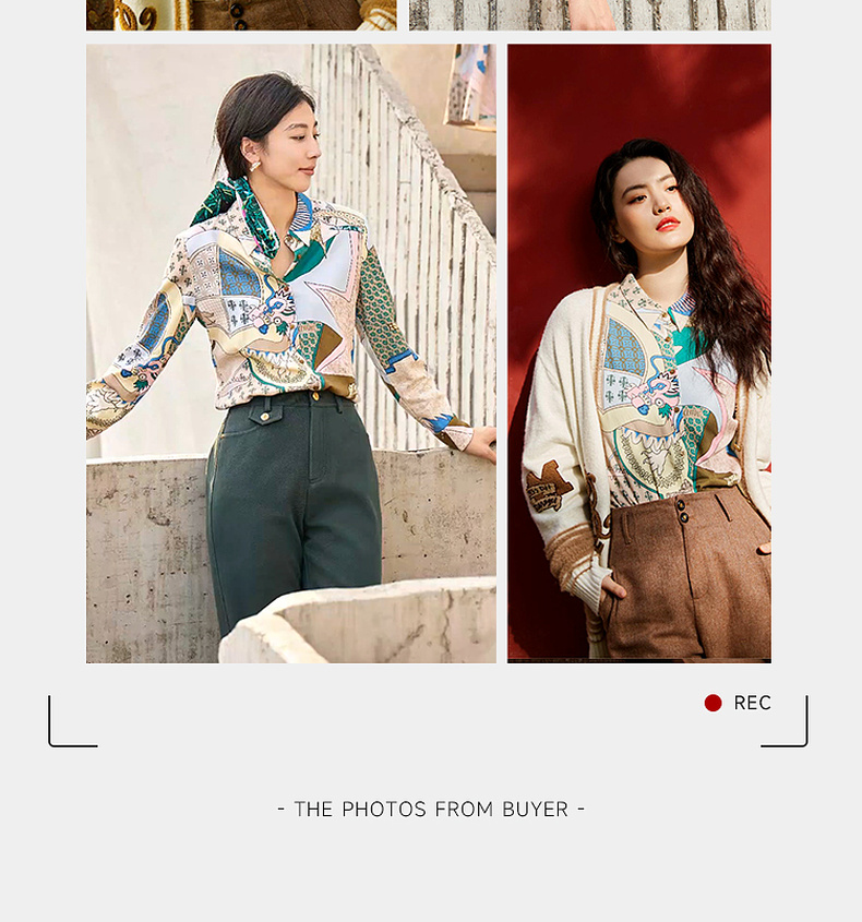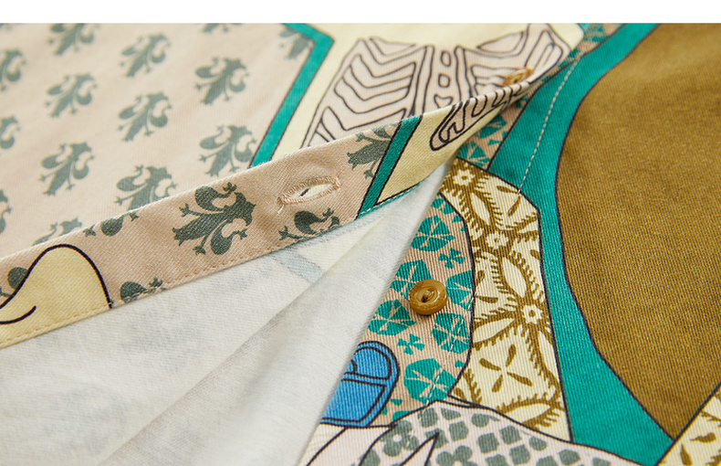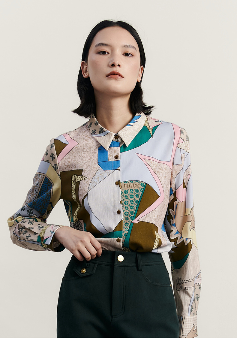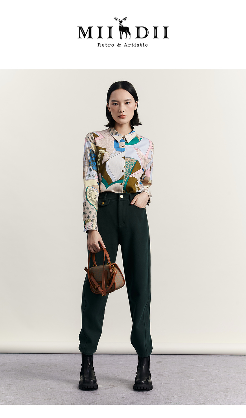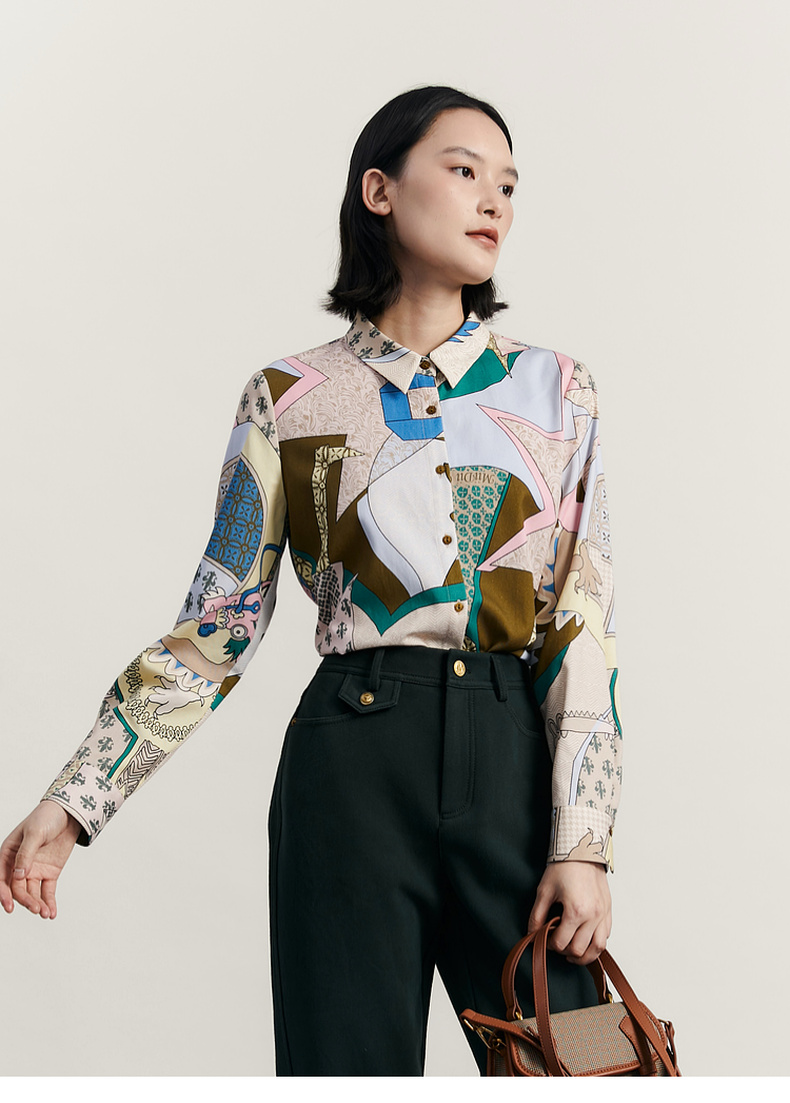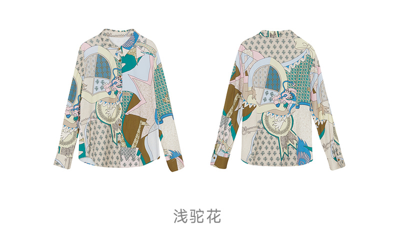 谜底花色衬衫长袖女2023冬季新品复古原创印花修身衬衣234MC1503