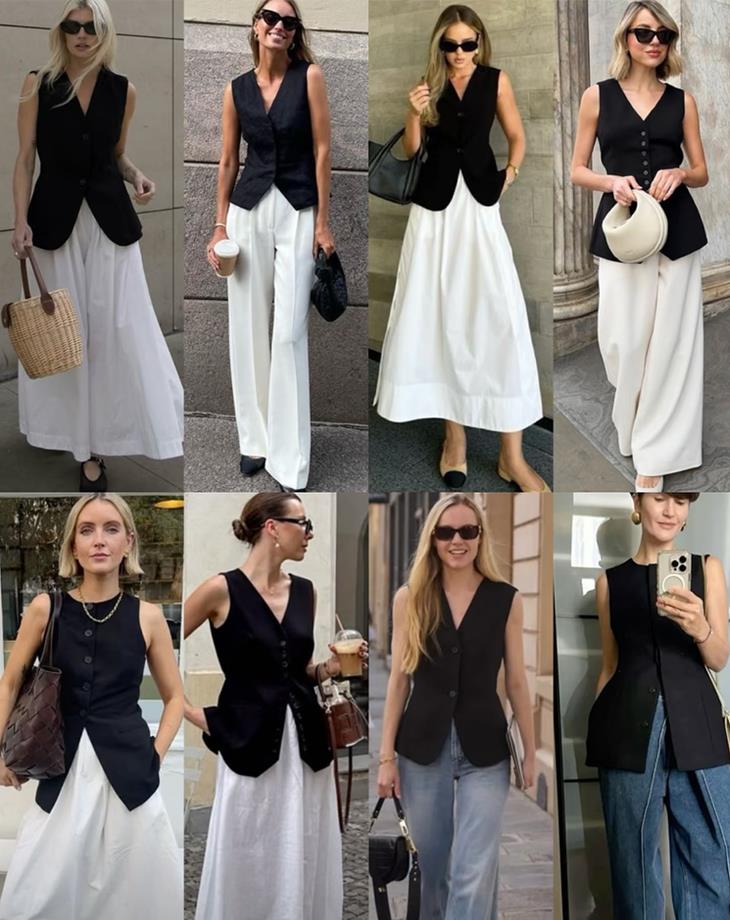 △一件黑马甲的多种时髦穿搭。