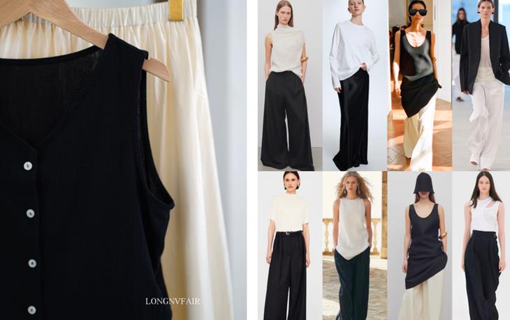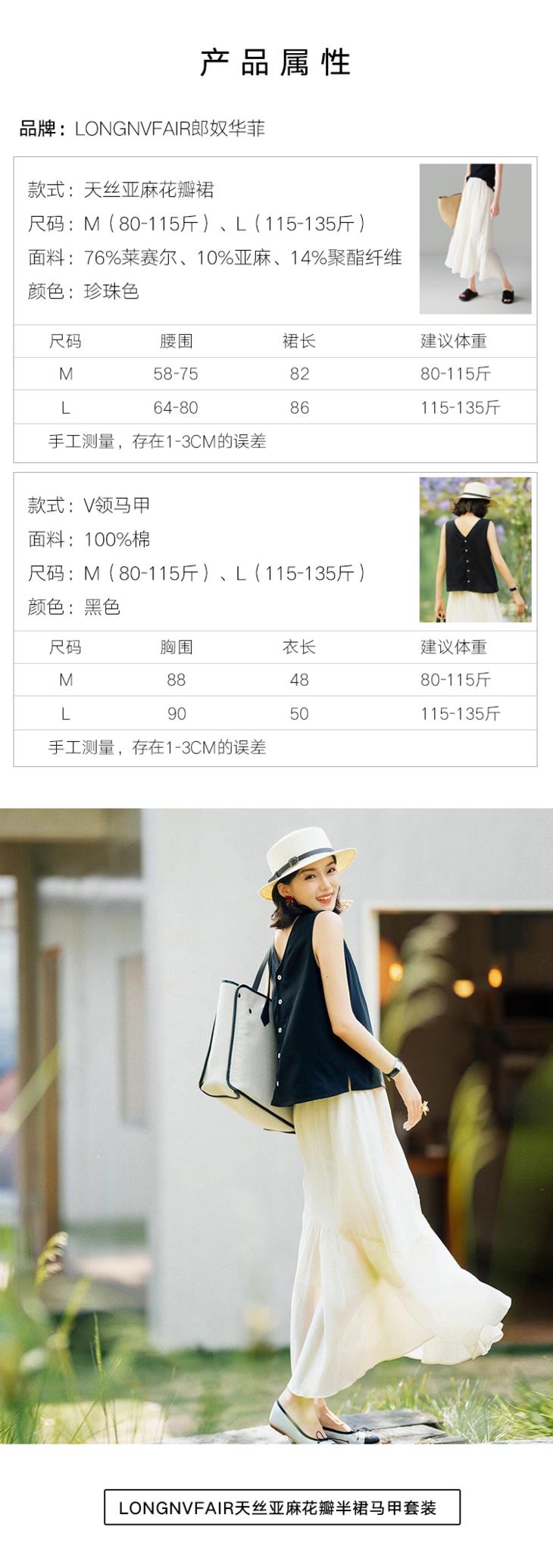 LONGNVFAIR郎奴华菲,找来了这一套很适合亚洲人穿的Clean Fit天丝亚麻花瓣半裙马甲套装。