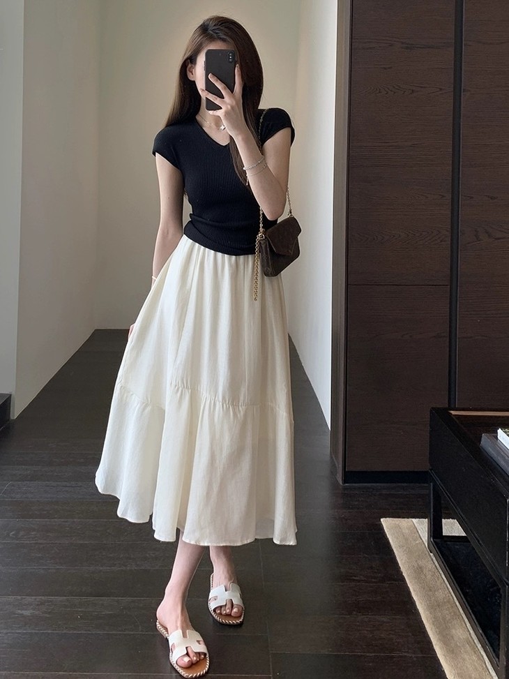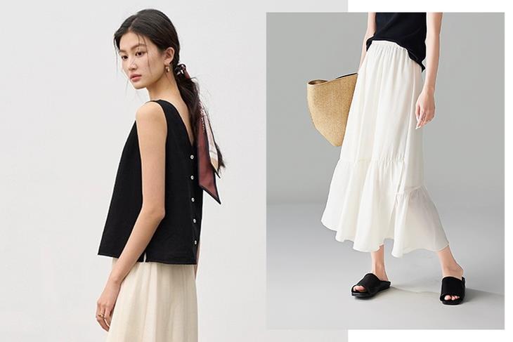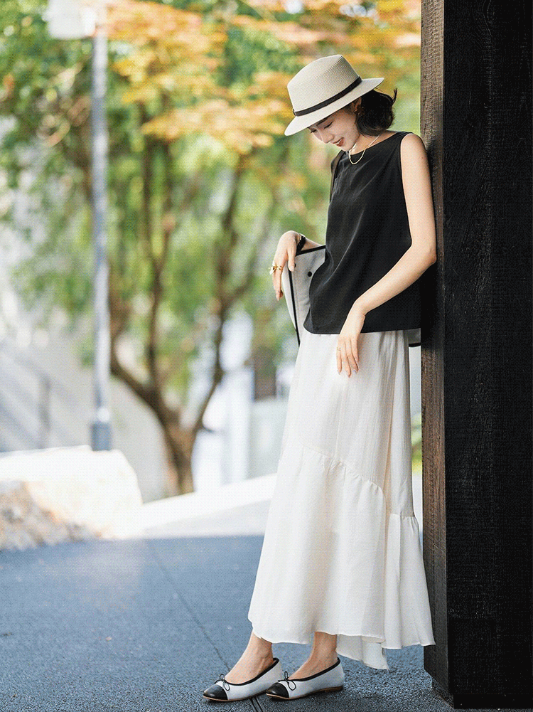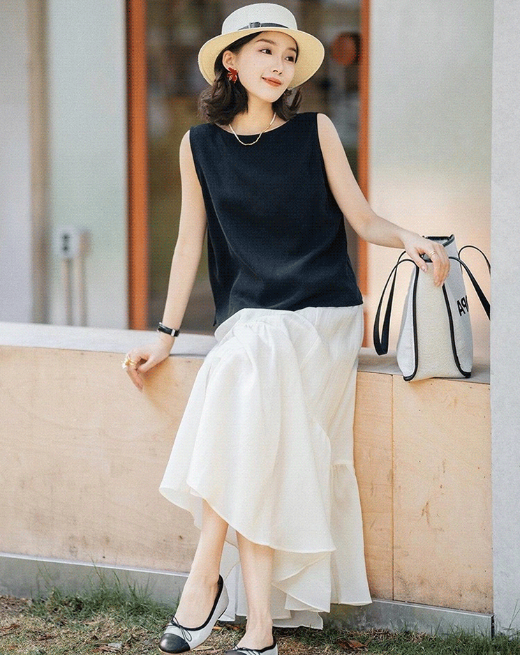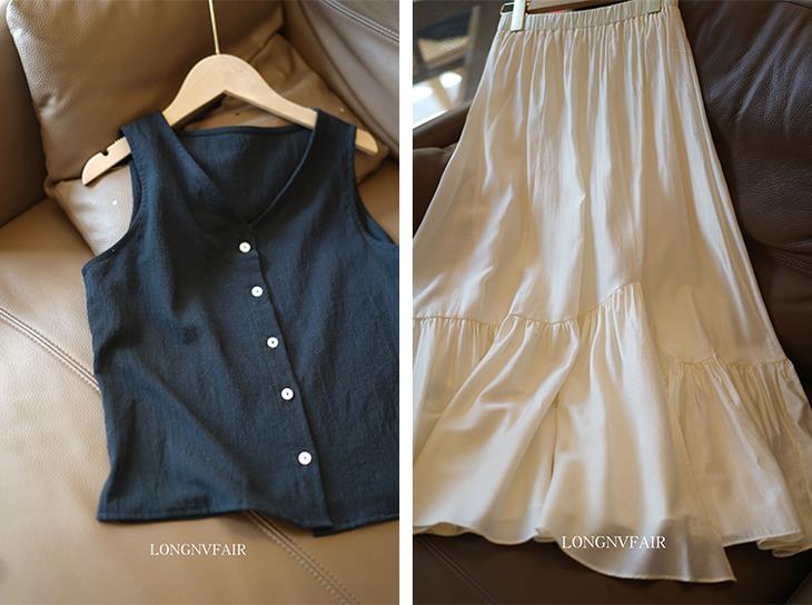 天丝亚麻花瓣半裙马甲套装, 夏日黑白配的高级感,轻松解锁干练都市风(预售3-7天发货)【G】