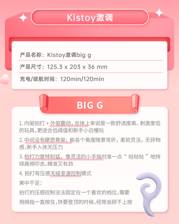 kistoy激调大G棒2代压力传感CG同潮拍震两用入体自慰情趣玩具
