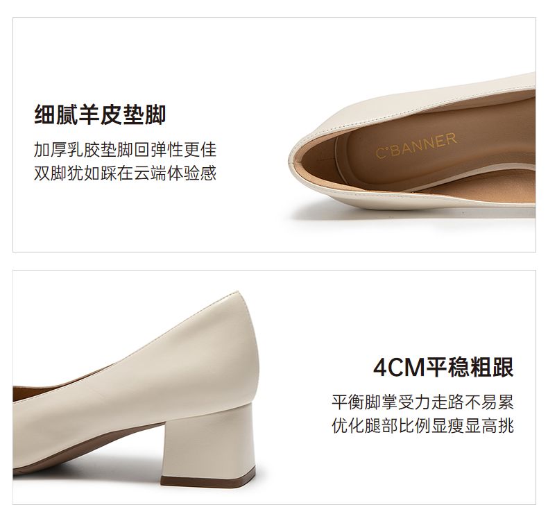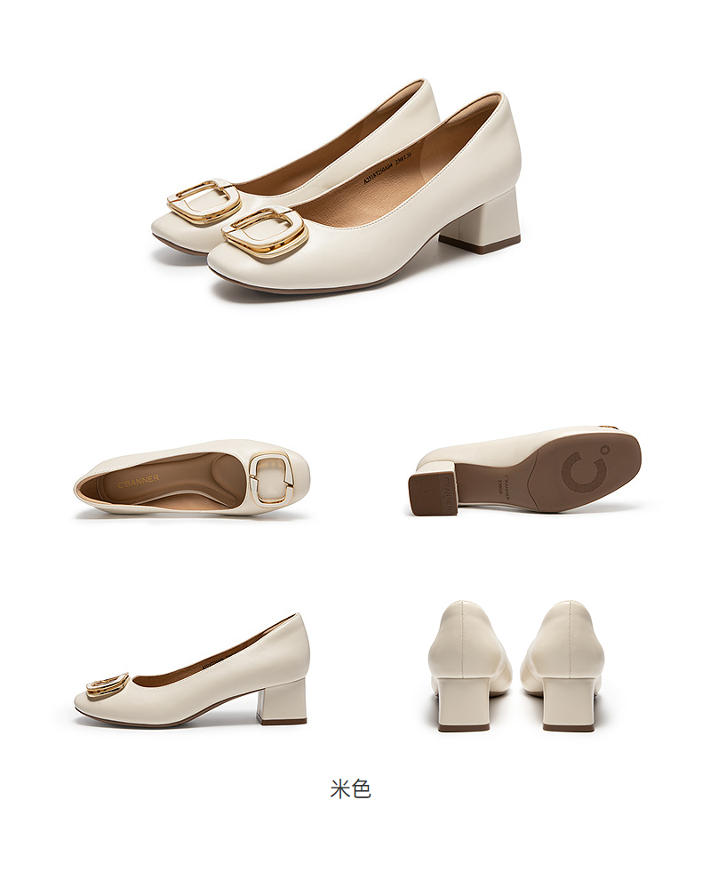 千百度粗高跟羊皮浅口单鞋女款通勤正装法式晚晚鞋A25187250