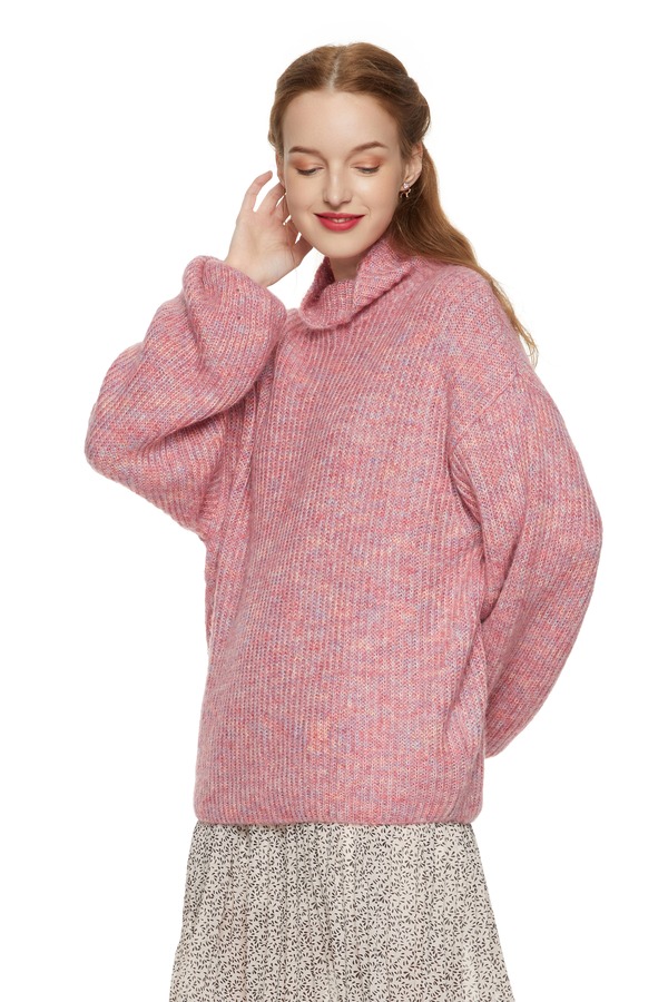 AVA 粉色高领休闲毛衣 7828