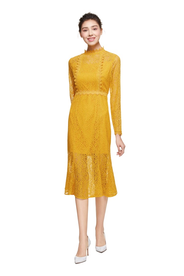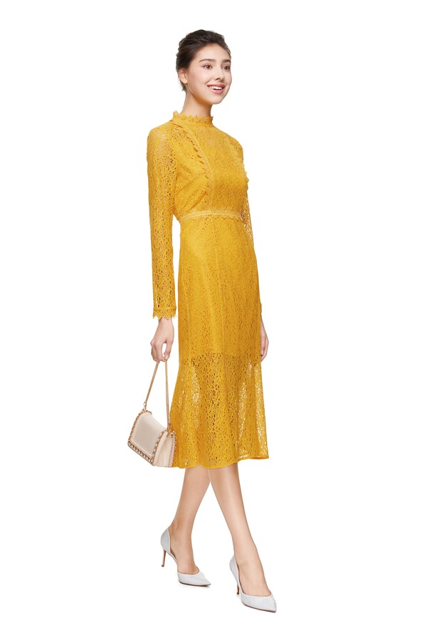 ELLA JADE 黄色花朵镂空连衣裙 8796