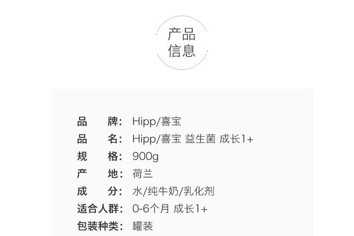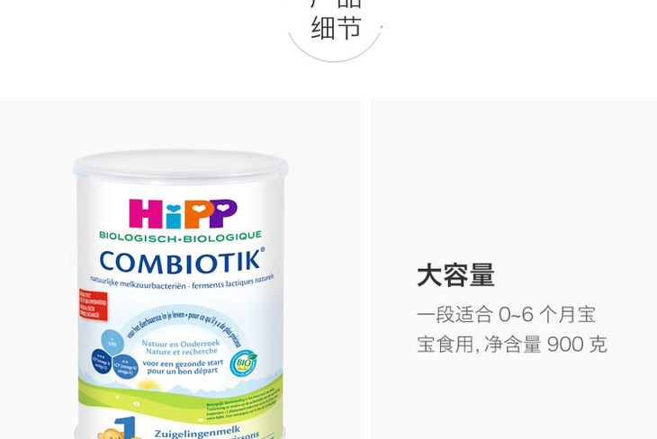 HiPP喜宝荷兰版有机益生菌奶粉1段800克/罐0-6个月(新旧随机发货)