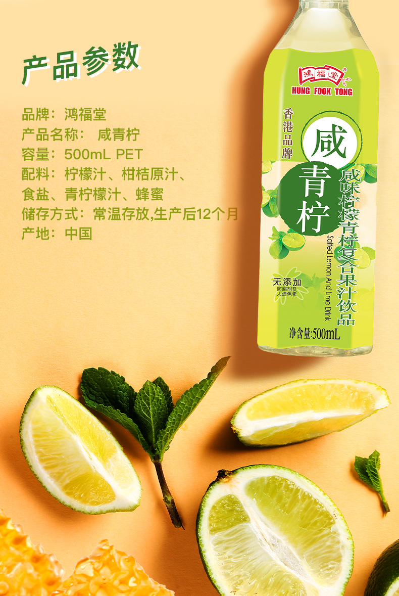 鸿福堂咸青柠500ml*15