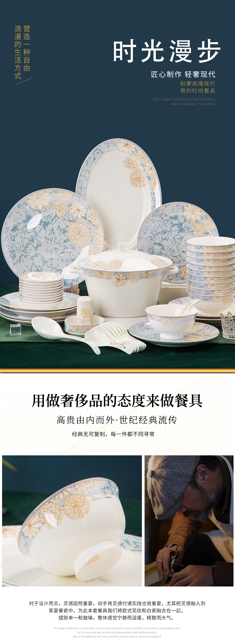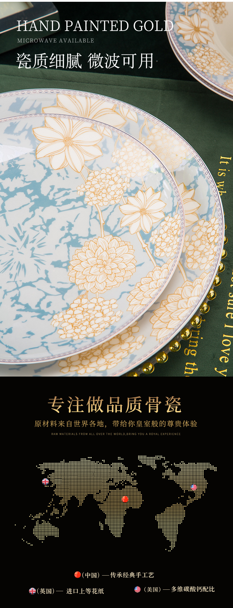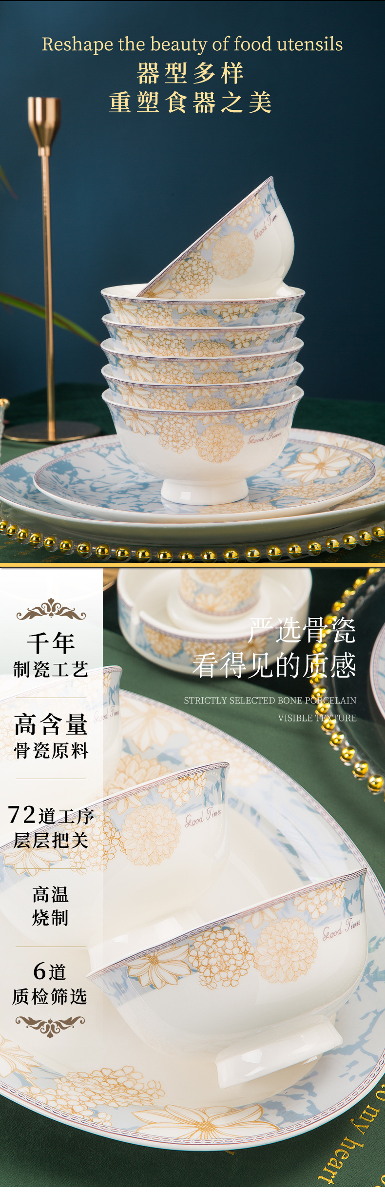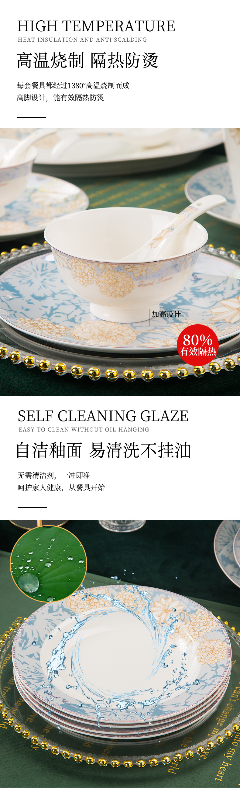 自然醒碗碟套装家用轻奢景德镇陶瓷骨瓷餐具套装碗盘家用乔迁TXTX