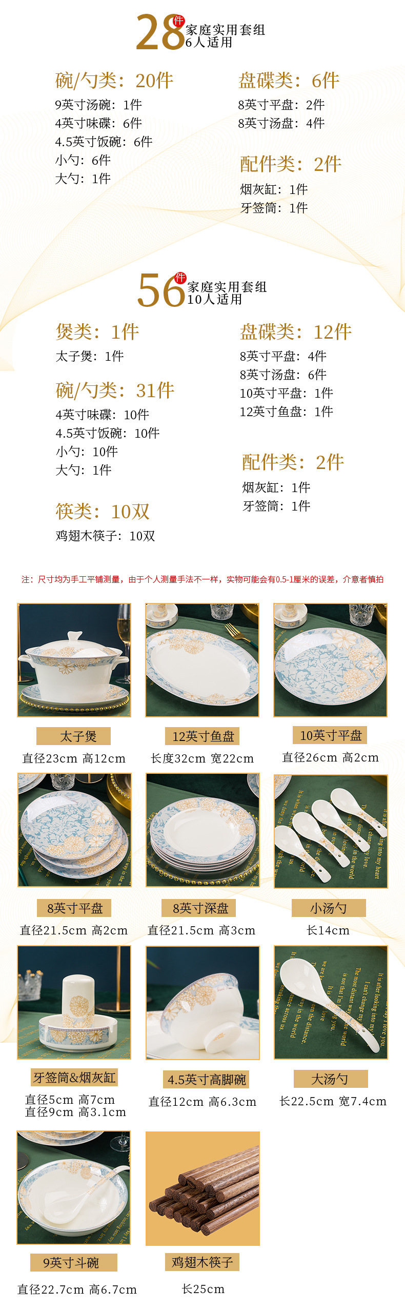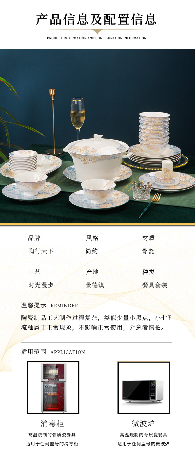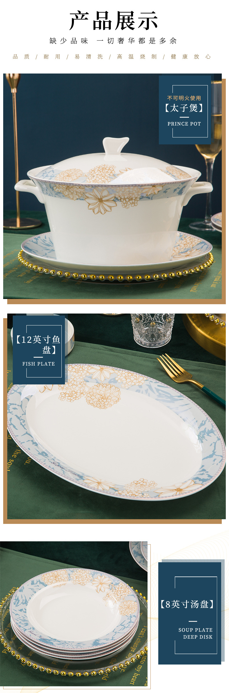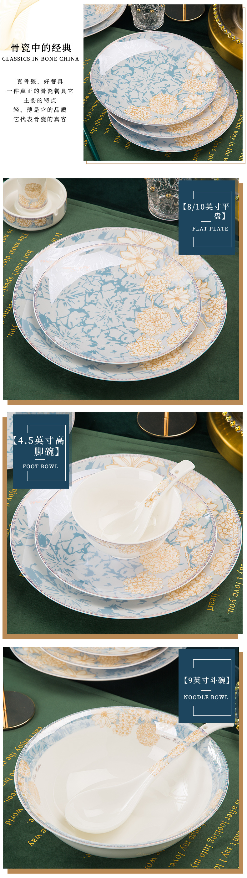 自然醒碗碟套装家用轻奢景德镇陶瓷骨瓷餐具套装碗盘家用乔迁TXTX