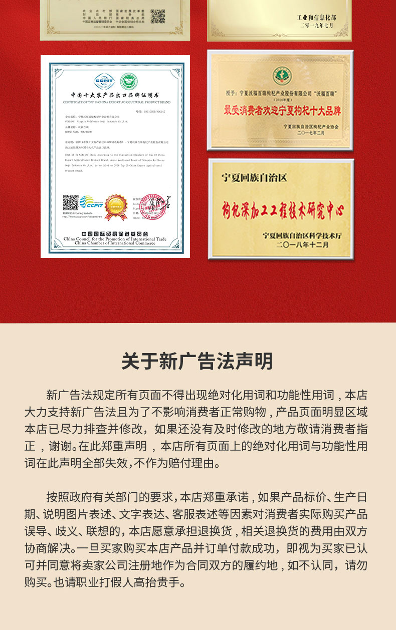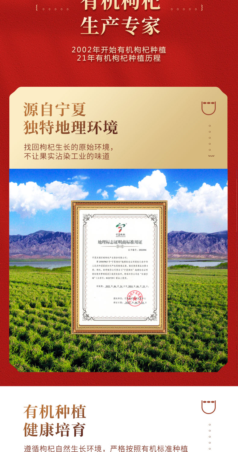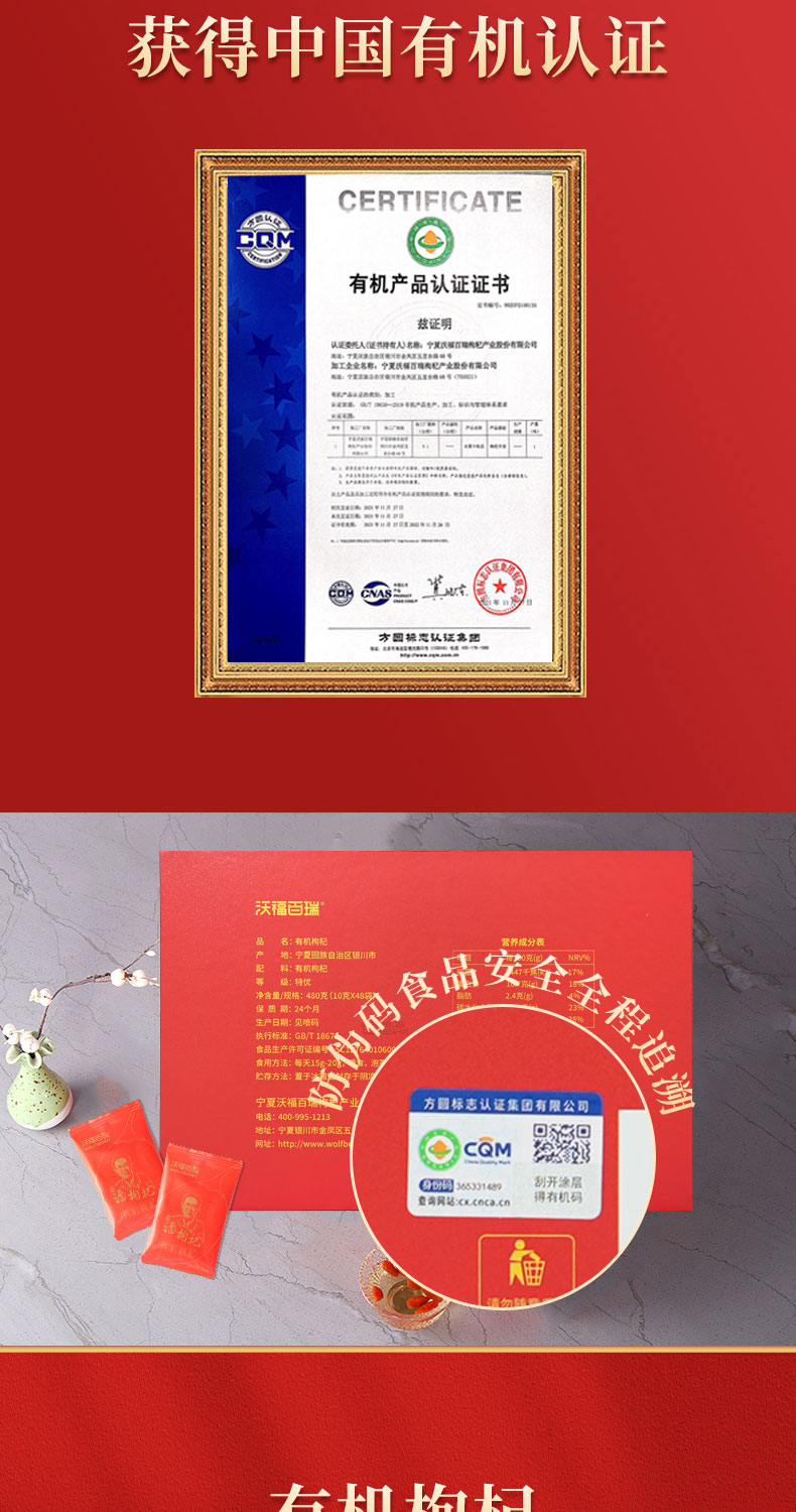 沃福百瑞 有机红枸杞480g礼盒装 宁夏枸杞(10g*48袋)