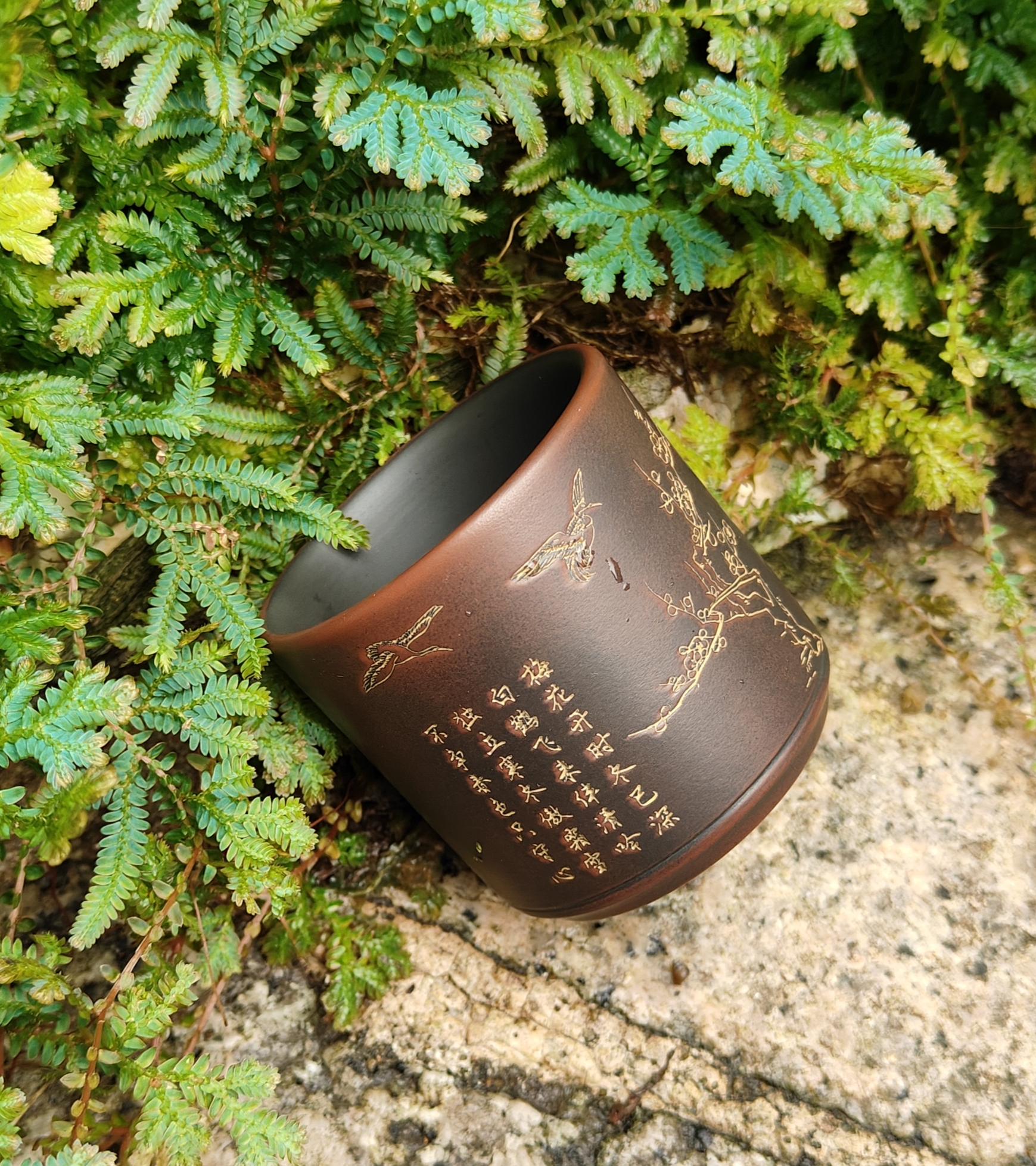 一物堂坭兴陶线雕主人杯品茗杯功夫茶杯风景白鹤梅心若兰般若波罗蜜多心经杯(约80ml)茶宠吉旺(红)