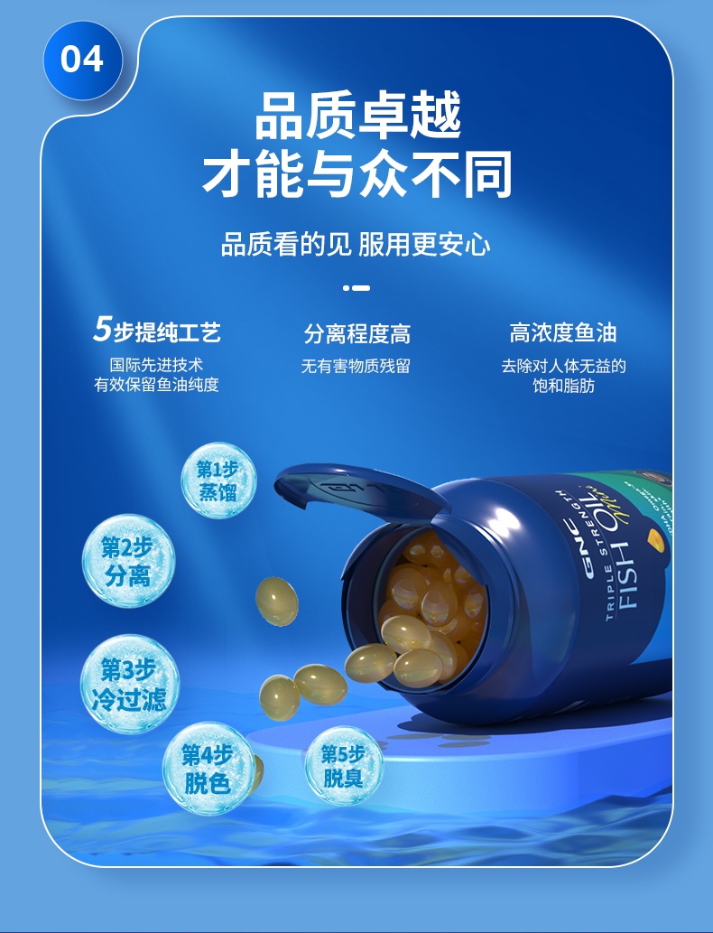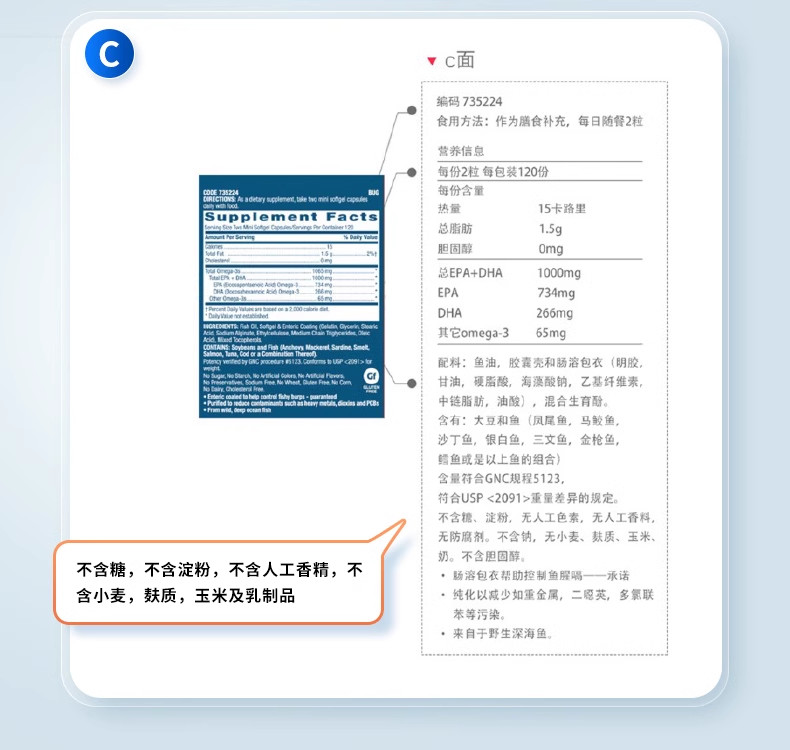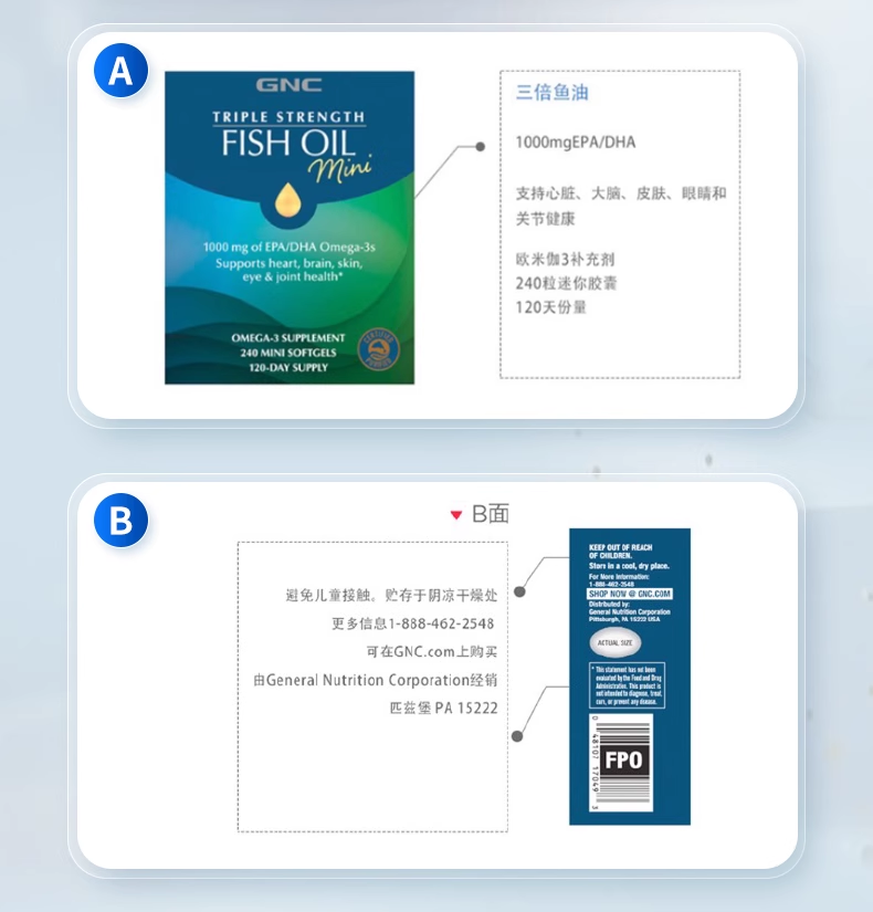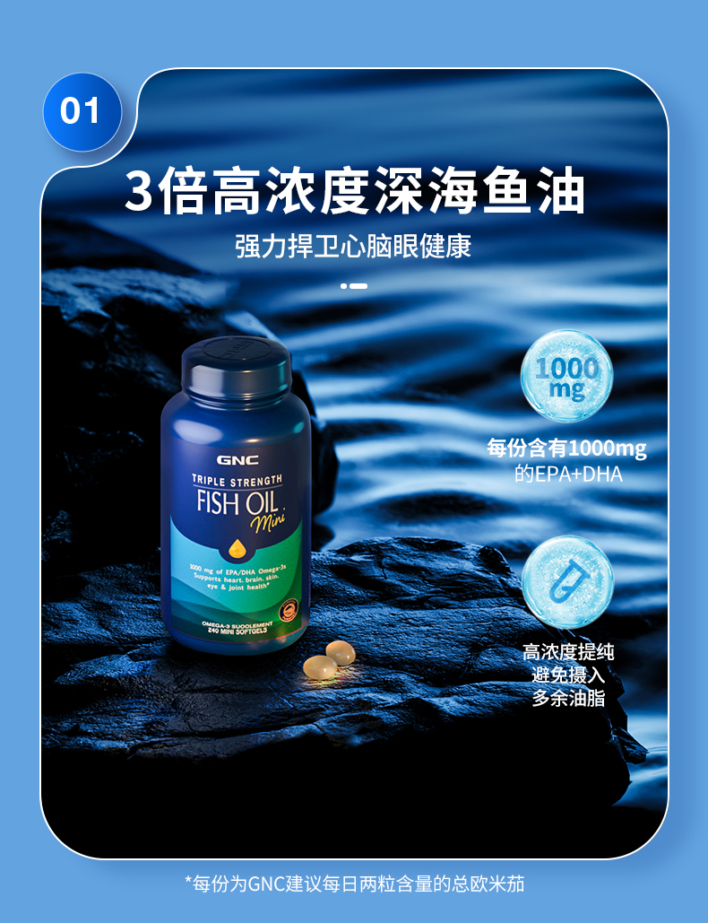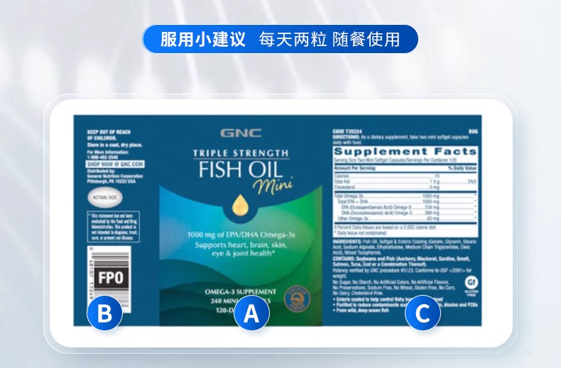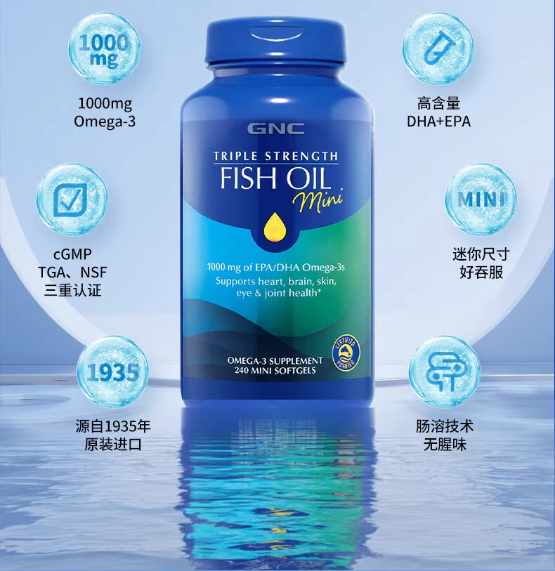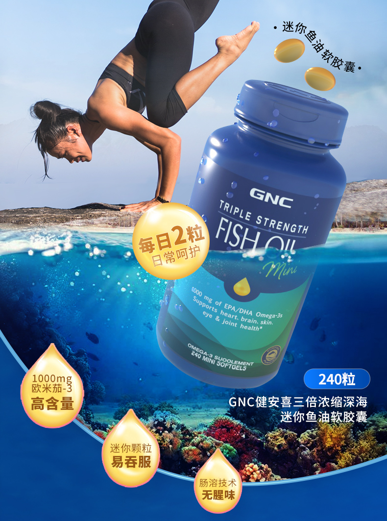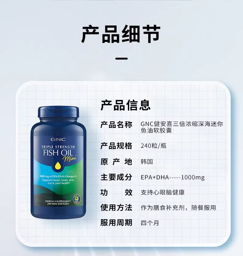 27年7月 美国GNC健安喜三倍浓缩加强型鱼油软胶囊小粒装240粒 包邮包税