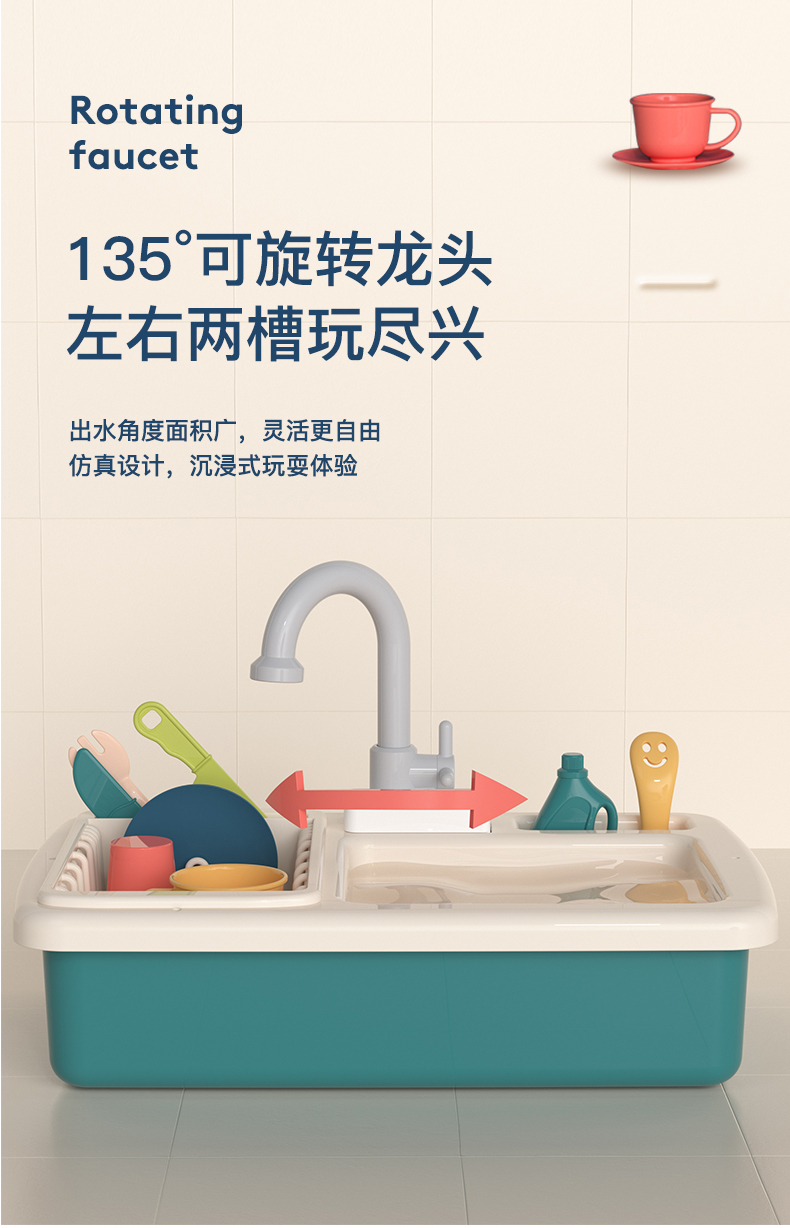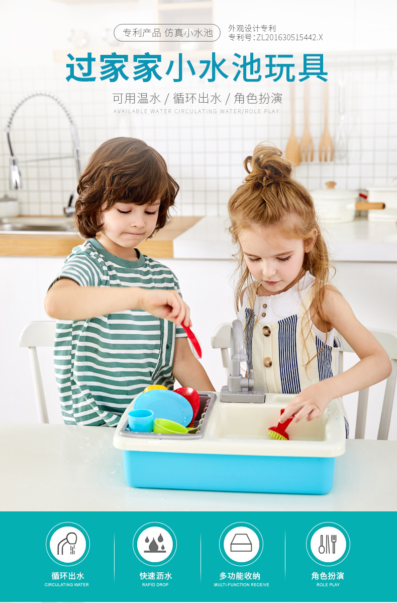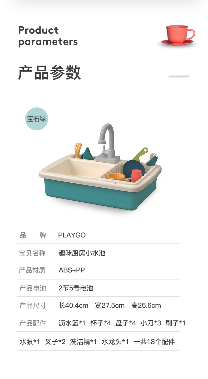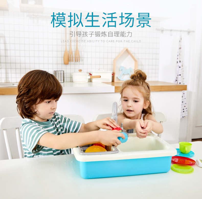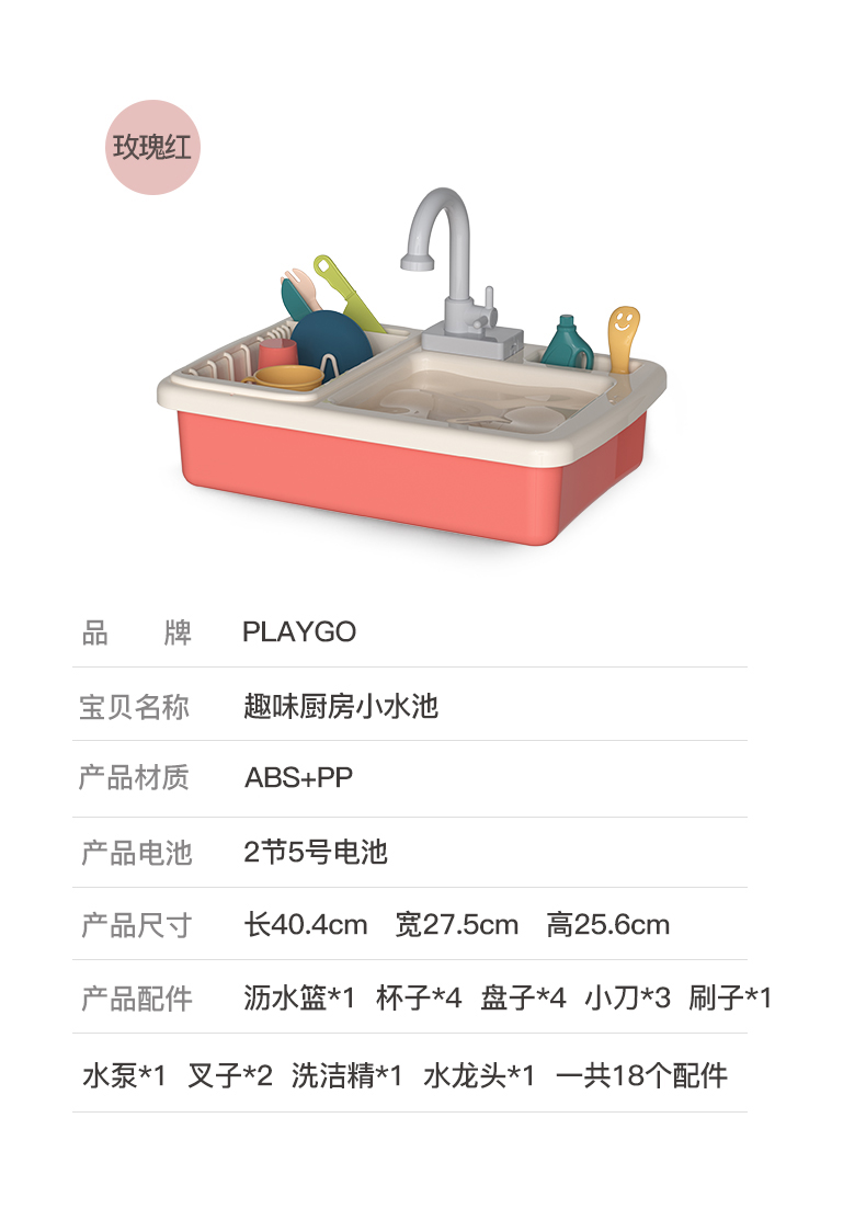 香港Playgo贝乐高小水池洗碗机过家家玩水玩具