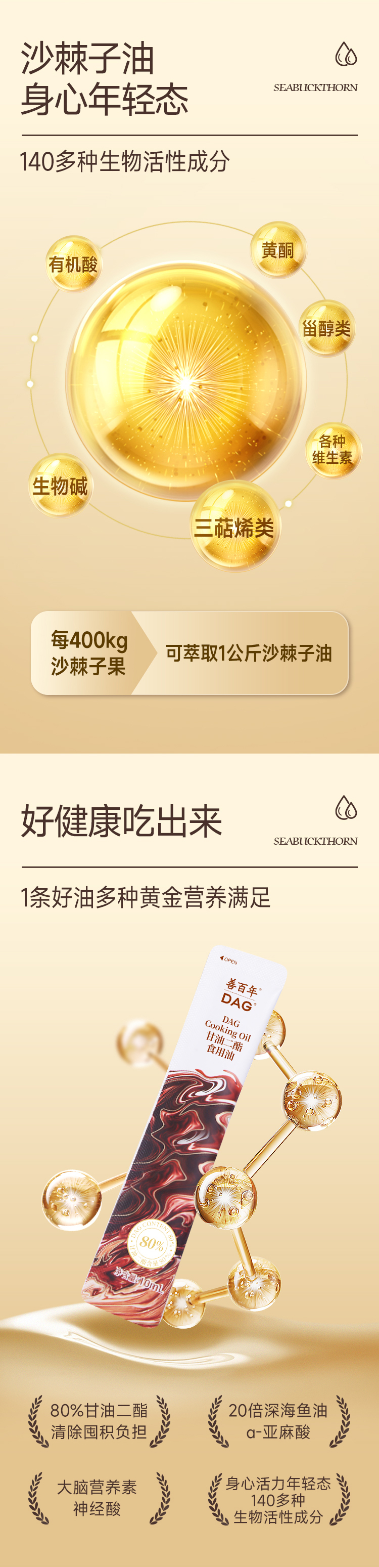 【60%高含量进阶款】善百年甘油二酯食用油低芥酸菜籽DHA藻油
