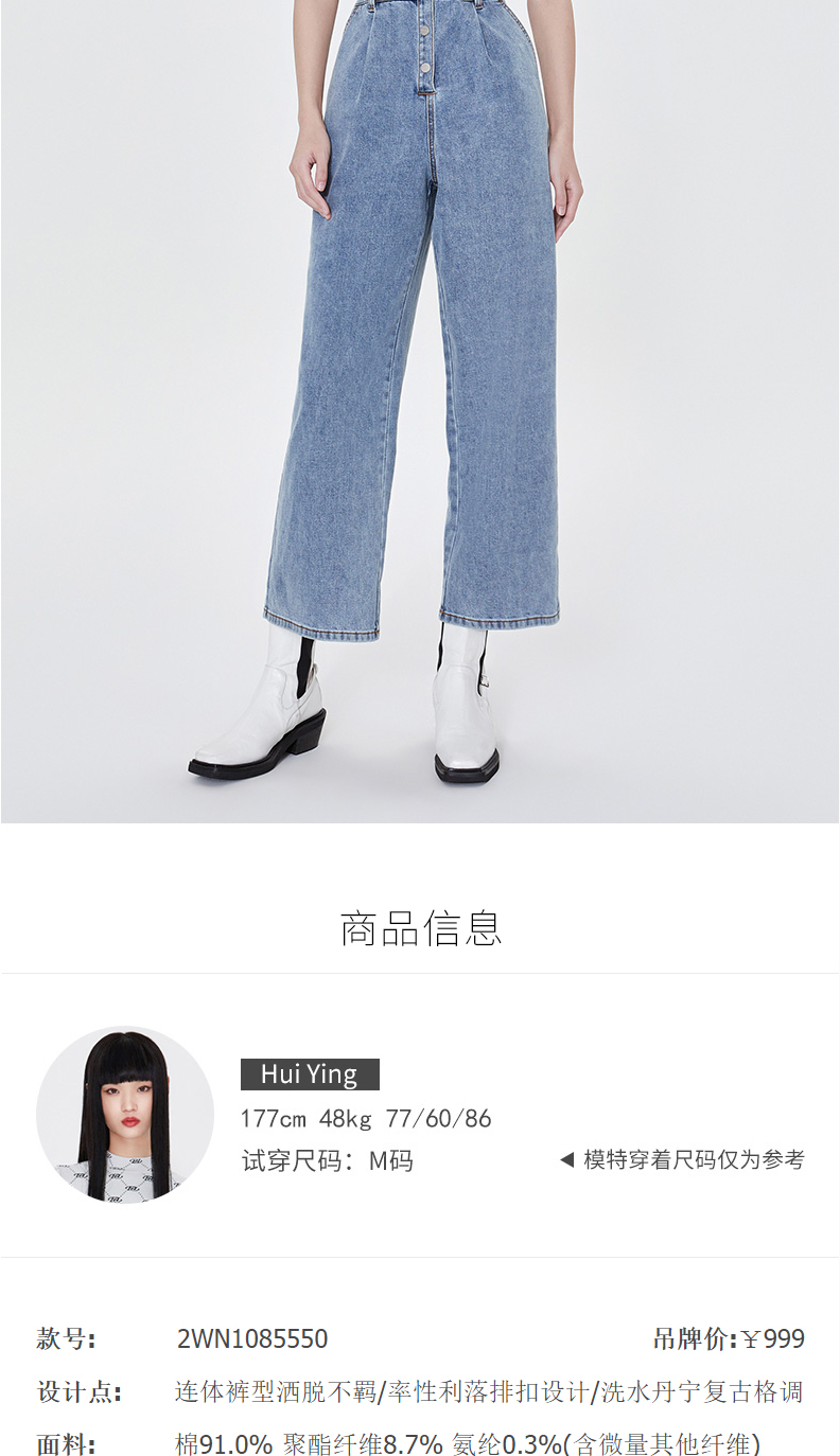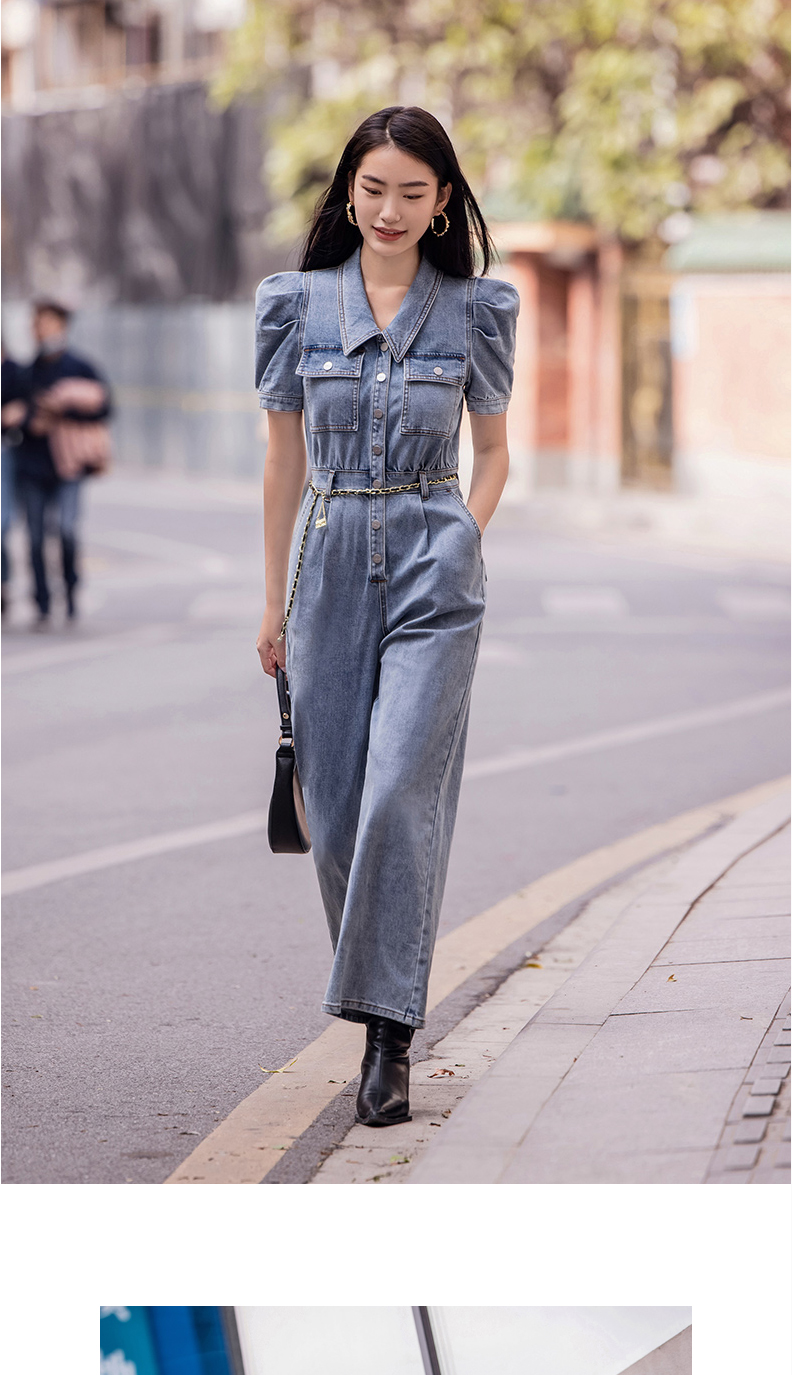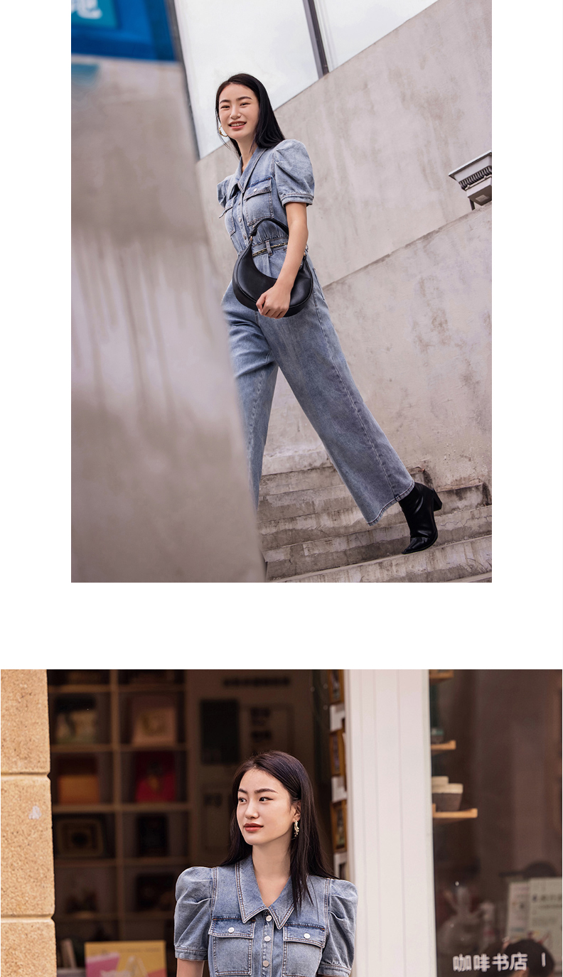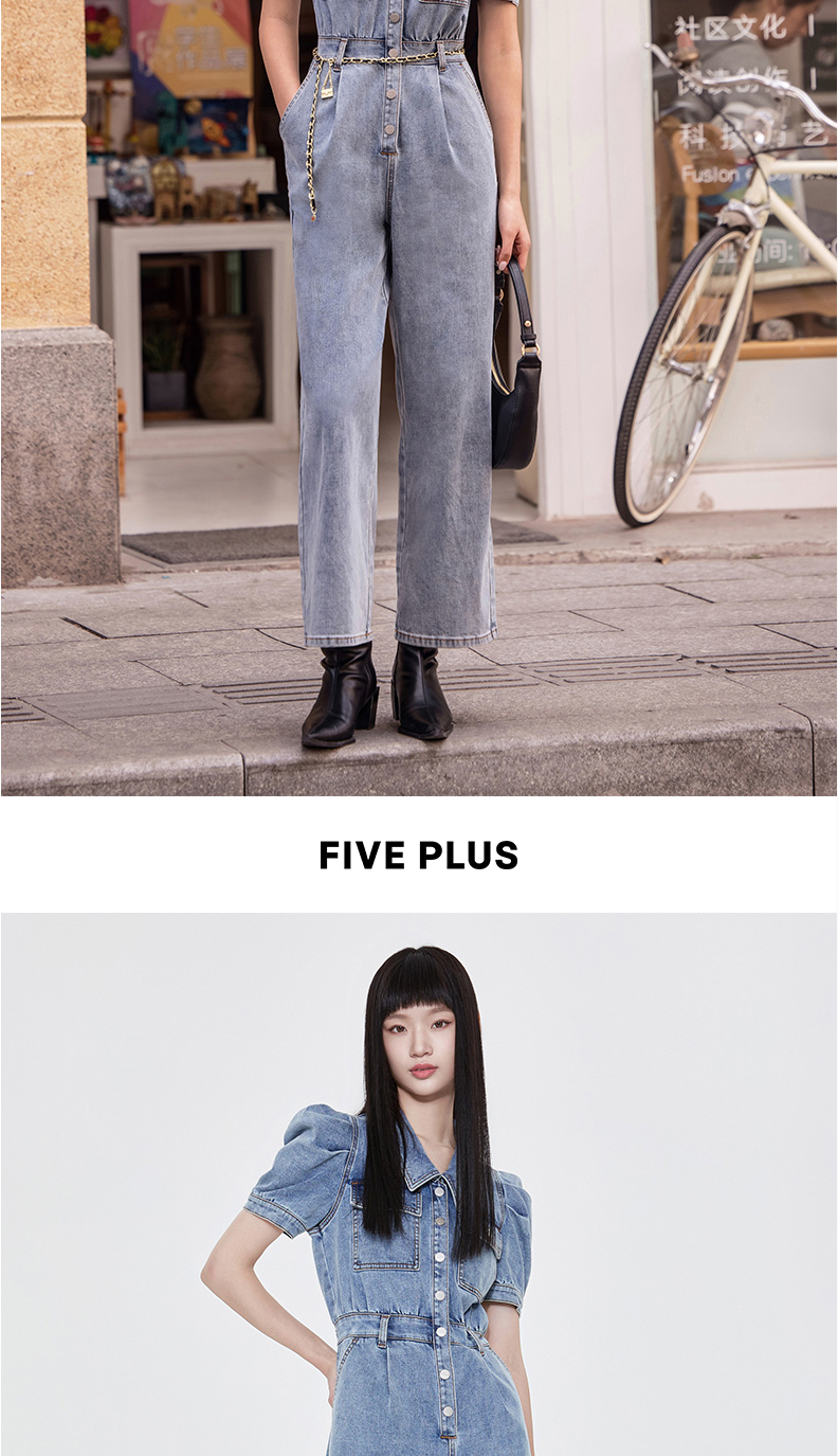 FIVE PLUS新款女夏装甜酷个性高腰连体裤女洗水牛仔休闲裤潮2WN1085550