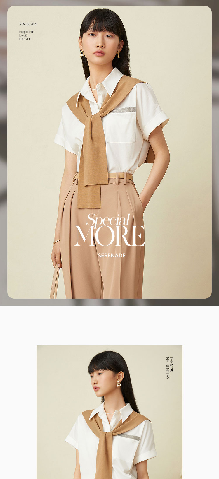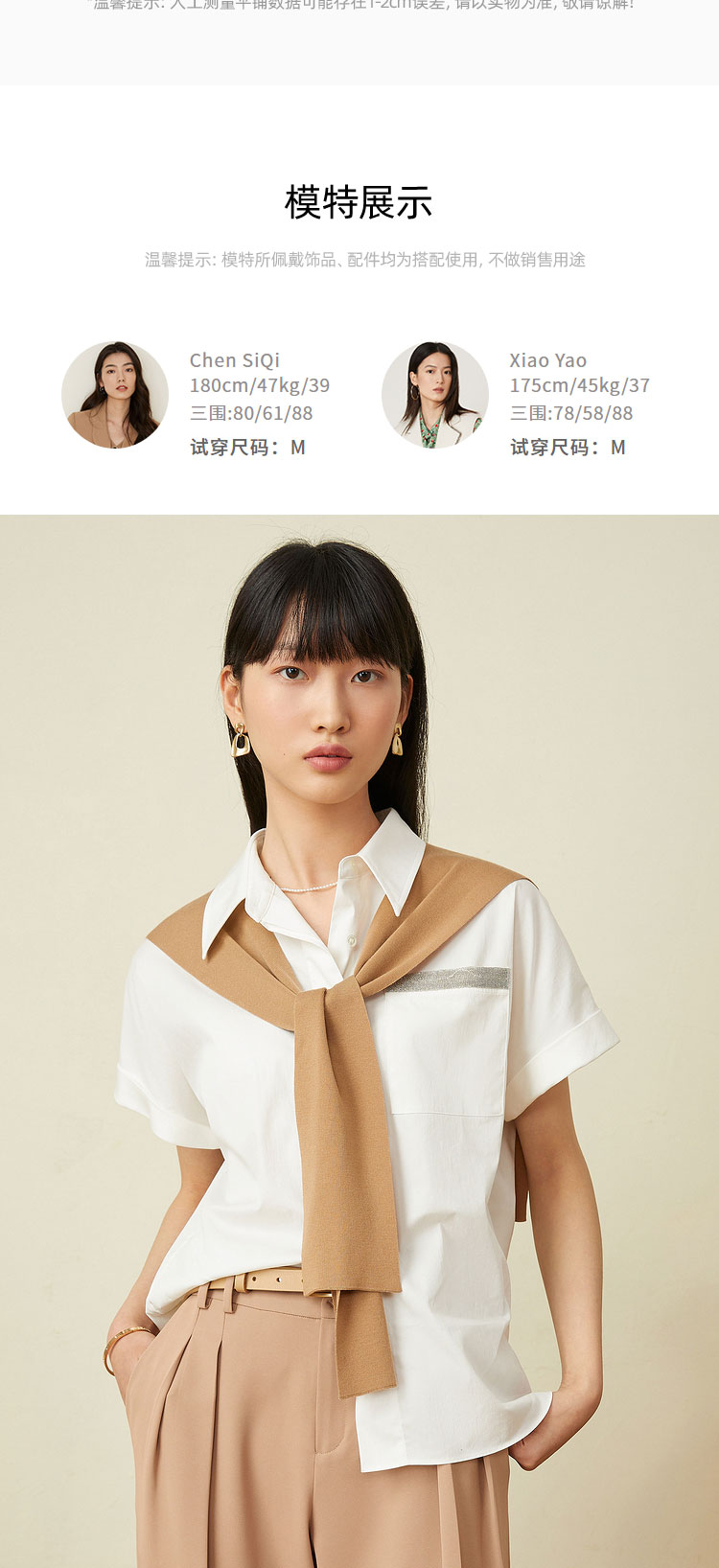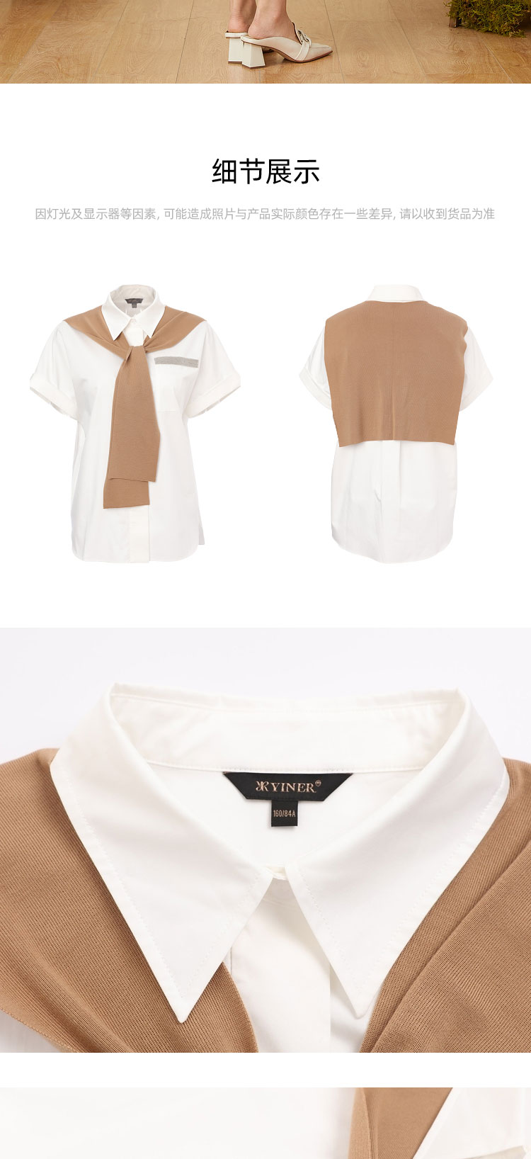 音儿2022夏季新款时尚撞色披肩纯棉衬衫8c32230450